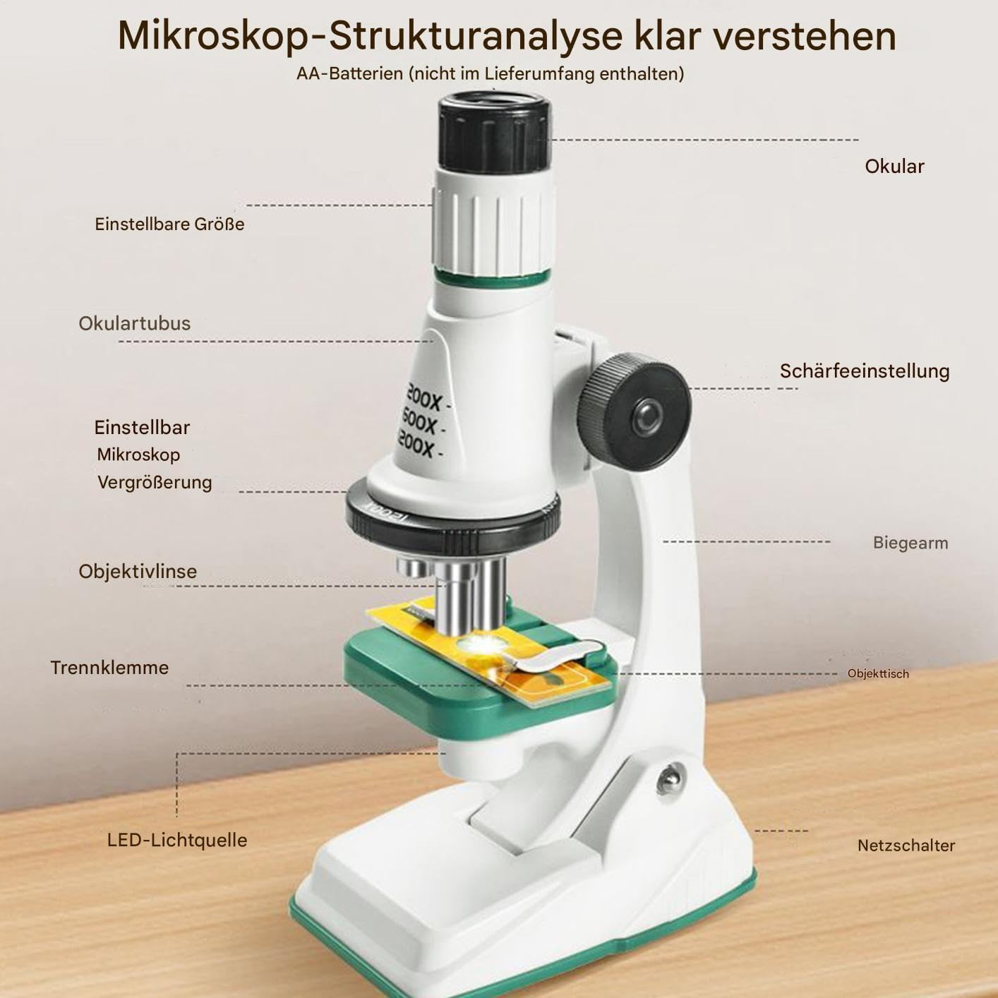 Osservazione ininterrotta: l'alimentazione stabile con illuminazione a LED a risparmio energetico e vano batteria universale garantiscono un utilizzo ininterrotto dei microscopi, senza frequenti sostituzioni della batteria per lunghe sessioni di esplorazione Sostenere l'apprendimento sistematico: ispira la ricerca scientifica e supporta la costruzione di una struttura cognitiva metodologica, promuovendo l'analisi logica e l'attenzione ai dettagli durante le attività pratiche con il microscopio Promuovere la gioia dell'esplorazione: il microscopio per bambini con zoom da 200x a 1200x supporta la curiosità dei giovani scienziati. Permette osservazioni altamente ampliate per una chiara rappresentazione delle strutture cellulari, coltivando così la passione per l'esplorazione. Multiuso: scopri un mondo di piccoli animali, piante, fibre di tessuto e texture di francobolli con questo microscopio versatile che promuove la curiosità e l'apprendimento attraverso varie osservazioni Compatto e leggero: questo microscopio per bambini convince per il suo design leggero ed è facile da trasportare. Si adatta facilmente a qualsiasi zaino, senza occupare molto spazio. Ideale per l'uso a casa, all'aperto o in viaggio, per esplorare la natura in qualsiasi momento.