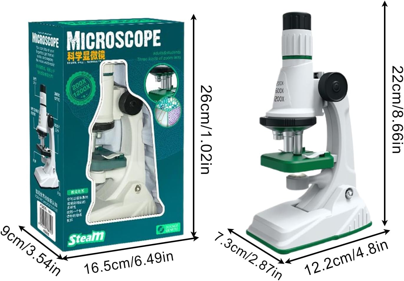 Alimentazione Affidabile: energetico affidabile con illuminazione LED a basso consumo e vano batterie versatile assicura funzionamento costante, permettendo esplorazioni continue e di lunga durata Concentrazione e Ragionamento: Rafforza i processi di pensiero tico stimolando la curiosità scientifica, affinando le capacità di analisi logica e aumentando la concentrazione durante le sessioni di apprendimento interattivo con il microscopio Soluzione da Viaggio: Realizzato per la praticità, questo microscopio compatto è leggero, facile da trasportare e progettato per entrare in zaino, offrendo mobilità semplice e uso efficiente delle aree di archiviazione disponibili per piccoli scienziati Adattabilità: Strumento educativo per lo studio di organismi miniaturizzati, strutture vegetali e pattern tessili, facilita l'apprendimento tramite esperienze tattili e visive che sviluppano le capacità investigative in contesti domestici o scolastici Visione Chiara delle Cellule: Potenzia l'esplorazione infantile con una gamma di ingrandimento da 200X a 1200X, fornendo precisione ottica per osservare nel dettaglio le strutture cellulari e coltivare la naturale curiosità dei bambini attraverso un'esperienza visiva eccellente e educativa