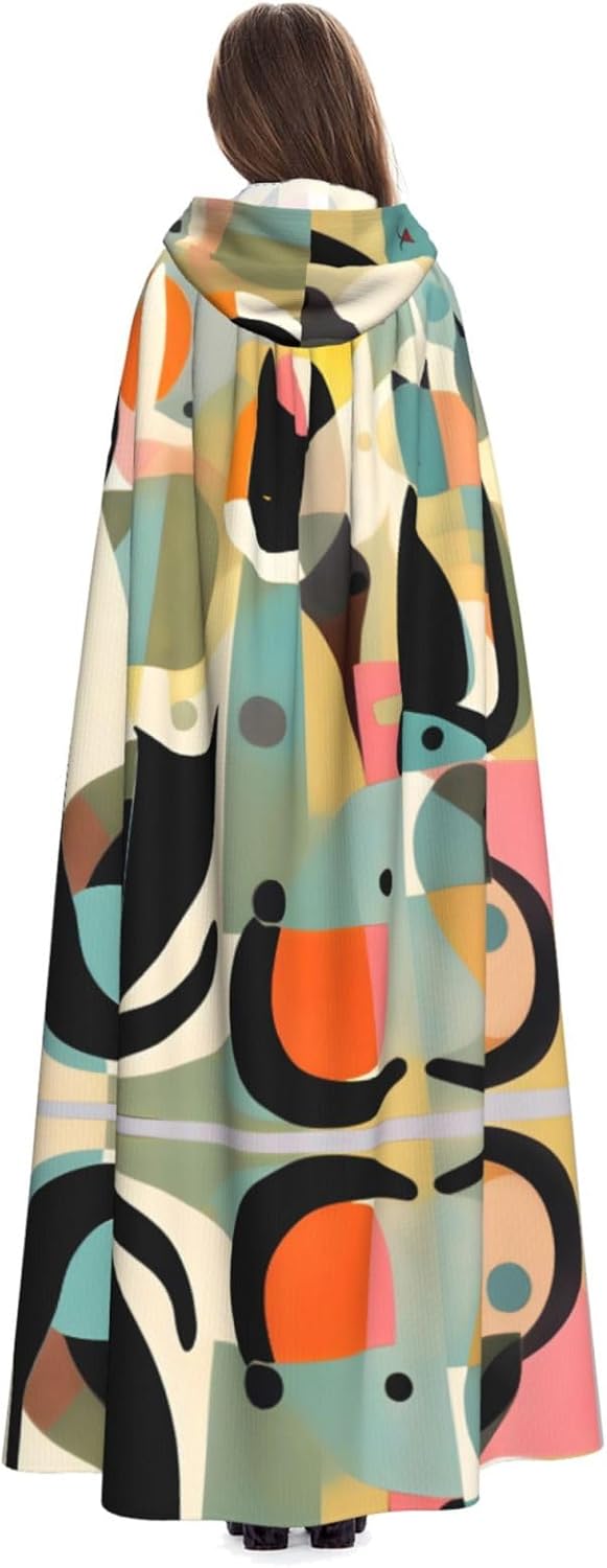 Mid-Century - Mantello con cappuccio unisex con stampa HD, motivo gatto moderno, mantello per Halloween, mantello con cappuccio, costume cosplay unisex