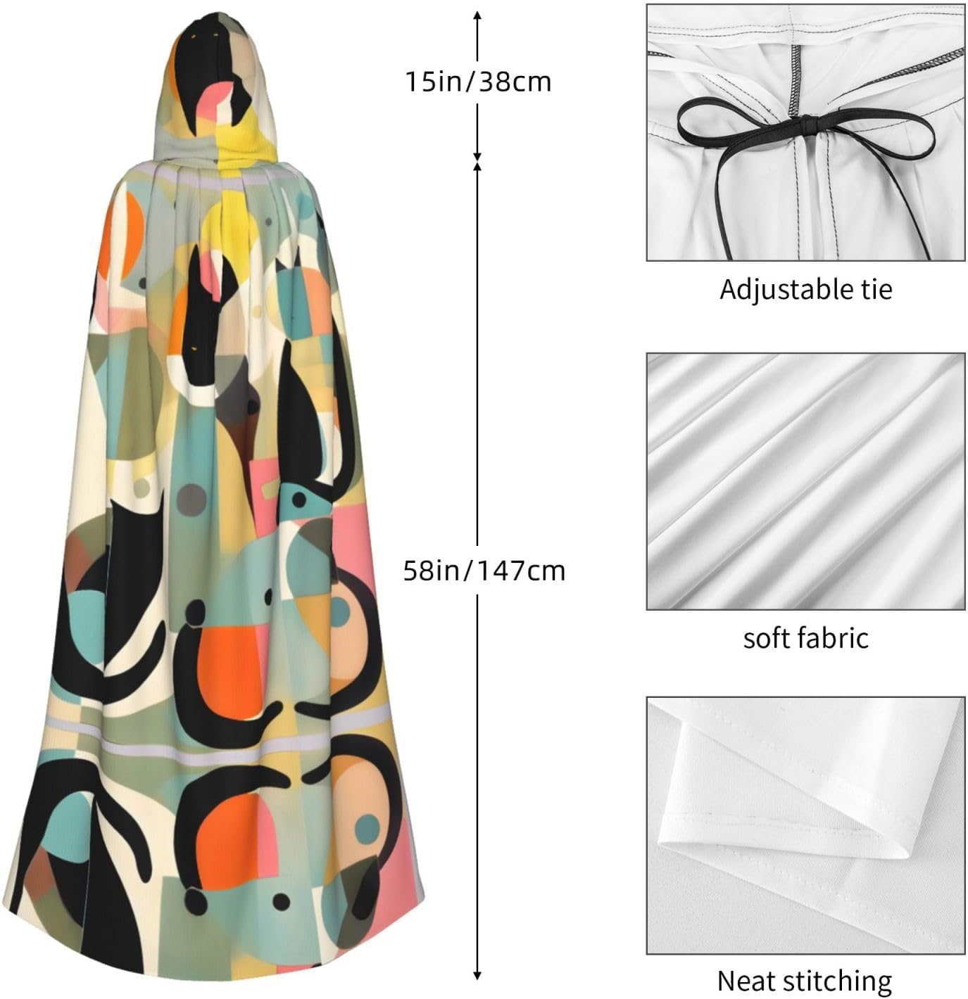 Stampa HD, mantello unisex con cappuccio, mantello a lunghezza intera per feste in costume di Halloween, immagine vivida, per offrirti un'esperienza nuova di zecca. Progettato per donne adulte, il mantello unisce magnificamente moda e funzionalità. È realizzato in 100% poliestere, promette longevità e morbidezza sulla pelle. Il design del mantello, caratterizzato da un cappuccio oversize, è perfetto per aggiungere un'aria di mistica al tuo outfit. La lunghezza e la larghezza generose offrono una vestibilità ampia e fluida, mentre il cappuccio alto 45,7 cm offre un'ampia copertura. Il mantello non si limita alle celebrazioni di Halloween. È abbastanza versatile per varie occasioni: pensa a giochi di ruolo, feste in costume, balli in maschera e persino convention a fumetti. Prendersi cura di questo accattivante mantello è un gioco da ragazzi poiché è lavabile in lavatrice e altamente resistente. Vestiti con stile con il nostro incredibile mantello con cappuccio.
