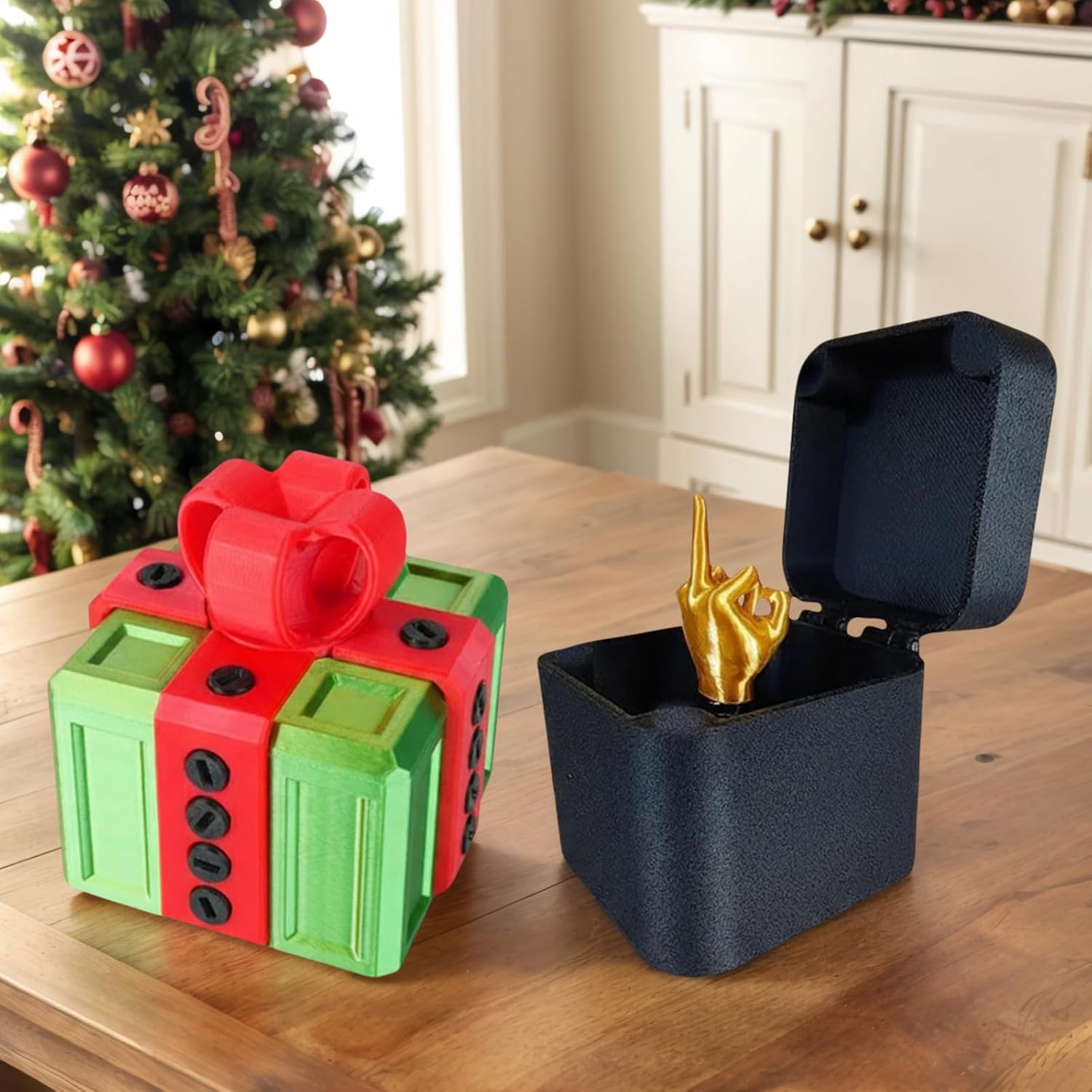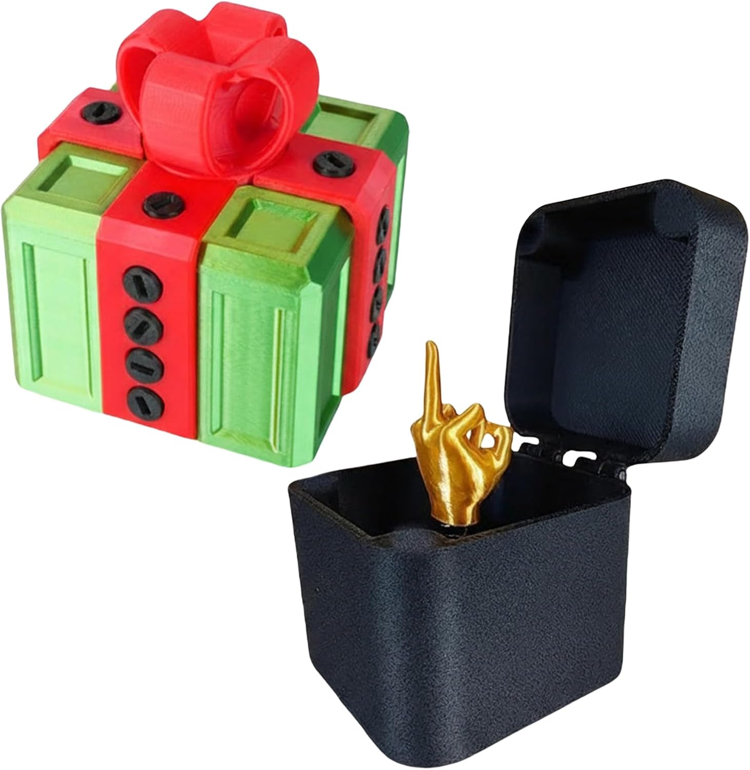 Challenging 3D Puzzle Mechanism: The prank box incorporates intricate screws and turning elements, encouraging users to solve their way to a hidden key and enjoy a truly interactive unwrapping adventure. Hilarious Middle Finger Surprise: Open the annoying gift box and be met with an unexpected flipping middle finger, sure to elicit laughs and playful reactions from friends and family alike. Ideal for Different Events: Make birthdays, Christmas, or Halloween extra special with these funny 3d printed screw gifts boxes that bring a unique blend of surprise and entertainment to any celebration. Multipurpose Storage Solution: The 3d printed annoying gift box doubles as a handy keepsake container for jewelry, money, or small treasures and also makes a unique decorative piece for your desk or shelf. Sturdy Build with Color Options: Made from premium materials, these prank screw boxes come in various color choices, are reusable, and designed to cater to a range of style preferences and needs.