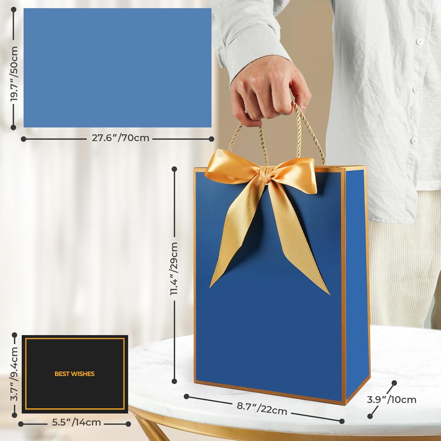 🌈 Confezione sofisticata: il nostro set di sacchetti regalo presenta un'elegante borsa decorata con un lussuoso fiocco che aggiunge un tocco di raffinatezza alla tua presentazione regalo. Ottimo per compleanni, matrimoni e regali di damigelle d'onore per le donne. Dimensioni: 22 cm x 10 cm x 29 cm. 🌈 Utilizzo Versatile: Ideale per diverse occasioni come compleanni, matrimoni, anniversari ed eventi aziendali per rendere ogni regalo indimenticabile. Viene fornito con carta velina. 🌈 Materiale di qualità: realizzato con materiali robusti e di alta qualità che garantiscono che la borsa mantenga la sua forma e dimensione per contenere regali di diverse dimensioni. Viene fornito con carta velina. 🌈 Set completo: ogni sacchetto regalo viene fornito con carta velina che fornisce un ulteriore livello di eleganza e sorpresa quando viene scartato. Ideale per regali di medie dimensioni. Contenuto della confezione: riceverete 2 sacchetti regalo, 2 buoni regalo e 2 veline. Ogni sacchetto regalo viene fornito con carta velina, che aggiunge eleganza e sorpresa quando viene scartato. È ideale per regali di medie dimensioni per compleanno, addio al nubilato, rientro a scuola, congratulazioni, damigelle d'onore, testimone, celebrazione, laurea, 18°, 20°, 50° compleanno, San Valentino.