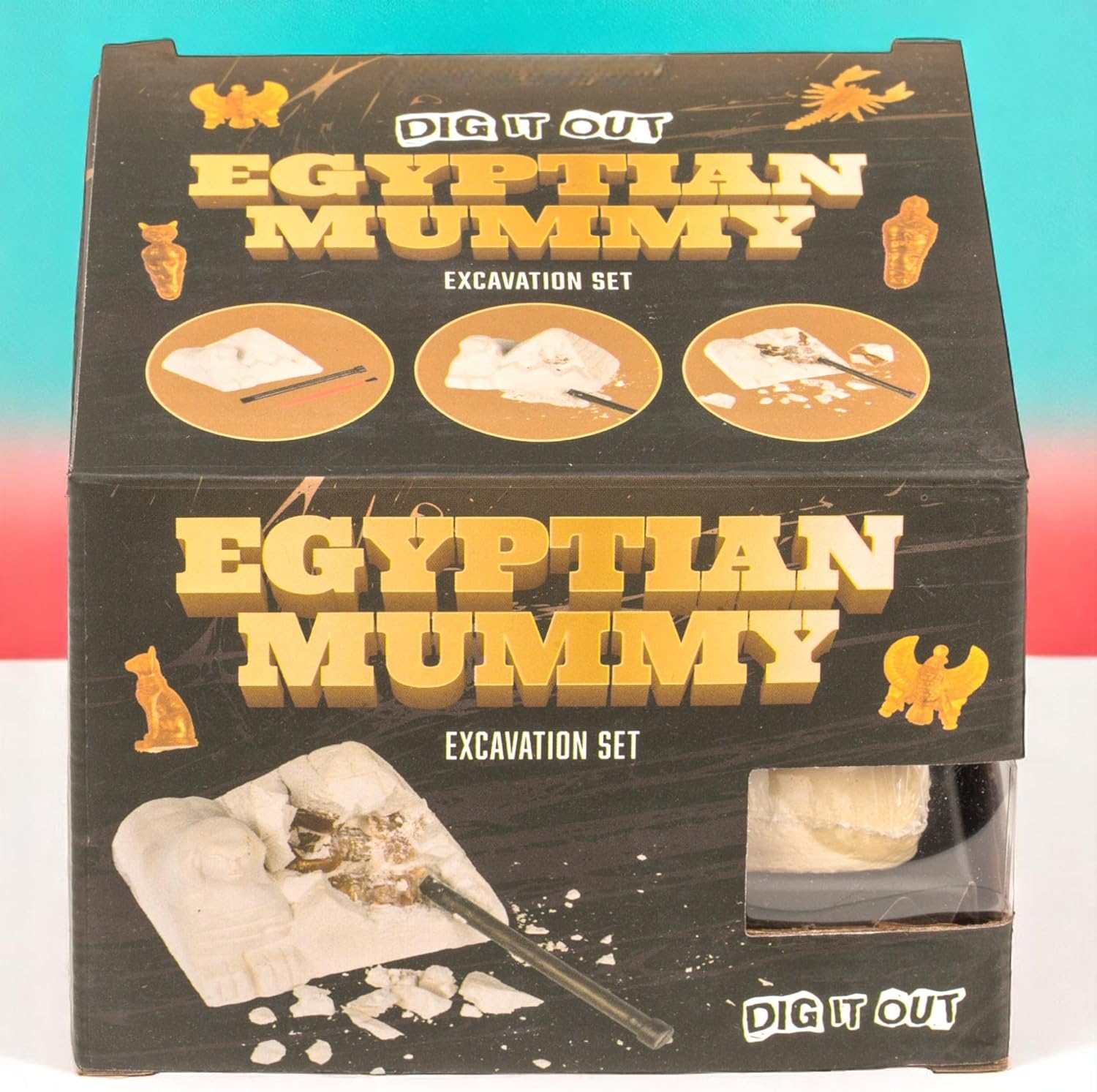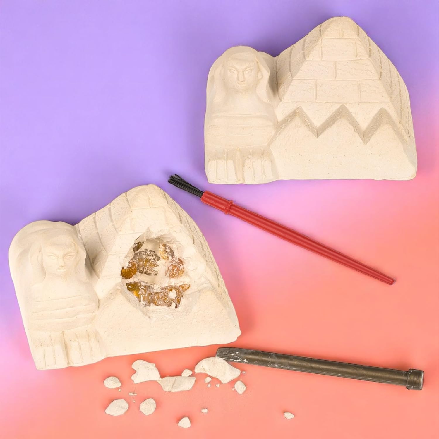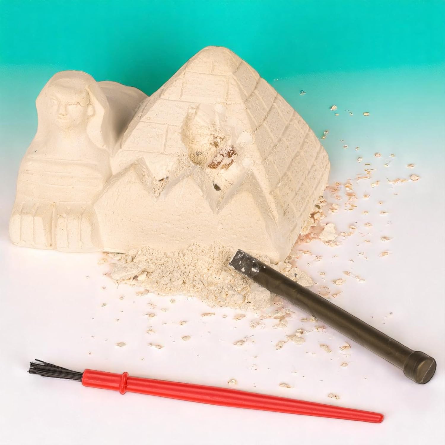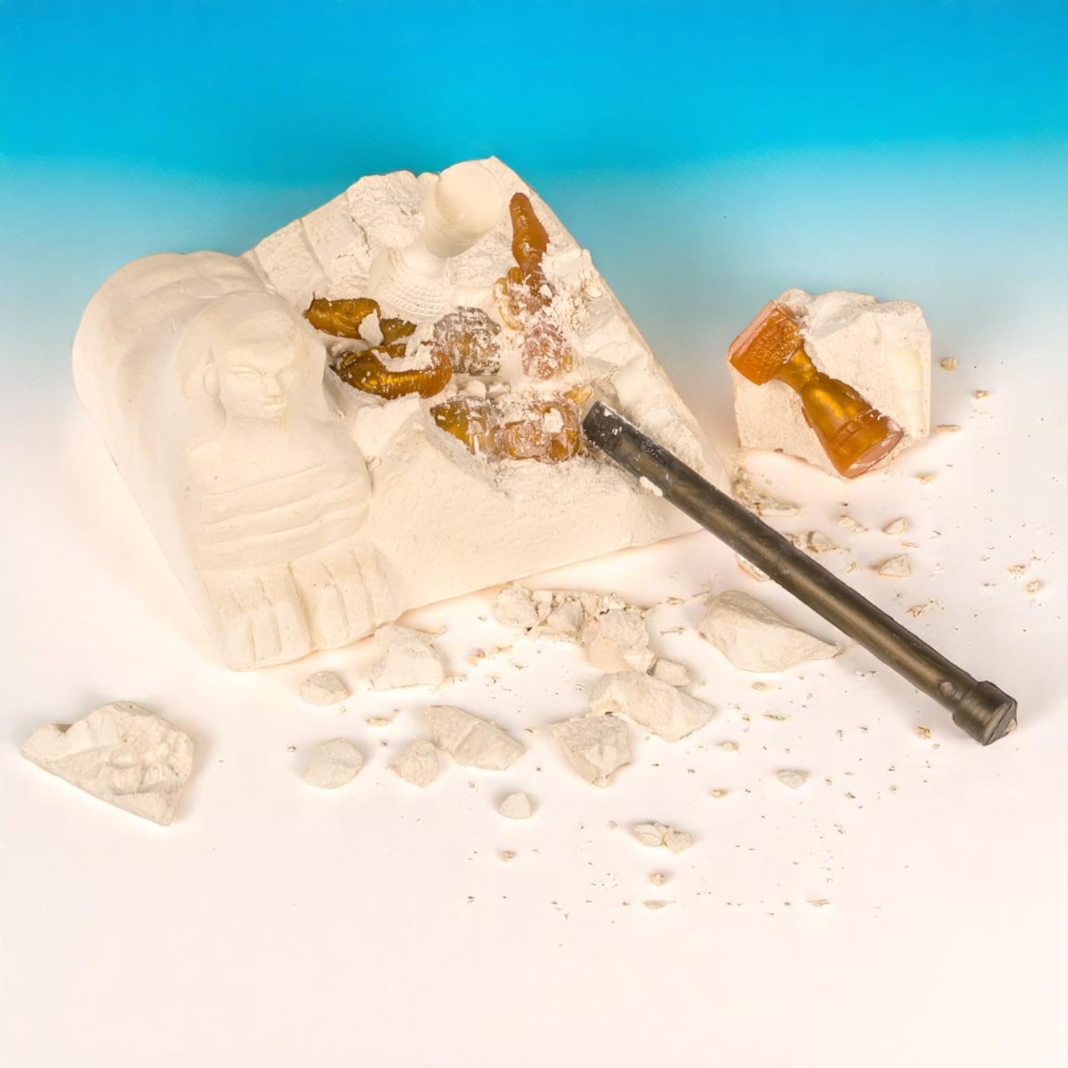 Scopri l'antico Egitto: con ogni colpo al blocco di gesso ti immergerai più a fondo in un mondo misterioso pieno di mummie e miti Archeologo per un giorno: il martello e il pennello allegati fanno di ogni bambino un piccolo ricercatore con grande spirito di scoperta Idea regalo magica: per Natale, compleanno o come pensierino, questo set garantisce stupore ed eccitazione Gioco educativo con valore aggiunto: oltre al divertimento, il set fornisce conoscenza della storia, della pazienza e del lavoro accurato, giocoso e significativo Divertimento da collezione con sorpresa: quali personaggi scoprirai? Ci sono dieci diversi disegni: ogni scoperta è un'esperienza