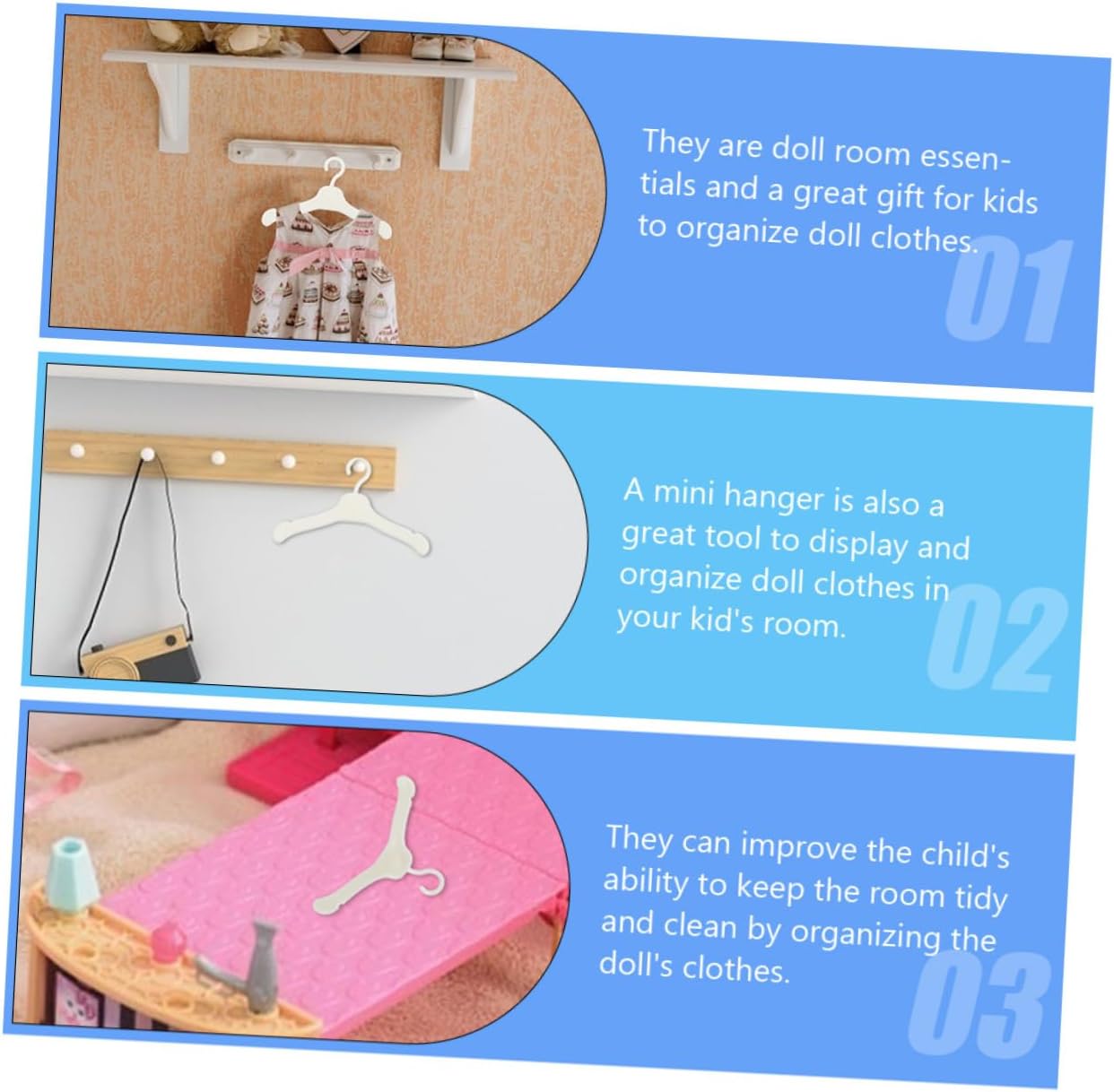 Ganci in miniatura per case delle bambole - materiale plastico sicuro, struttura molto resistente, semplice e robusta per riporre vestiti per le bambole, mini grucce per vestiti Mini grucce per vestiti per casa - il regalo perfetto di compleanno o Natale per le bambole, fai loro una piccola sorpresa, grucce per vestiti in miniatura Mini grucce per vestiti - puoi migliorare la capacità del bambino di mantenere la stanza ordinata e pulita riponendo l'organizer per i vestiti delle bambole, grucce per vestiti in miniatura Piccole grucce per vestiti - versatili, possono essere usate per cappotti, gonne, mini bambole ecc. per riporre i vestiti per le tue bambole, mini grucce per vestiti Piccole grucce per vestiti: rendi la stanza dei giochi di tuo figlio più ordinata, adoreranno queste grucce per bambole, vieni a comprarle per il tuo bambino, mini grucce per vestiti