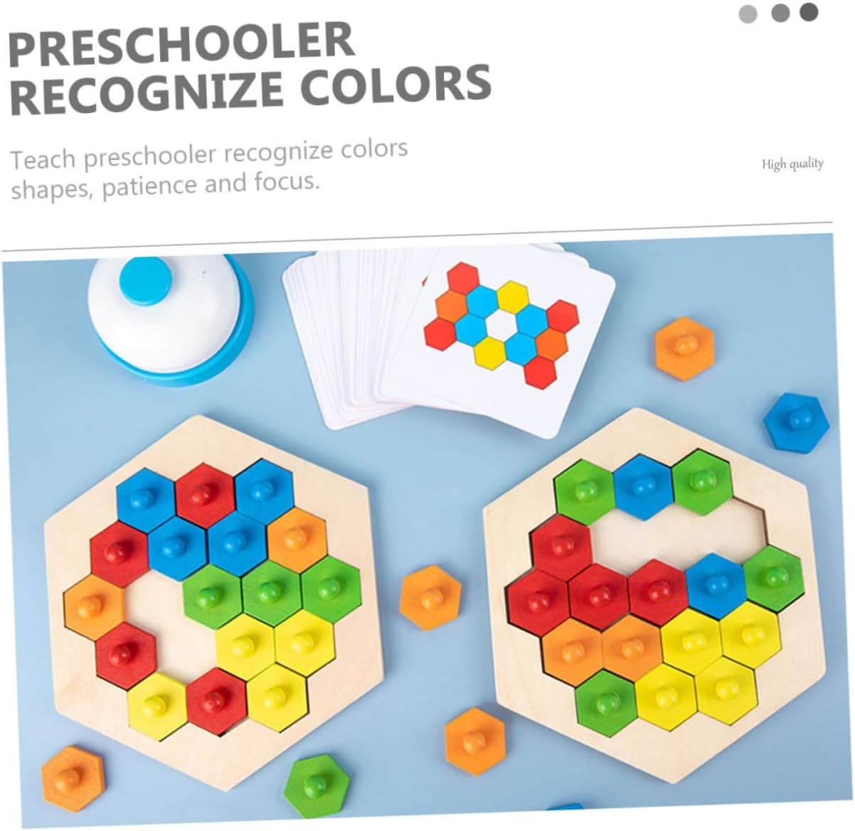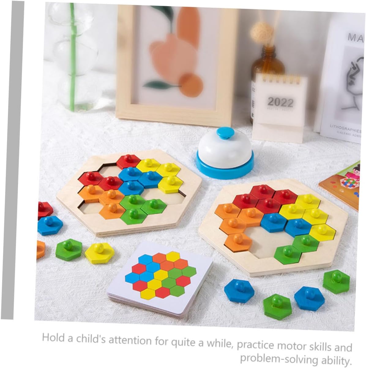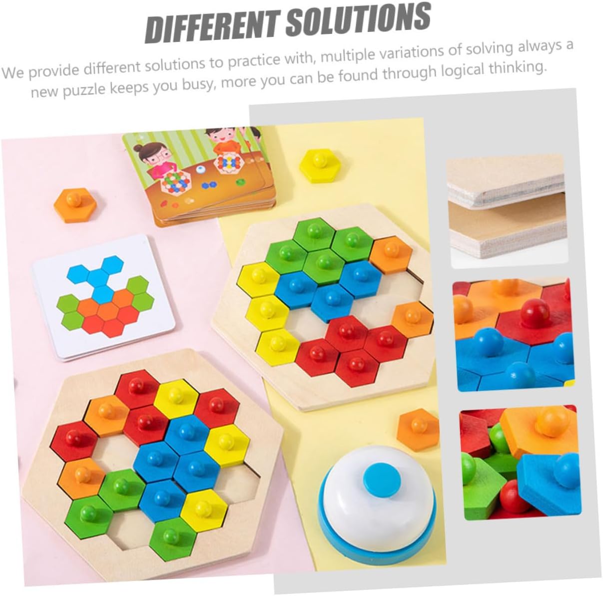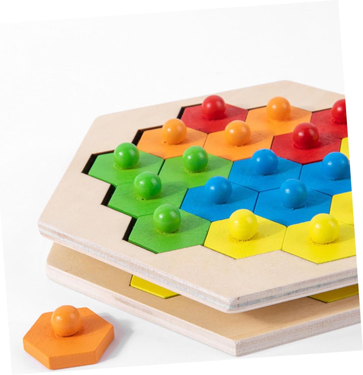 Giocattolo da scrivania: insegna ai bambini in età prescolare a riconoscere colori e forme, pazienza e giocattoli con blocchi di legno. Giocattolo per bambini fai da te: il prodotto è ben lucidato e non fa male alle mani quando viene utilizzato. può essere utilizzato anche per lungo tempo. Puzzle giocattolo pensante fai-da-te: può suscitare l'interesse del tuo bambino nel percepire le cose e portarle molta più gioia. Puzzle in legno giocattolo di interazione genitore-figlio: metodi di apprendimento unici e interessanti stimolano la creatività dei bambini e migliorano la loro capacità di pensiero logico. Giocattolo puzzle in legno interattivo: i colori vivaci aiutano a stimolare perfettamente ogni immaginazione e creatività, ti permette di pensare, puzzle a nido d'ape