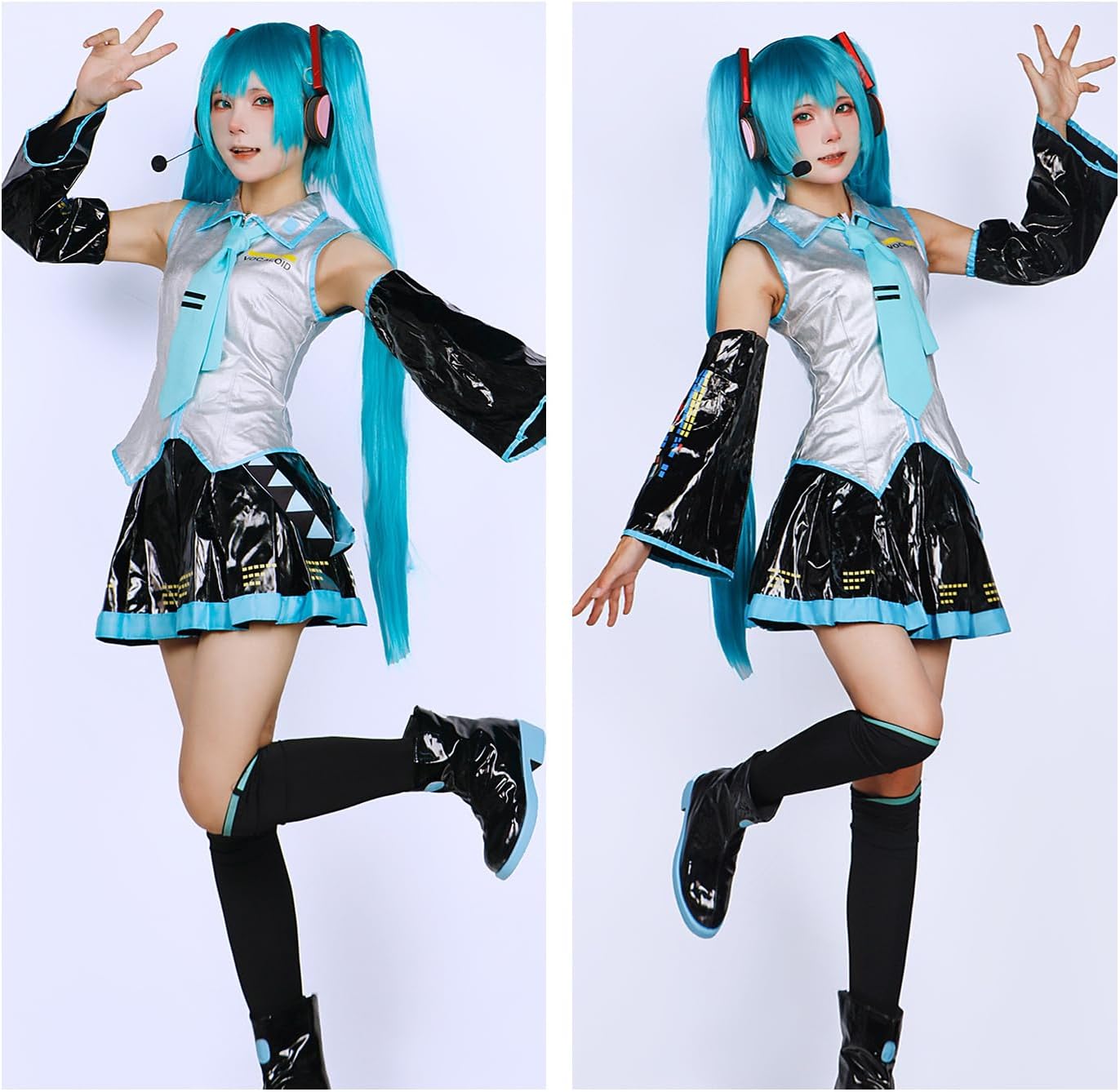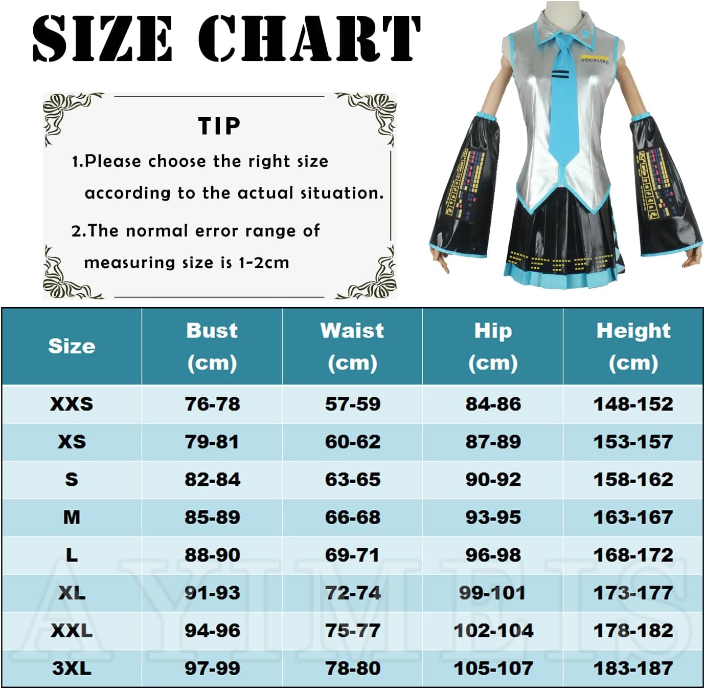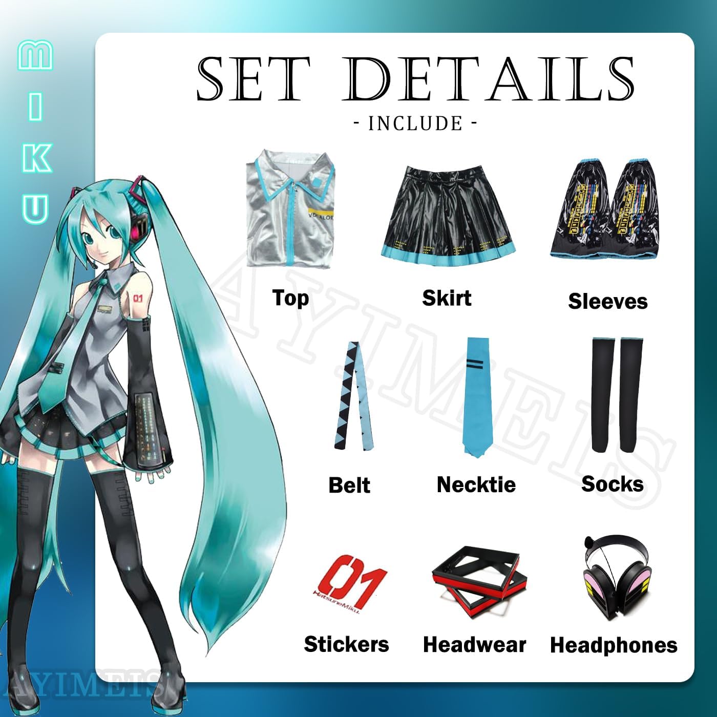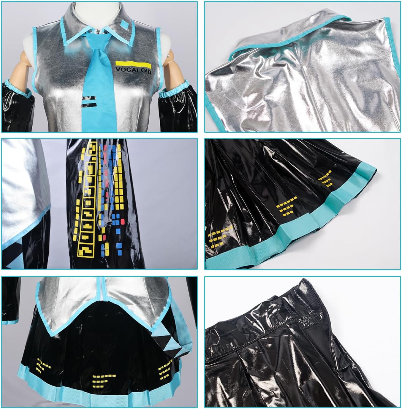 【Il pacchetto include】 - Camicetta *1, Gonna *1, Maniche *2, Cintura *1, Cravatta *1, Calzini *2, Adesivi *1, Accessori per capelli *2, Cuffie *1 (come mostra l'immagine). 【Materiale principale】 - Poliestere. Realizzato in materiale di alta qualità, morbido, comodo da indossare e abbastanza resistente. 【Caratteristiche dell'abbigliamento】 - Costume Cosplay di Cantante Virtuale Miku, Ripristinando i dettagli dell'abbigliamento di un personaggio animato, con un set completo di accessori, consente di completare facilmente il gioco di ruolo. 【Ampia applicazione】 - Perfetto per feste in costume a tema, festival, Natale, Halloween, carnevali, feste, performance sul palco, fotografia, Comic Con, Cosplay ecc. 【Riferimento taglia】 - Per assicurarti di ottenere una taglia adatta a te, fare riferimento alla nostra tabella delle taglie prima dell'acquisto (ultima foto).