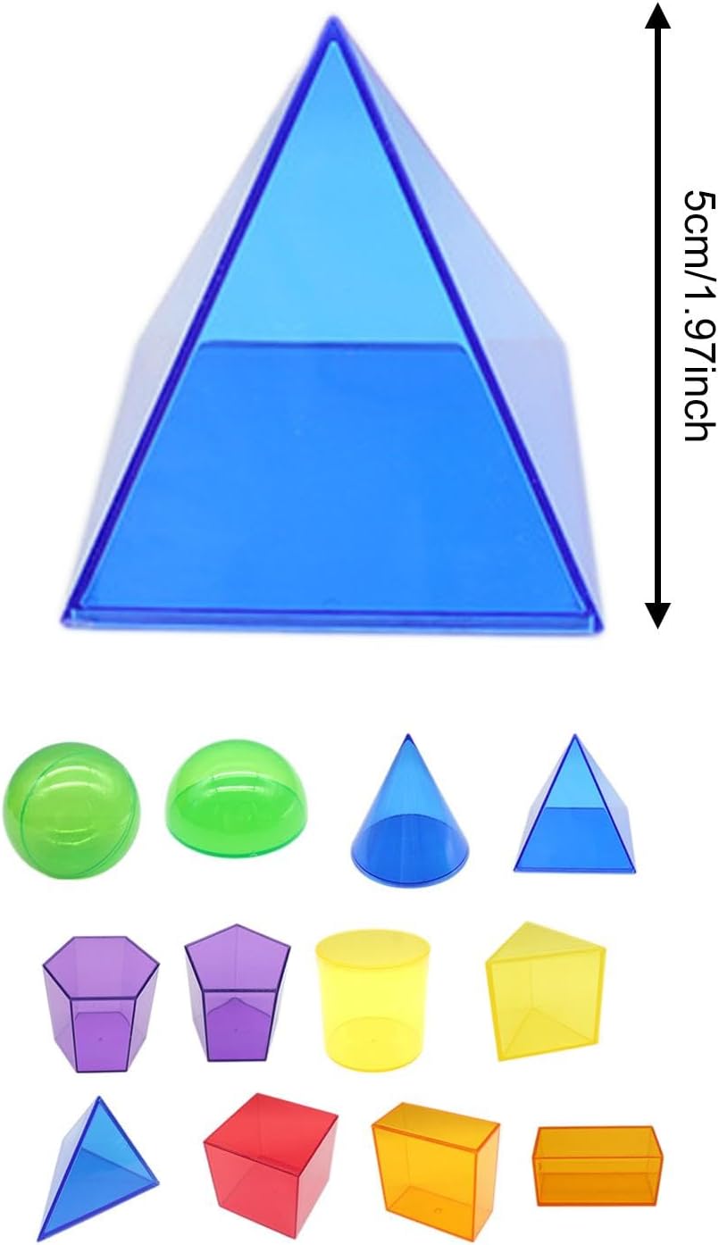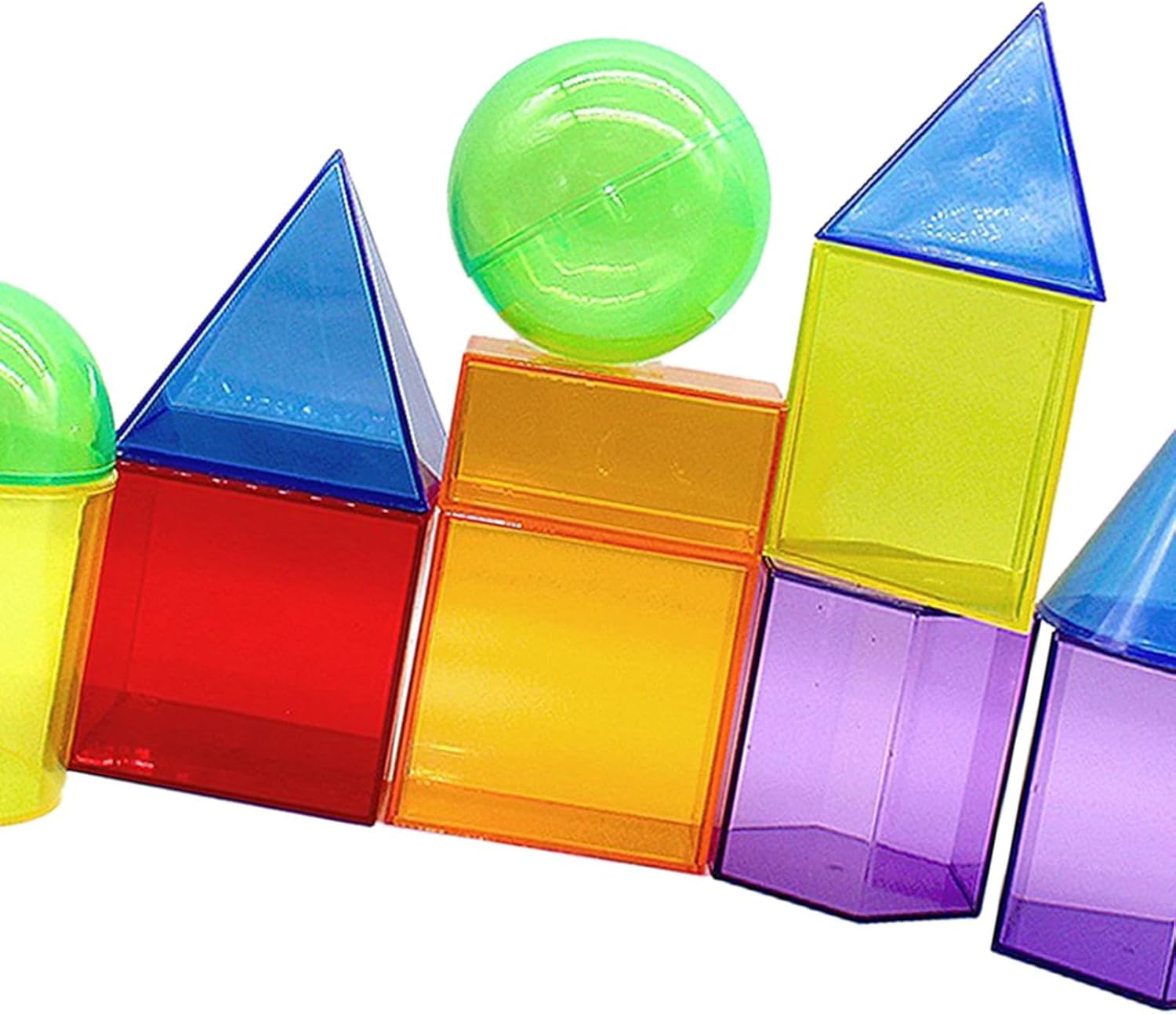 【Sviluppo delle abilità】: il set di forme geometriche è progettato per migliorare il riconoscimento dei colori, l'apprezzamento estetico e le capacità di identificazione delle forme dei bambini attraverso il gioco interattivo 【Scelta regalo ideale】: Questi blocchi geometrici semitrasparenti sono perfetti per i principianti in geometria, rendendoli un buon regalo per compleanni o vacanze sia per ragazzi che per ragazze 【Strumento educativo】: i giocattoli educativi sono ideali per sviluppare capacità di smistamento e abilità matematiche esplorando diverse forme e colori in modo pratico 【Set completo di apprendimento della geometria】: questi modelli trasparenti di forme geometriche 3D educative rendono l'apprendimento divertente e coinvolgente per i bambini 【Materiale】: Realizzate in robusto polipropilene, queste forme 3D leggere sono costruite per durare, garantendo un utilizzo e un divertimento a lungo termine. Ogni pezzo misura fino a 5 cm sul lato più lungo, per un totale di 12 pezzi inclusi nel set.