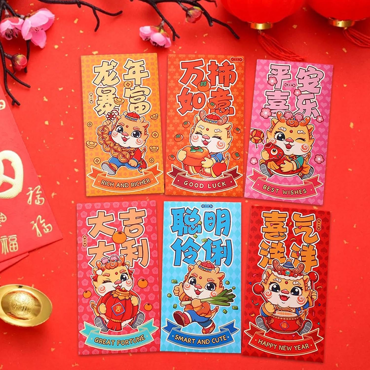 【Alta qualità】: le buste rosse per il Capodanno cinese sono realizzate in carta, resistenti e stabili. Ogni tasca portasoldi misura 16,6 x 8,6 cm/6,54 x 3,39 pollici, il che la rende la dimensione perfetta per contenere denaro o buoni regalo. 【Simbolico e significativo】: il colore rosso è un simbolo di fortuna e ricchezza nella cultura cinese, motivo per cui Hong Bao viene utilizzato durante il capodanno cinese e altri eventi celebrativi. Queste buste rosse sono di un rosso e incarnano questi significati di buon auspicio. 【2024 Anno del Drago】: la confezione include 6 adorabili buste rosse a tema drago dei cartoni animati, perfette per l'Anno del Drago. Sono progettati con un effetto cartone animato unico e creativo, che li rende un modo divertente e festoso per fare regali durante il capodanno cinese. 【Tasche di carta festive】: durante il Festival di Primavera, è tradizione che genitori, nonni, parenti e persino amici intimi e regalino soldi in buste rosse alle più giovani. Queste buste rosse sono perfette per continuare questa tradizione. 【Design speciale】: ricevere buste rosse durante il nuovo anno è un'antica usanza, con il colore rosso che simboleggia auguri e la buona fortuna per il prossimo anno. Queste buste non sono adatte solo per i festeggiamenti di Capodanno, ma sono apprezzate anche per compleanni e matrimoni.