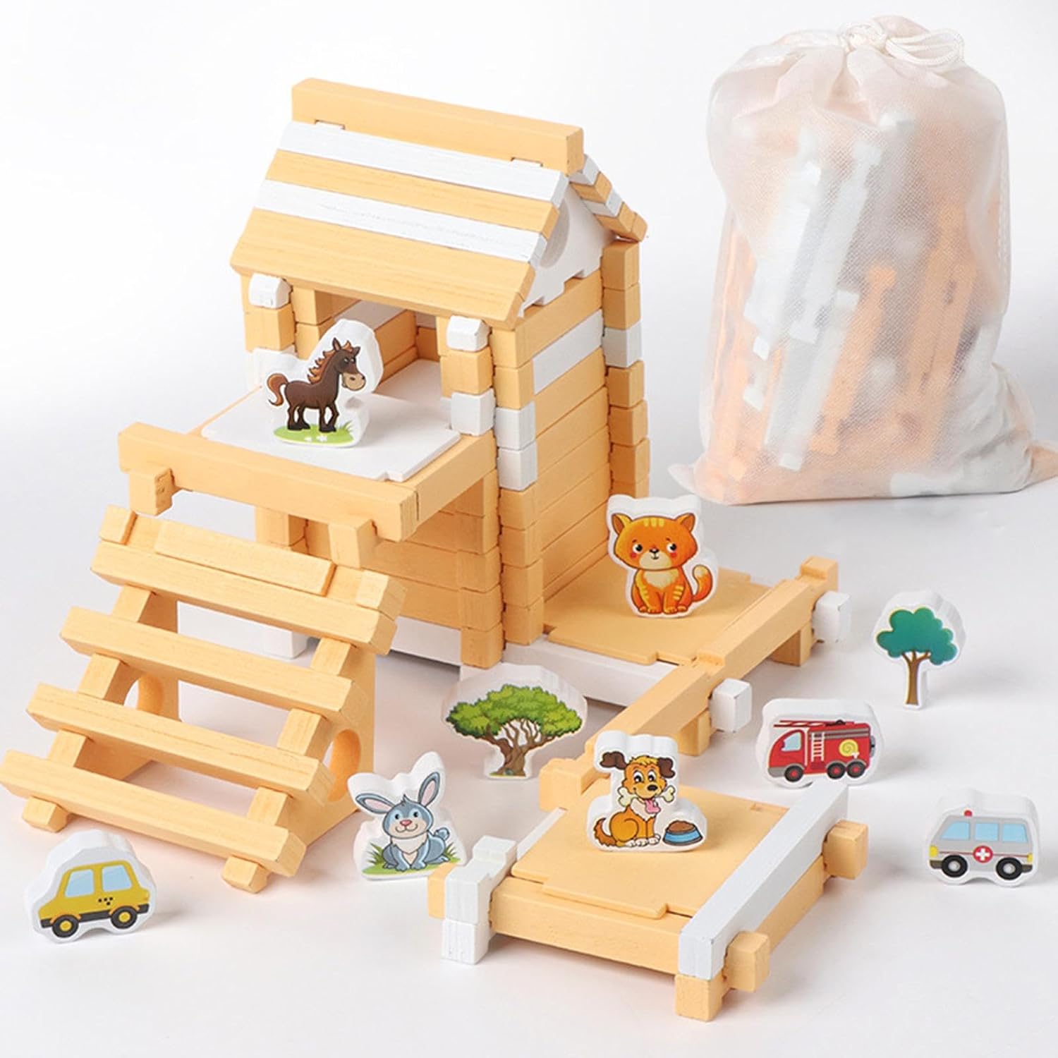 【Set completo】: il set contiene 84 elementi costitutivi, 6 modelli di animali e 3 automobili. Questo set completo offre possibilità illimitate per progetti di costruzione creativi che possono essere condivisi da genitori e figli per godersi il tempo genitore-figlio. 【Materiale in legno】: i giocattoli educativi di ingegneria sono realizzati e offrono ai bambini un'opzione di gioco sicura e rispettosa dell'ambiente che consente loro di divertirsi mentre esplorano le loro capacità di costruzione. 【Promuovere l'immaginazione spaziale】: i giocattoli da costruzione utilizzano un design della struttura della casa 3D, promuovono l'immaginazione spaziale dei bambini. Durante il processo di costruzione, apprendono le tecniche di costruzione tradizionali, sviluppano concetti spaziali e capacità di pensiero tridimensionale. 【Promuovere la creatività e il pensiero logico】: il set di elementi costitutivi promuove la creatività e il pensiero logico. Assemblare strutture diverse è un modo divertente ed entusiasmante per sviluppare la loro immaginazione spaziale e le capacità di risoluzione dei problemi. 【Giochi interattivi a tema animali】: la casa in legno fai-da-te contiene immagini di animali realistiche e offre un'esperienza di gioco interattiva. può creare scene vivide, combinare l'istruzione con l'intrattenimento, rendendo piacevole l'apprendimento