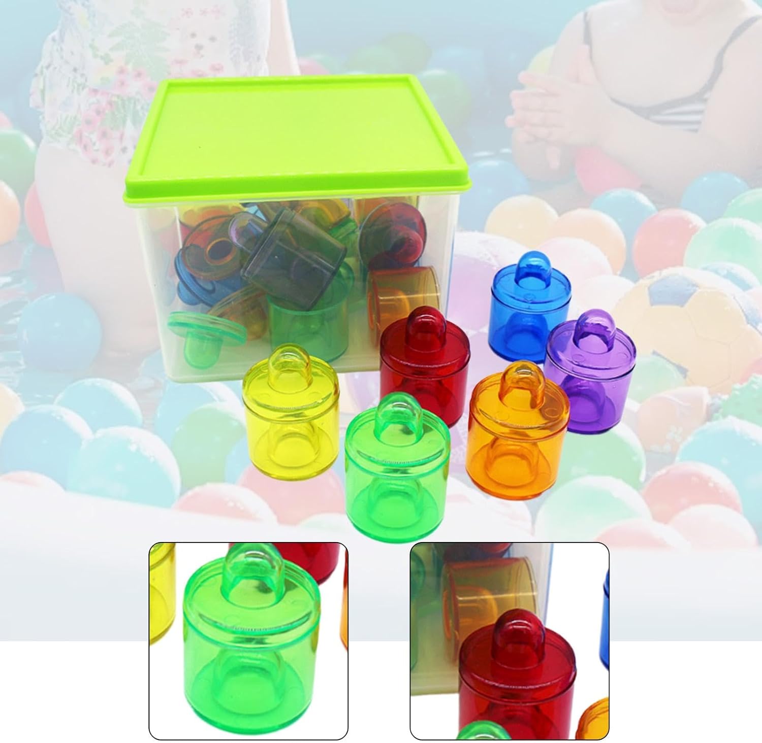 【Materiale di qualità】: i vasi impilabili sono realizzati in polipropilene leggero ma robusto, garantendo un utilizzo prolungato durante le sessioni di gioco sia asciutte che bagnate 【Gioco sensoriale con l'acqua】: Progettati per il divertimento basato sull'acqua, questi vasi impilabili migliorano l'esplorazione tattile mentre i bambini afferrano, versano e sperimentano le forme rimanendo freschi d'estate 【Giocattoli educativi precoci】: incoraggiano il gioco aperto e lo sviluppo della motricità fine, ottimi per l'apprendimento pratico a casa o nelle aule prescolari 【Apprendimento con colori vivaci】: i pioli luminosi e multicolori aiutano i bambini a riconoscere, ordinare e abbinare i colori, potenziando la logica precoce e le capacità cognitive attraverso l'interazione giocosa 【Set completo incluso】: viene fornito con 18 vasi colorati e una scatola di immagazzinaggio compatta (6,5 x 6,5 x 4,5 pollici) per una facile pulizia e organizzazione dopo il gioco