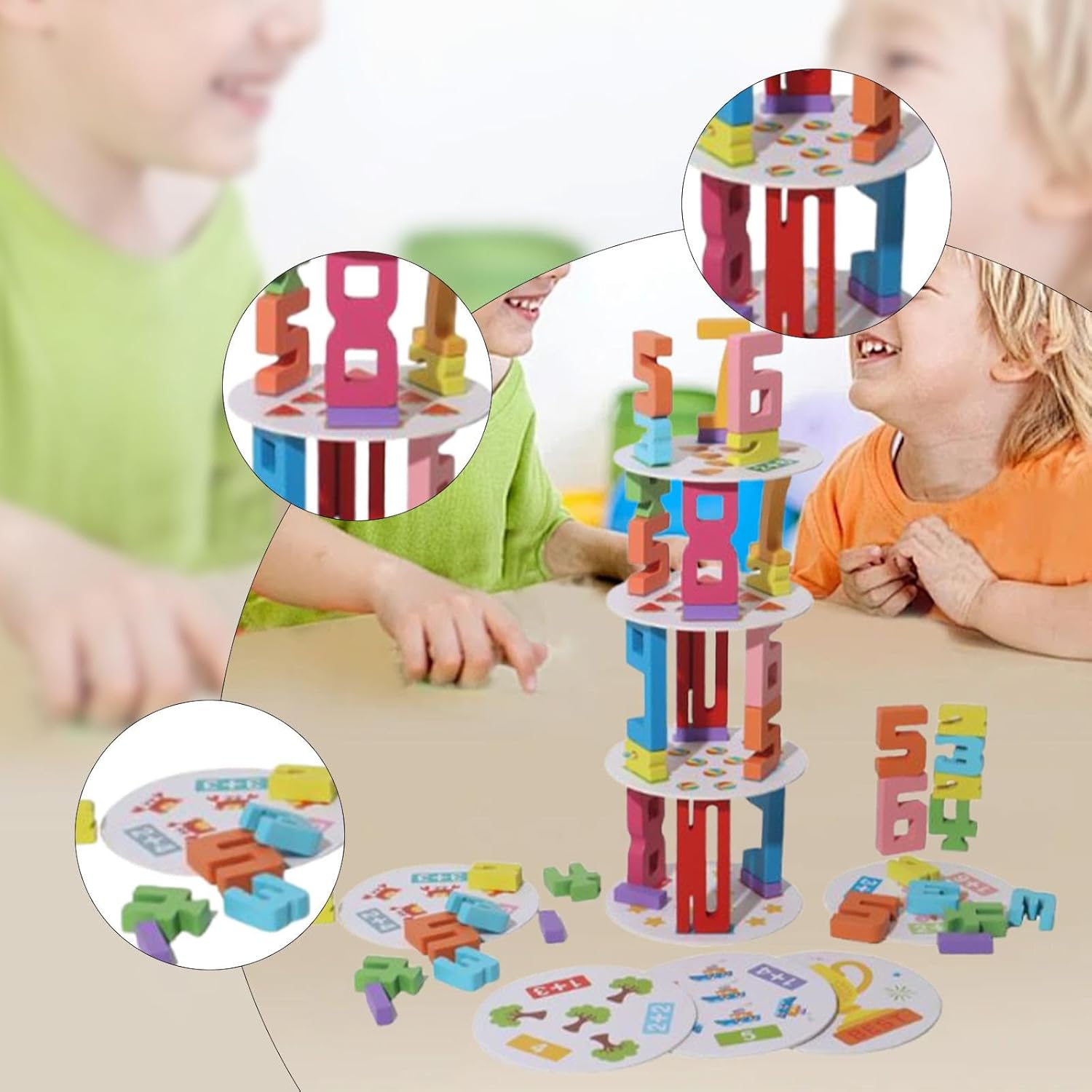 【Ottimo regalo】I giocattoli per l'apprendimento della matematica sono un ottimo regalo per i bambini in occasione di compleanni o altre festività 【Educativo】 I blocchi di conteggio possono aiutare i bambini a sviluppare le capacità motorie fini, esercitare la capacità di presa, il riconoscimento del colore delle forme, la capacità di osservazione, migliorare la loro capacità di pensiero ed esercitare la concentrazione dei bambini, la coordinazione occhio-mano e la pazienza 【Materiale】Il gioco di impilamento è realizzato in materiale di legno, ottimo per giocattoli educativi, giocattoli di impilamento, giocattoli di equilibrio, giocattoli sensoriali 【 di addizione】: il set include nove carte, ciascuna con tre equazioni di addizione con la stessa somma 【Impara i numeri e i colori】I blocchi di legno impilabili combinano l'istruzione con i giochi, che sviluppano il conteggio, il riconoscimento dei colori e le equazioni semplici