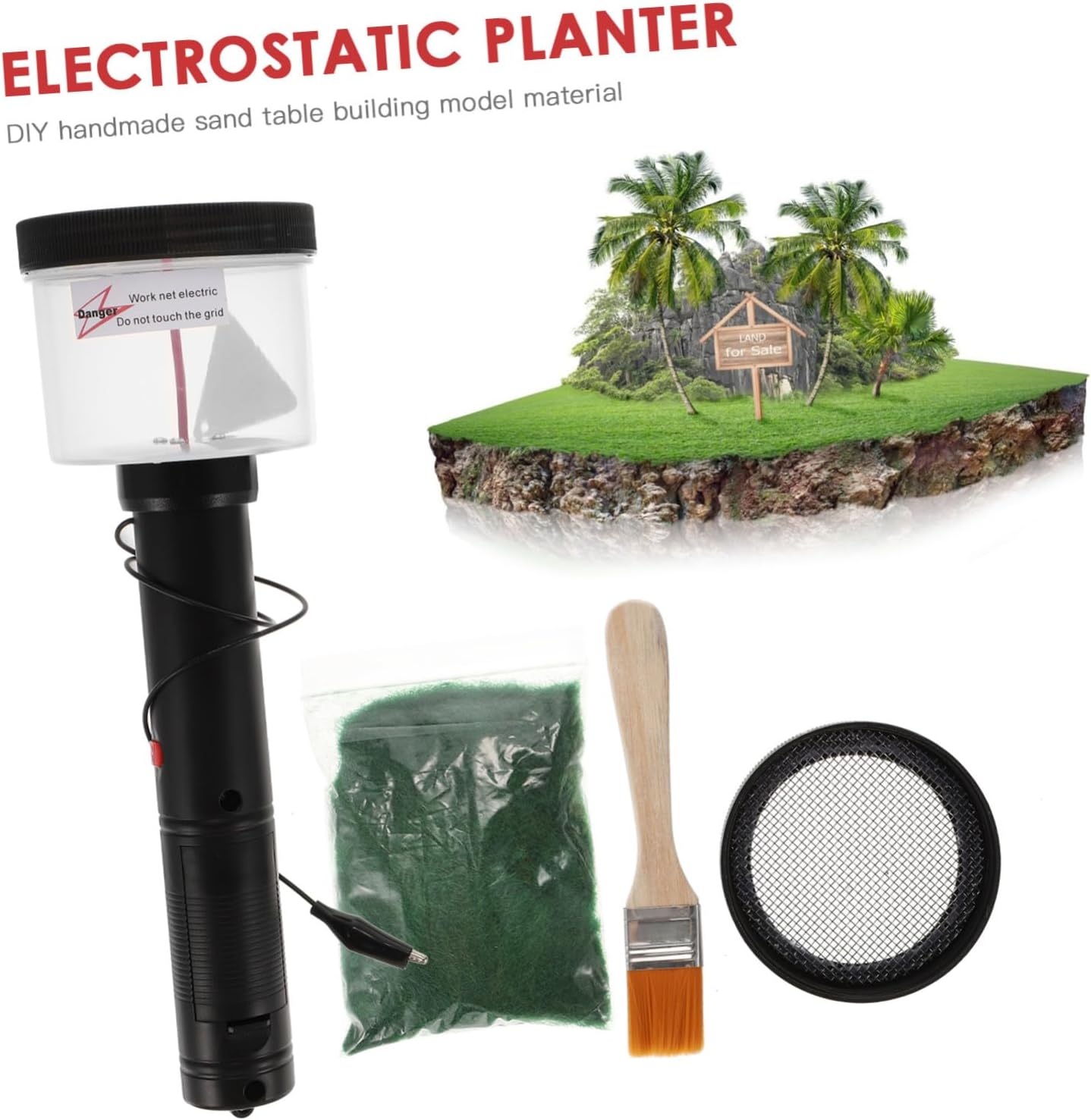 Pratico applicatore floccante manuale per piantare erba statica Robusto e durevole: il guscio è realizzato in plastica ABS di alta qualità, utilizza la tecnologia di saldatura, robusto e durevole Può essere utilizzato per piccoli modelli scenici fai-da-te, tavoli di sabbia, modelli, ecc. Nota: non utilizzarlo in luoghi in cui sono conservati gas o liquidi infiammabili ed esplosivi e non toccare oggetti metallici conduttivi Riempire la bottiglia a metà secondo necessità, assicurarsi che sia sotto tensione con la rete metallica dell'apertura della bottiglia