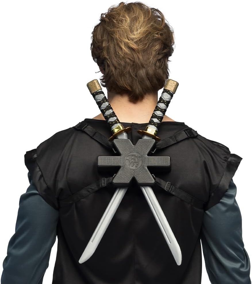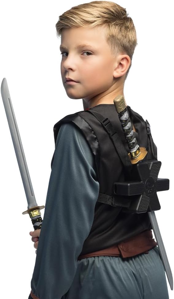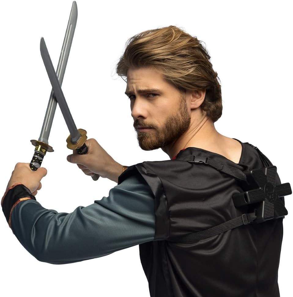 Accessorio costume ninja per carnevale, Halloween e compleanni dei bambini Per bambini, donne e adolescenti Fornitura: 2 spade ninja, 1 dispositivo di trasporto con cinghie regolabili Lunghezza delle spade: ca. 52 cm Colori: nero/grigio/oro
