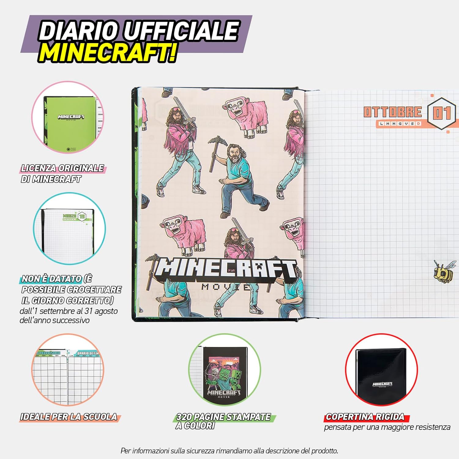 DIARIO SCUOLA UFFICIALE MINECRAFT: Sei un appassionato di videogiochi? Questo è il diario perfetto per te! Il prodotto è distribuito da Franco Cosimo Panini Editore con licenza originale di Minecraft IDEALE PER LA SCUOLA: Questo diario non è datato (è possibile crocettare il giorno corretto), dal 1 settembre al 31 agosto dell'anno successivo, è personalizzato Minecraft ed è ideale per prendere nota di compiti, verifiche, interrogazioni e molto altro RESISTENTE E COLORATO: La copertina rigida e imbottita è pensata per una maggiore resistenza. Include 320 pagine interne stampate a colori, ideali per rendere più allegre e divertenti le giornate a scuola LINEA SCUOLA MINECRAFT: Scopri tutti gli articoli per la scuola Minecraft, personalizzati con stampe del tuo videogioco preferito! DISTRIBUTORE UFFICIALE: La Divisione Scuola di Franco Cosimo Panini Editore è specializzata nella produzione e distribuzione di articoli per la scuola, accessori per il tempo libero e idee regalo. Il marchio Comix, di proprietà dell'azienda, è affiancato da numerosi brand di successo in licenza, noti a livello nazionale e mondiale