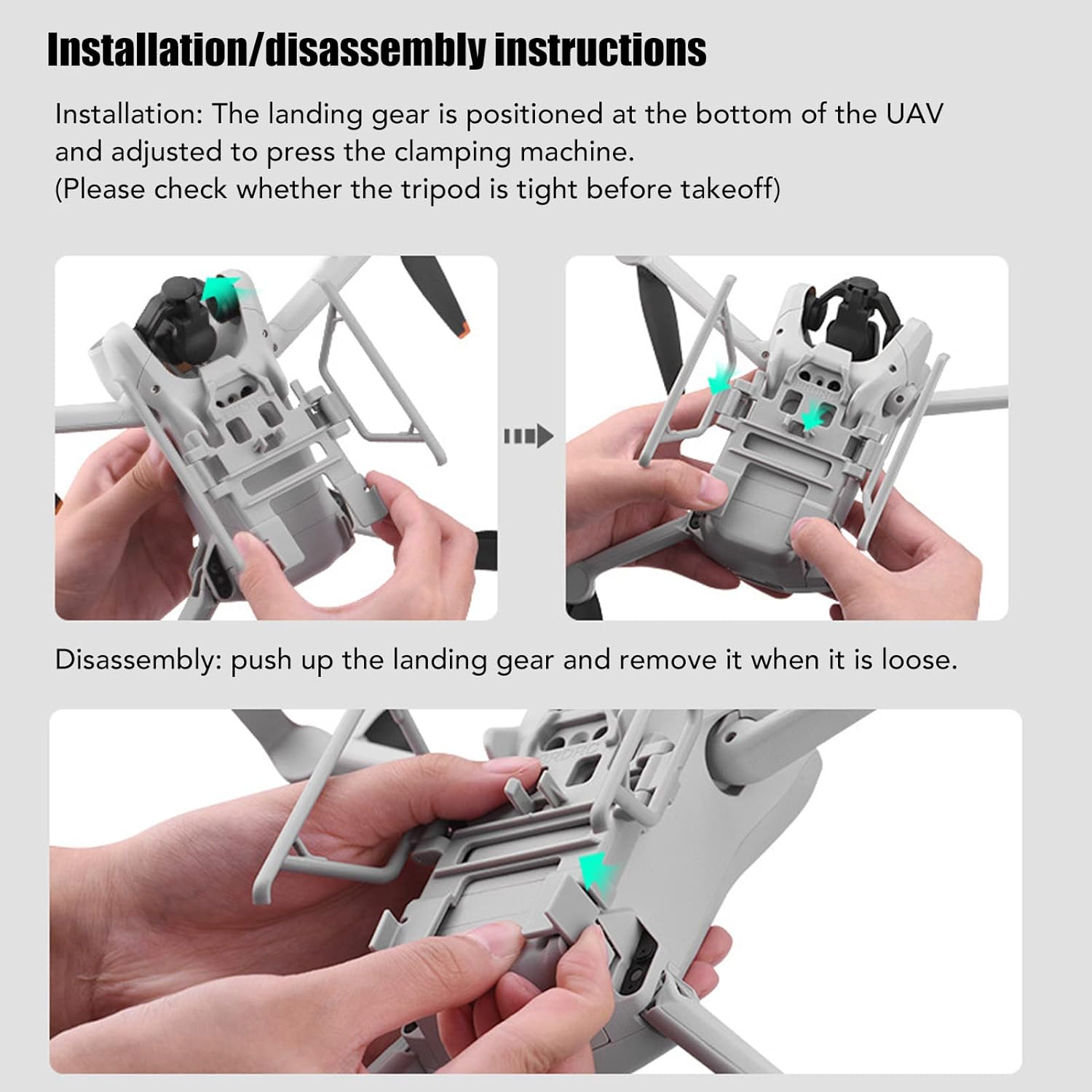 [Modello applicabile] Questo carrello di atterraggio è adatto per Mini 3, squisita fattura, dimensioni adeguate, installazione facile e conveniente. [Lightweight] Il carrello di atterraggio di questo drone è design leggero che non interferisce con il volo e ha una lunga durata di servizio. [Dimensione standard] Apertura precisa senza influire sulla dissipazione del calore, il di visione e il di rilevamento nella parte inferiore del corpo, [Struttura stabile] L'ingranaggio di atterraggio di questo drone è di strutture esterne, solida e , per design a rilascio rapido, può essere saldamente bloccato al corpo, facile da installare e rimuovere. [Compatto e portatile] Questo treppiede pieghevole è compatto e facile da archiviare, non occupa spazio, quindi puoi facilmente viaggiare.