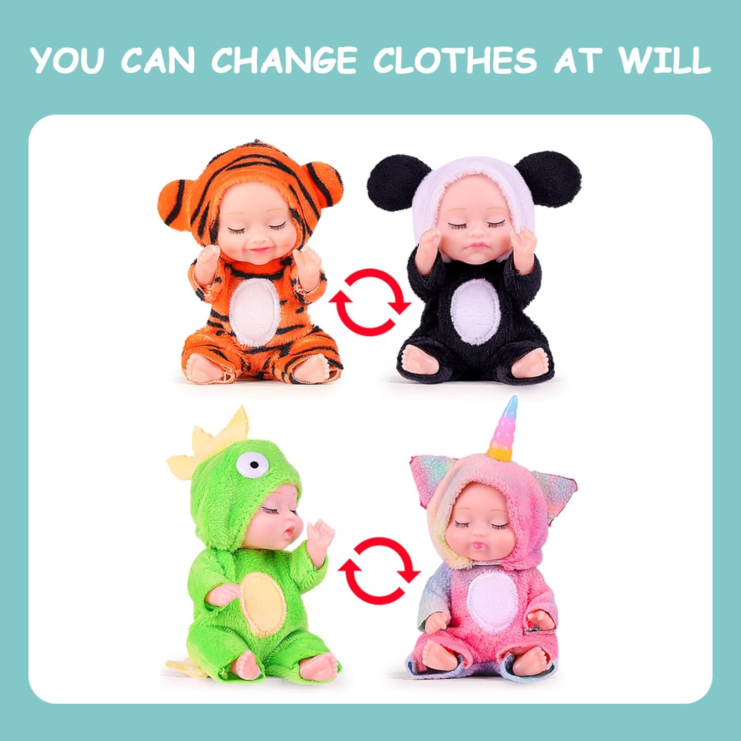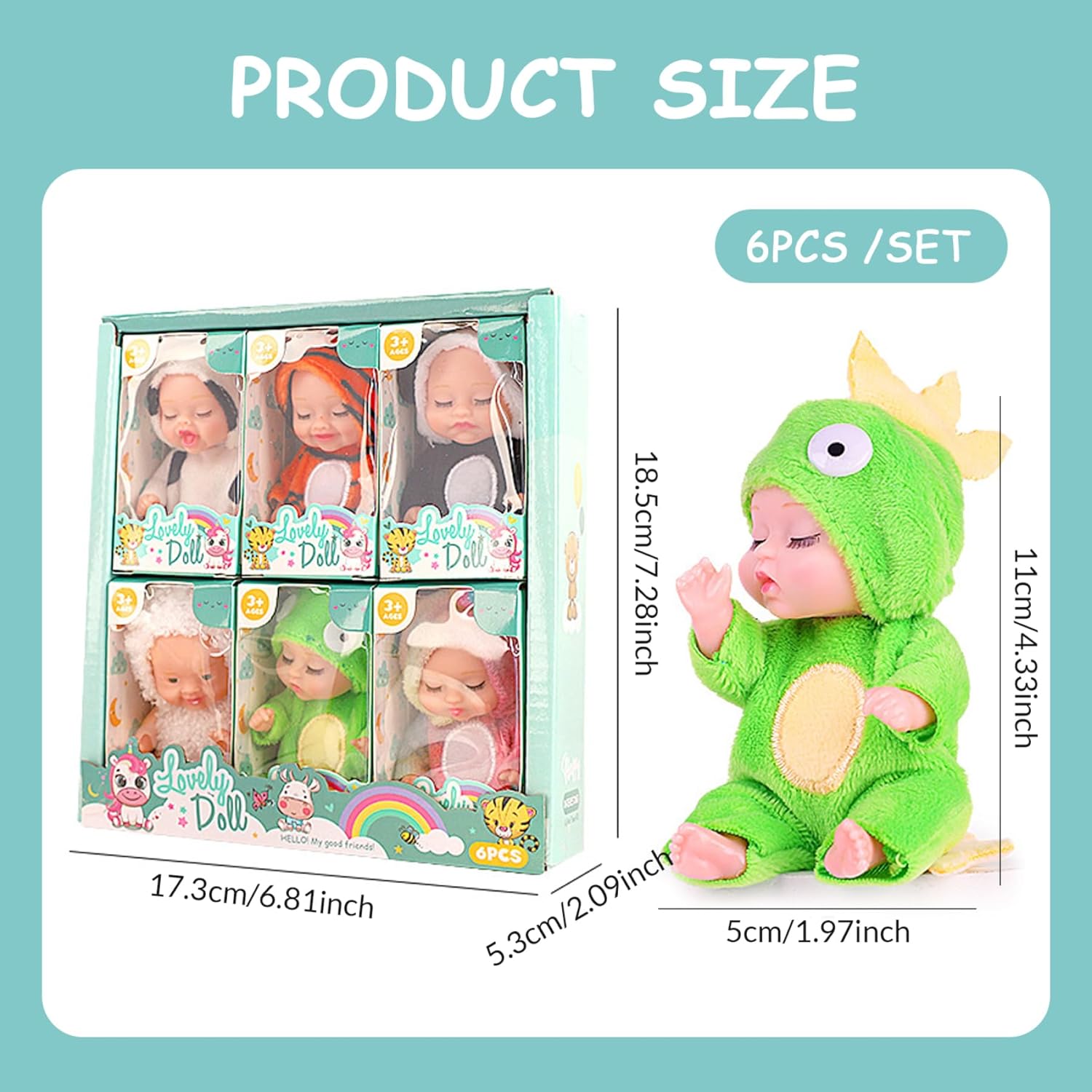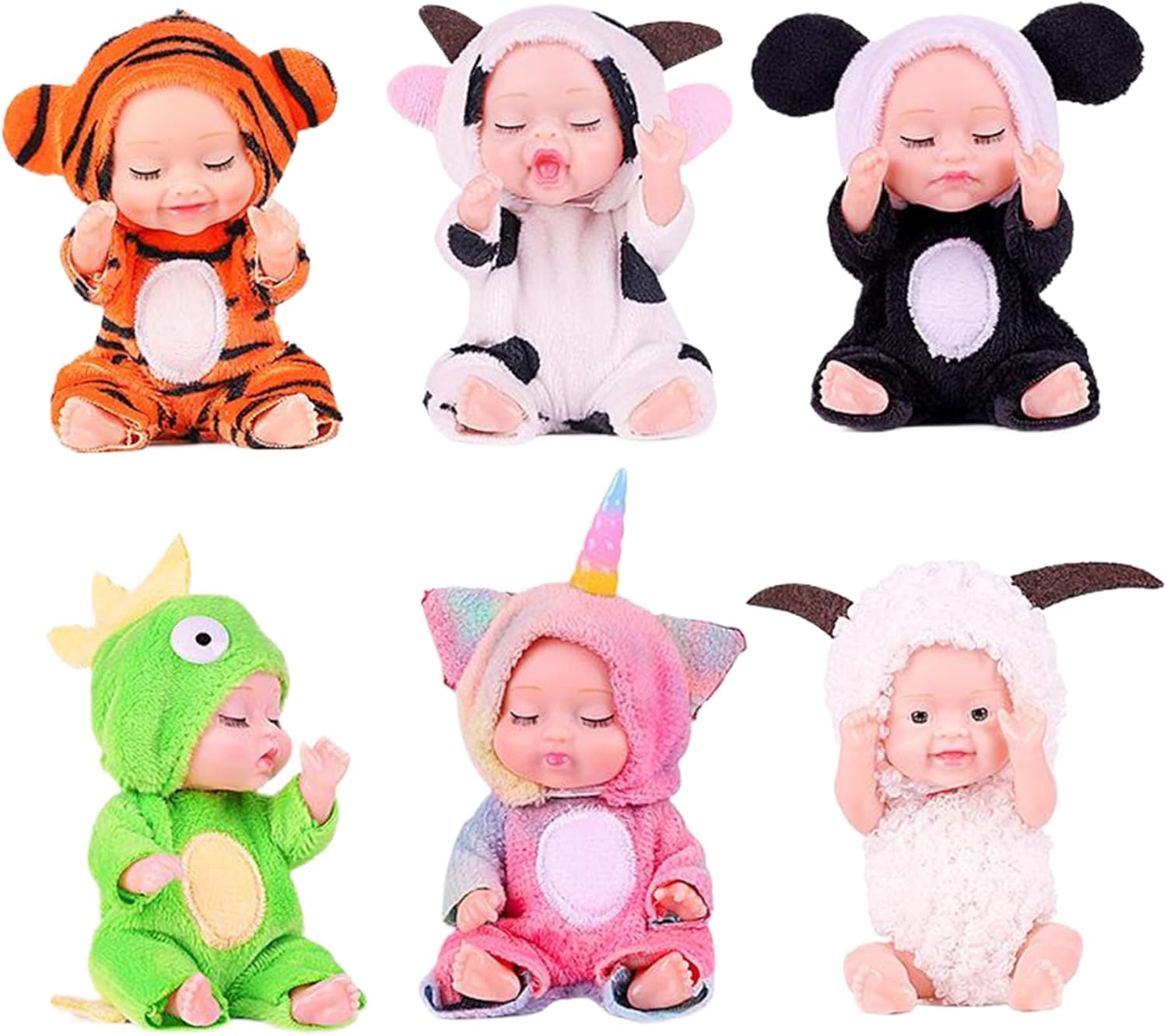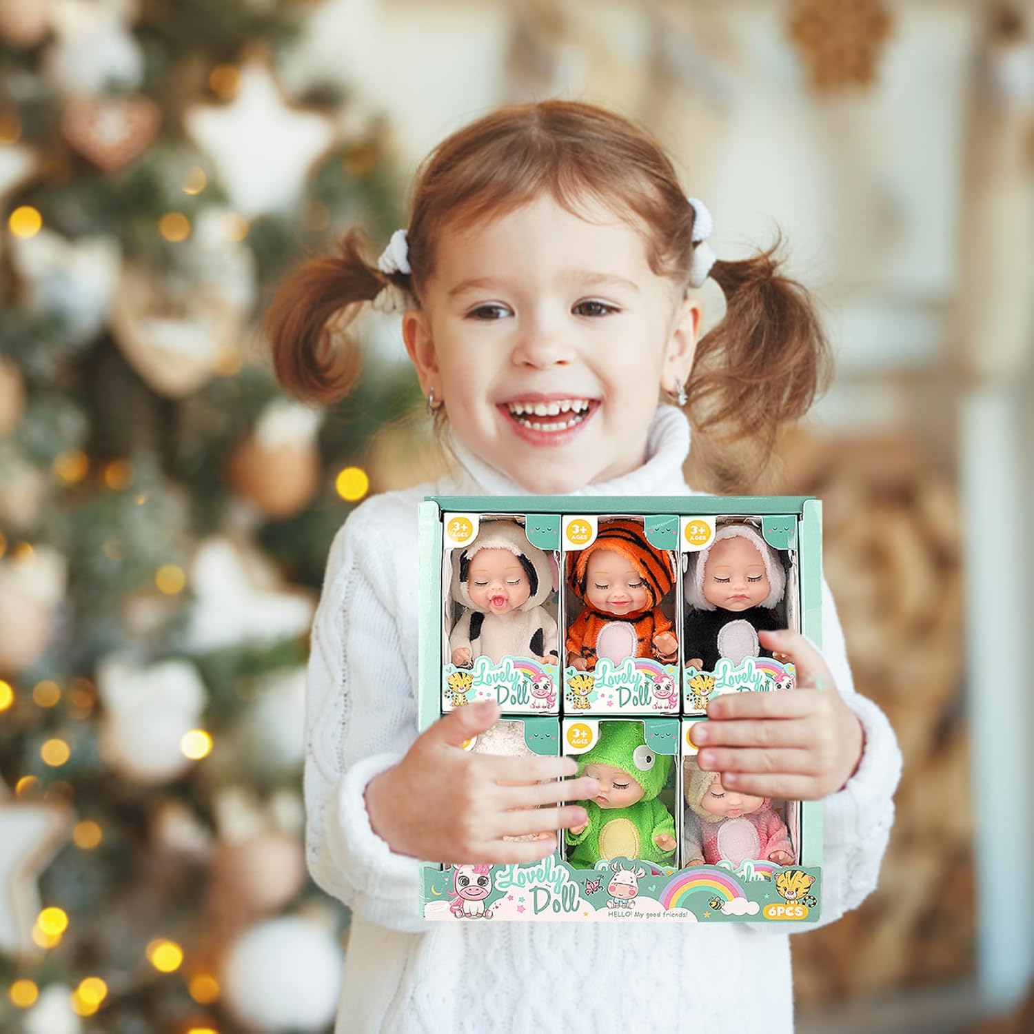 Durevoli e sicure: realizzate in materiale PVC di qualità, queste mini bambole sono realistiche e di lunga durata..Sono resistenti all'usura e garantiscono un utilizzo e un divertimento a lungo termine..Sono anche sicuri per far giocare i bambini, offrendo tranquillità ai genitori. Vestiti diversi: questo set include sei mini bambole con vestiti diversi, tra cui tigre, mucca, panda, pecora, dinosauro e altro ancora..La varietà di vestiti consente versatilità nel gioco del tuo bambino, fornendo scenari e temi diversi. Giunto mobile: queste mini bambole sono dotate di giunti mobili, che consentono un gioco interattivo e divertente..I bambini possono muovere braccia e gambe, creando pose e scenari diversi, esaltando la loro creatività e fantasia. Realistico e carino: questo set di sei mini bambole presenta un design realistico e carino, catturando l'innocenza e la bellezza dei bambini..L'aspetto adorabile li rende un giocattolo perfetto per le ragazze di tutte le età. Perfetto per le ragazze: questo set di mini bambole è perfetto per le ragazze di tutte le età..È un regalo premuroso e memorabile che cattura l'innocenza e la bellezza dei bambini e offre ore di divertimento e gioco interattivo.