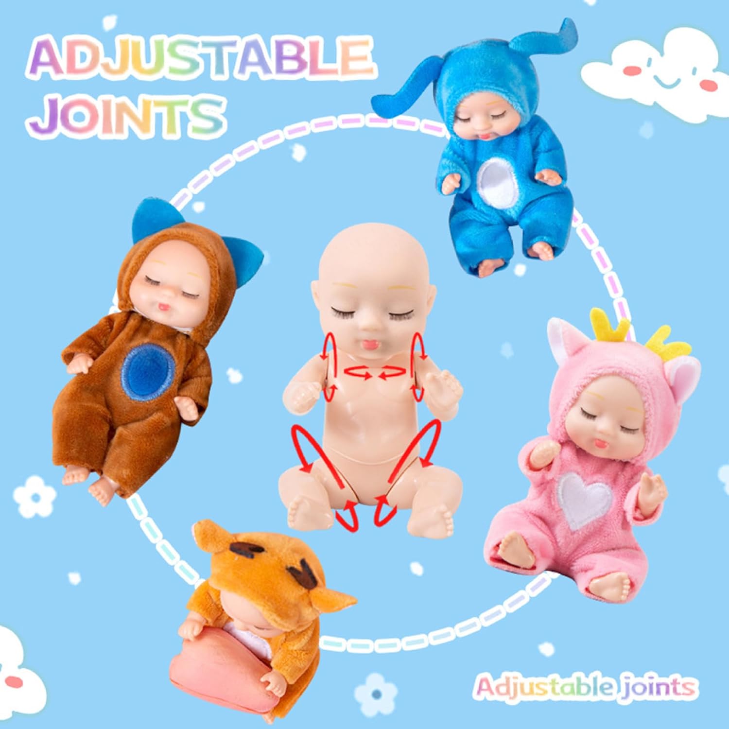 Design realistico: ogni piccola bambola da bambino presenta un design realistico, con braccia e gambe flessibili che possono essere poste in vari modi..Sono anche forniti con abiti morbidi e indossabili a tema animale, aggiungendo al loro fascino e fascino. Compatto e portatile: misurazione di 11x5 cm/4.33x1,97 pollici, queste mini bambole sono leggere e facili da trasportare..Si adattano perfettamente alla tasca o allo zaino di un bambino, fornendo divertimento e intrattenimento in movimento. Ottima idea: questo set di 6 bambole è perfetto per occasioni come Natale, Ringraziamento, Compleanni, Baby Shower e Children's Day..Carino, divertente ed educativo, aiutano i bambini a sviluppare emotivamente attraverso l'interazione giocosa. Materiale sicuro: queste mini bambole per bambini sono realizzate in materiale in PVC di alto livello che è sicuro e privo di odori..Sono liberi da sostanze dannose, progettate per sopportare una manipolazione ruvida, garantendo un uso duraturo. Ideale per i bambini piccoli: adatti ai bambini di età pari o superiore a 3 anni, queste bambole realistiche sono facili da gestire, fornendo ore di gioco fantasioso..Incoraggiano la creatività e aiutano a sviluppare abilità sociali.