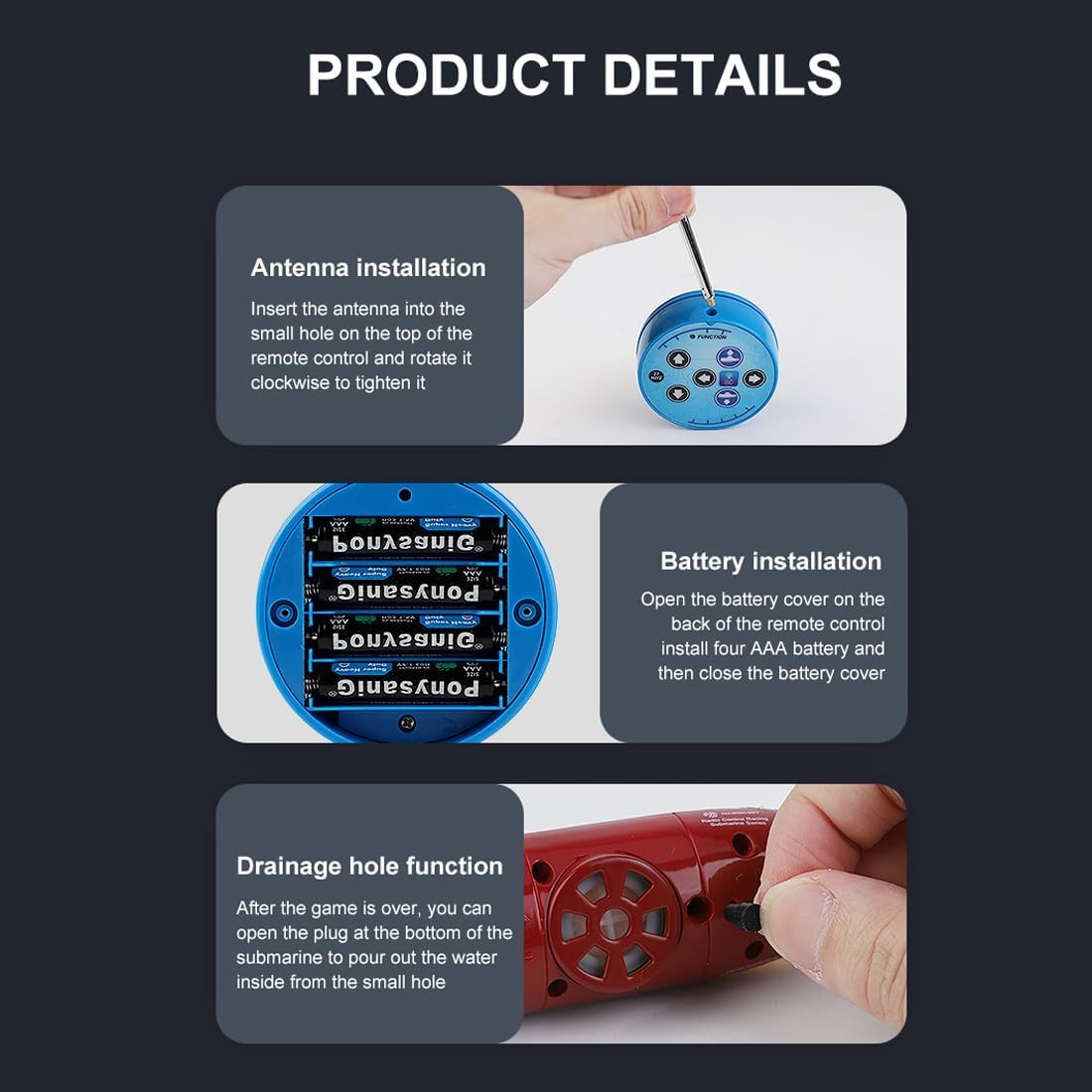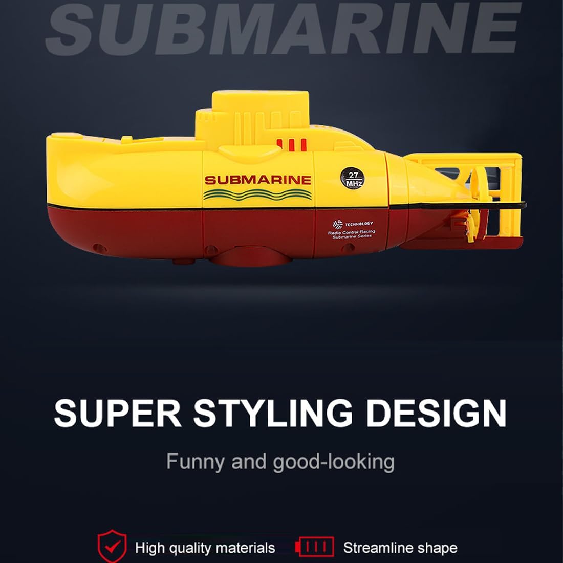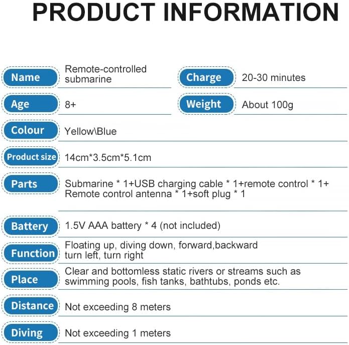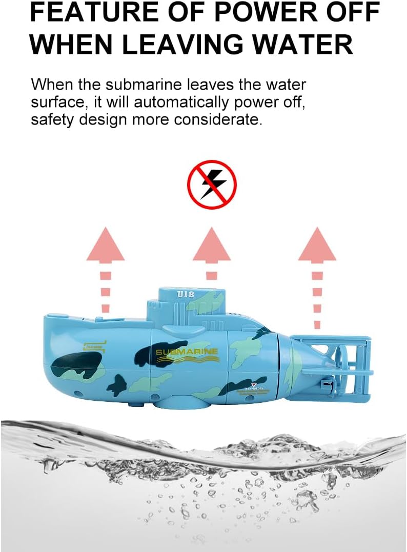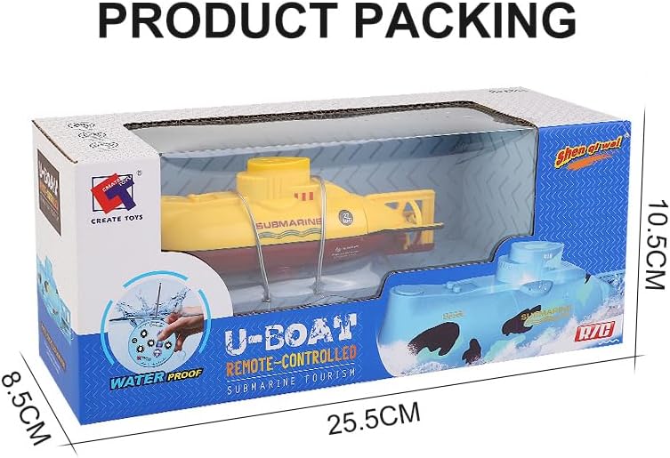 Design unico sottomarino: simula un vero sottomarino con una forma compatta in giallo o blu, perfetto per giochi d'acqua estivi e divertenti esplorazioni subacquee in piscine o acquari Controllo flessibile a sei vie: supporta sei direzioni: su, giù, avanti, indietro, sinistra e destra, offrendo manovre stabili e reattive per un'autentica esperienza di immersione mini 【In bilico senza alimentazione】: l'innovativa camera di drenaggio consente al sottomarino di librarsi sull'acqua naturalmente senza energia, ricreando il vero sistema di galleggiamento sottomarino per un gioco realistico Sicuro e impermeabile: dotato di telecomando impermeabile con antenna facile da installare, elica nascosta per un funzionamento sicuro e spegnimento automatico quando fuori dall'acqua per una maggiore sicurezza Ricaricabile tramite USB: include cavo di ricarica USB per una facile ricarica, compatibile con varie porte, garantendo una maggiore durata di riproduzione; set completo con telecomando, antenna e soft plug inclusi