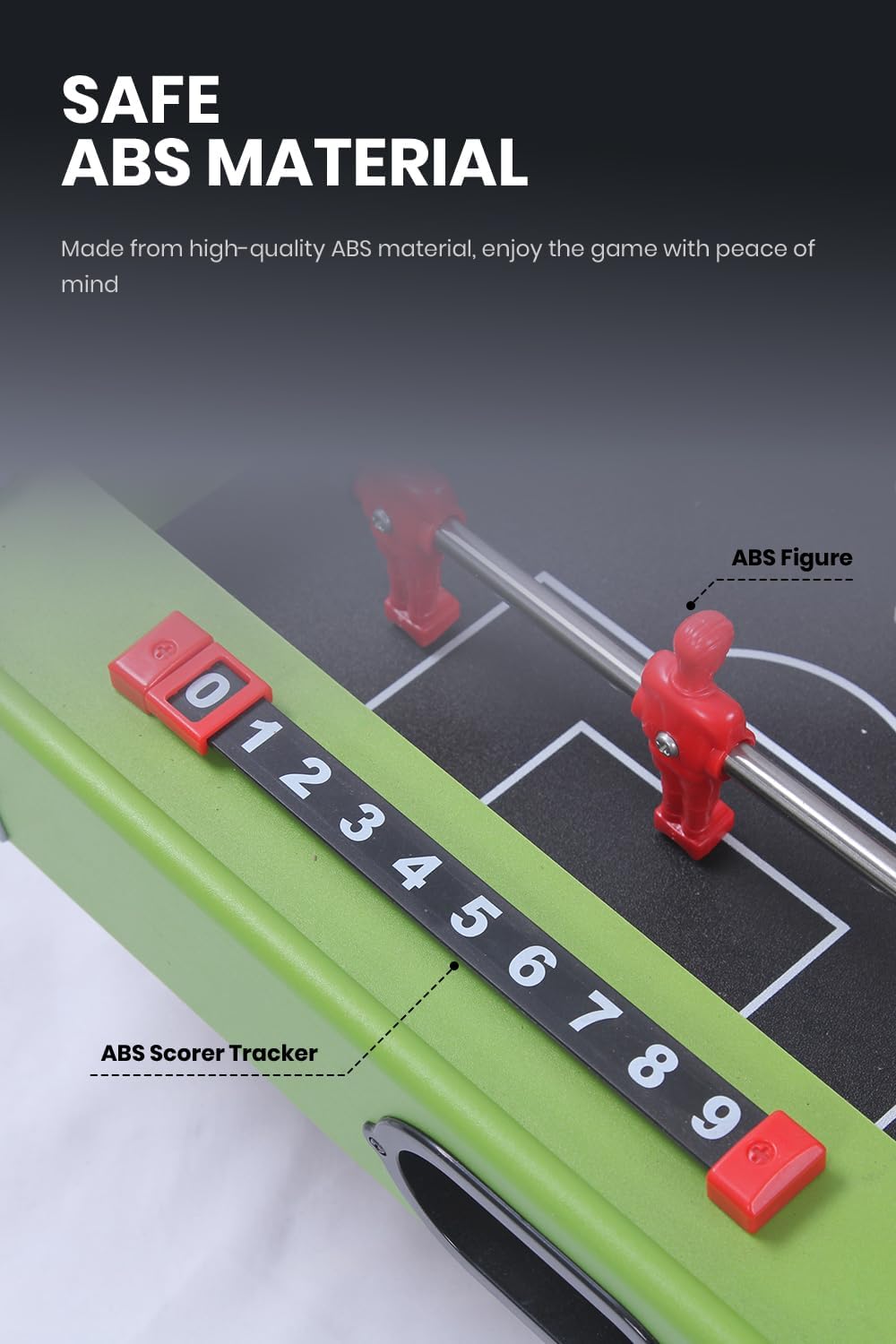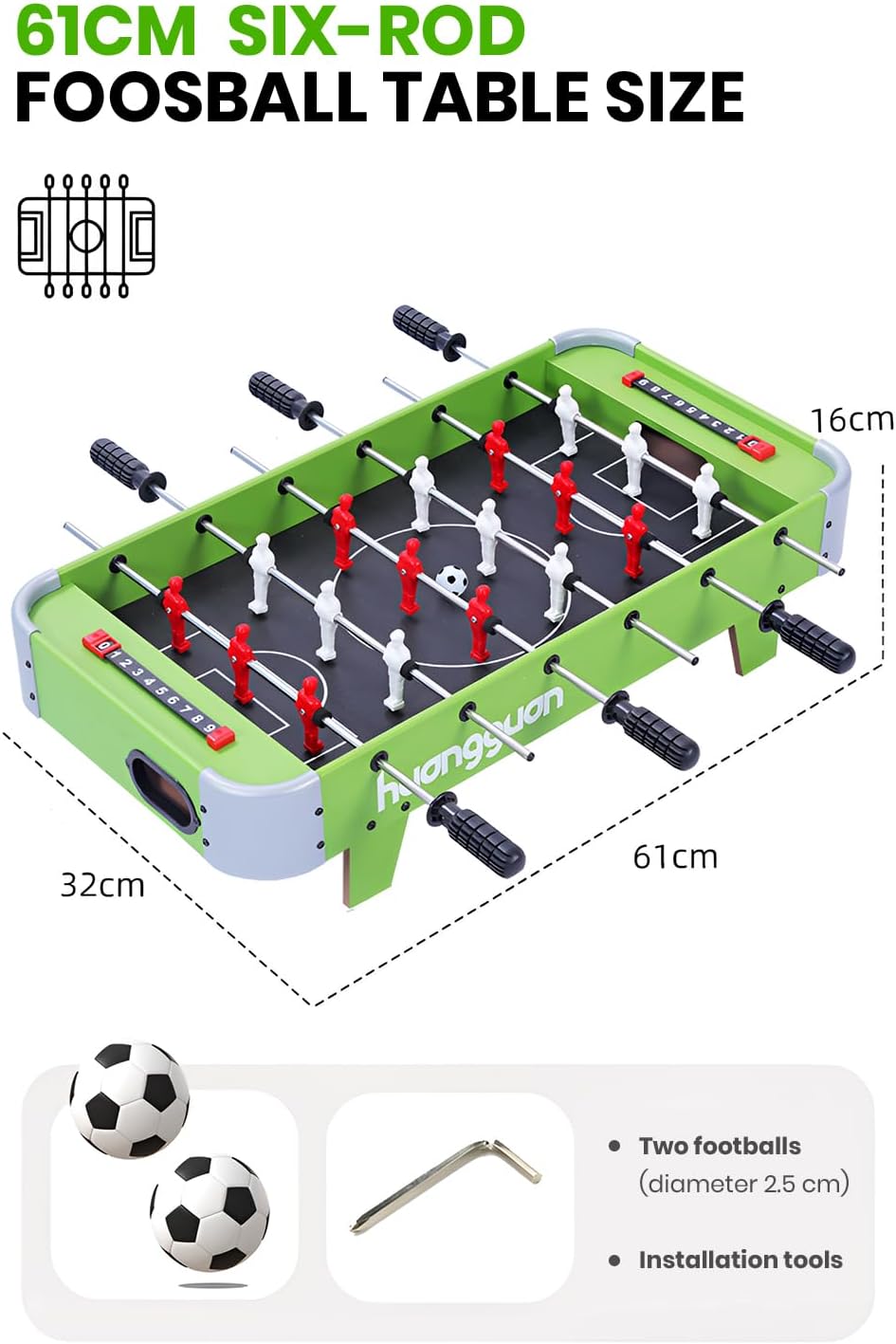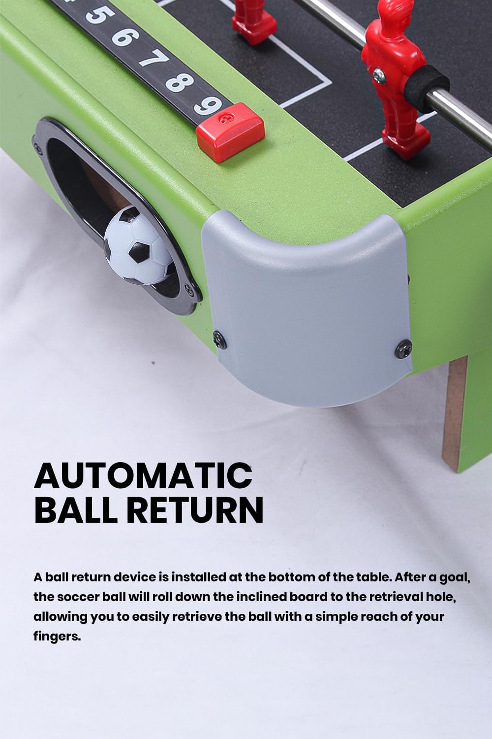👨👩👧👦 Divertimento per tutta la famiglia: il nostro mini biliardino offre un divertimento calcistico indimenticabile per tutta la famiglia. Pensato per i giovani appassionati di calcio, ma ideale anche per gli adulti. ⚽ Gioco istantaneo: gira, tira e spingi le barre per controllare la palla. Con due palline e un tabellone segnapunti chiaro, tutti possono godersi ogni minuto del gioco. Il pratico display del punteggio rende il conteggio dei gol un gioco da ragazzi. 🎊 Alta qualità: robusti personaggi giocattolo in plastica e impugnature antiscivolo garantiscono un piacere di gioco sicuro e duraturo. Dimensioni ca. 69×37 cm. Con 6 pali da gioco e 3 giocatori per palo, 2 palloni inclusi. 🎉 Compatto e flessibile: grazie al suo design compatto, il biliardino si adatta a qualsiasi tavolo e può essere utilizzato ovunque. maniglie avvitate, tappi terminali dell'asta di protezione, paracolpi in schiuma. 🎁 Regalo perfetto: per ragazzi o ragazze: il nostro gioco di calcio balilla è il regalo perfetto per i piccoli appassionati di calcio. Una gioia da giocare e un meraviglioso soggiorno in famiglia.