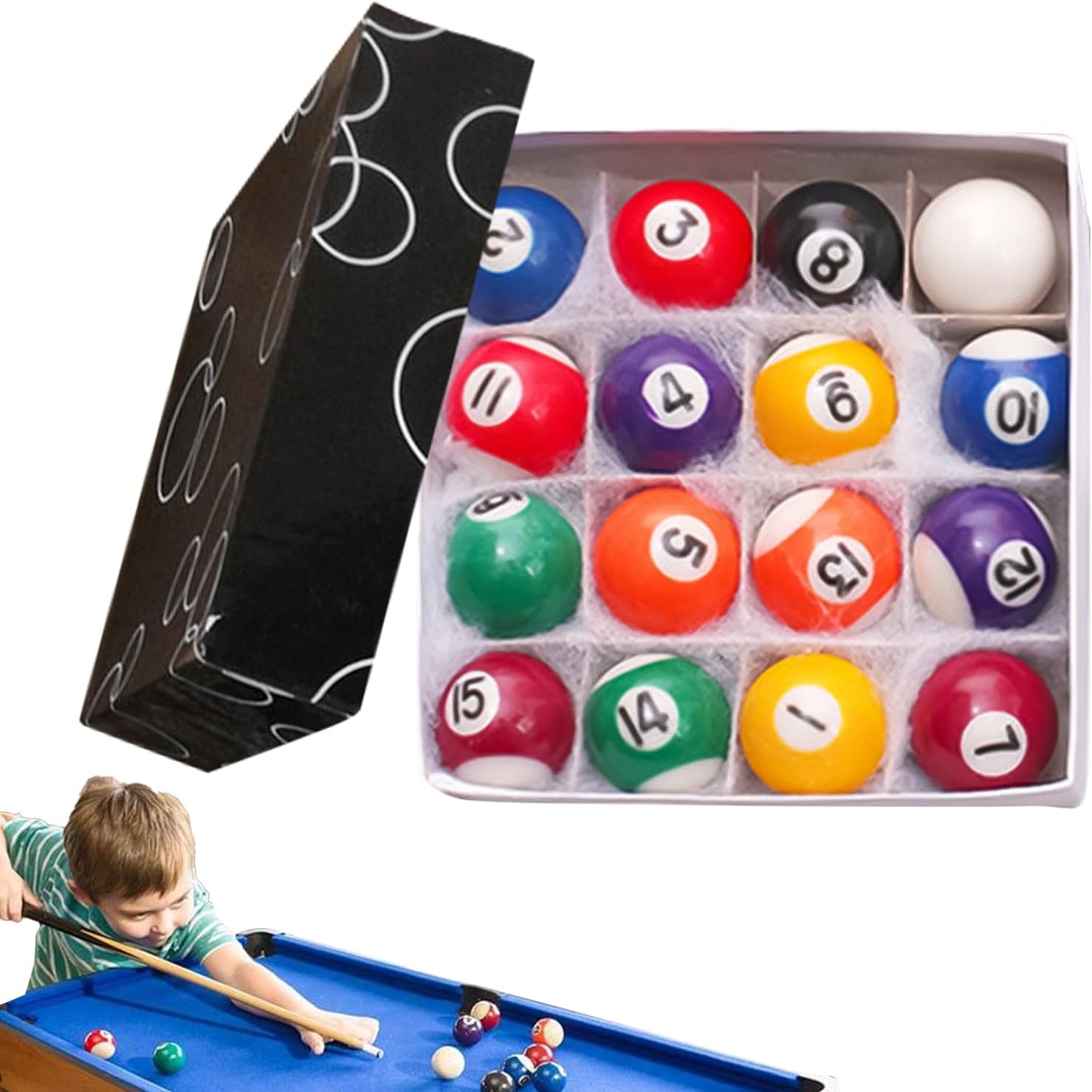 16-Piece Complete Set: This mini billiards ball set includes all 15 numbered balls plus a cue ball for full gameplay. Taglia solo destra per tabletop utilizzare o piccoli giochi di piscina. Ottimo per insegnare i bambini alle basi dei billiardi in un modo divertente. Durevole &: Made from high-quality resin for long lasting durability and a glossy, smooth. Balls roll evenly on any mini table or flat. Designed to resist chips and scratches during active play. Educational & Skill-Building: Incoraggia la coordinazione dell'occhio, numero di riconoscimento, e abilità fondamentali. Un modo divertente per introdurre i bambini alle regole e alle tecniche. Ideale per l'apprendimento e la riqualificazione domestica. Portable & Travel-Friendly: Lightweight and compact, this set fit easily in small bags or storage cases. Take it to school, travel trips, or playdates with ease. Keep children entertained anywhere, anytime. Divertimento per tutte le età: perfetto per ragazzi e ragazze che amano i giochi, puzzle, e mini sport giocattoli. Sicuro e divertente per bambini mentre anche divertente per adolescenti e adulti. Una grande attività indoor per famiglie e giochi di gruppo.
