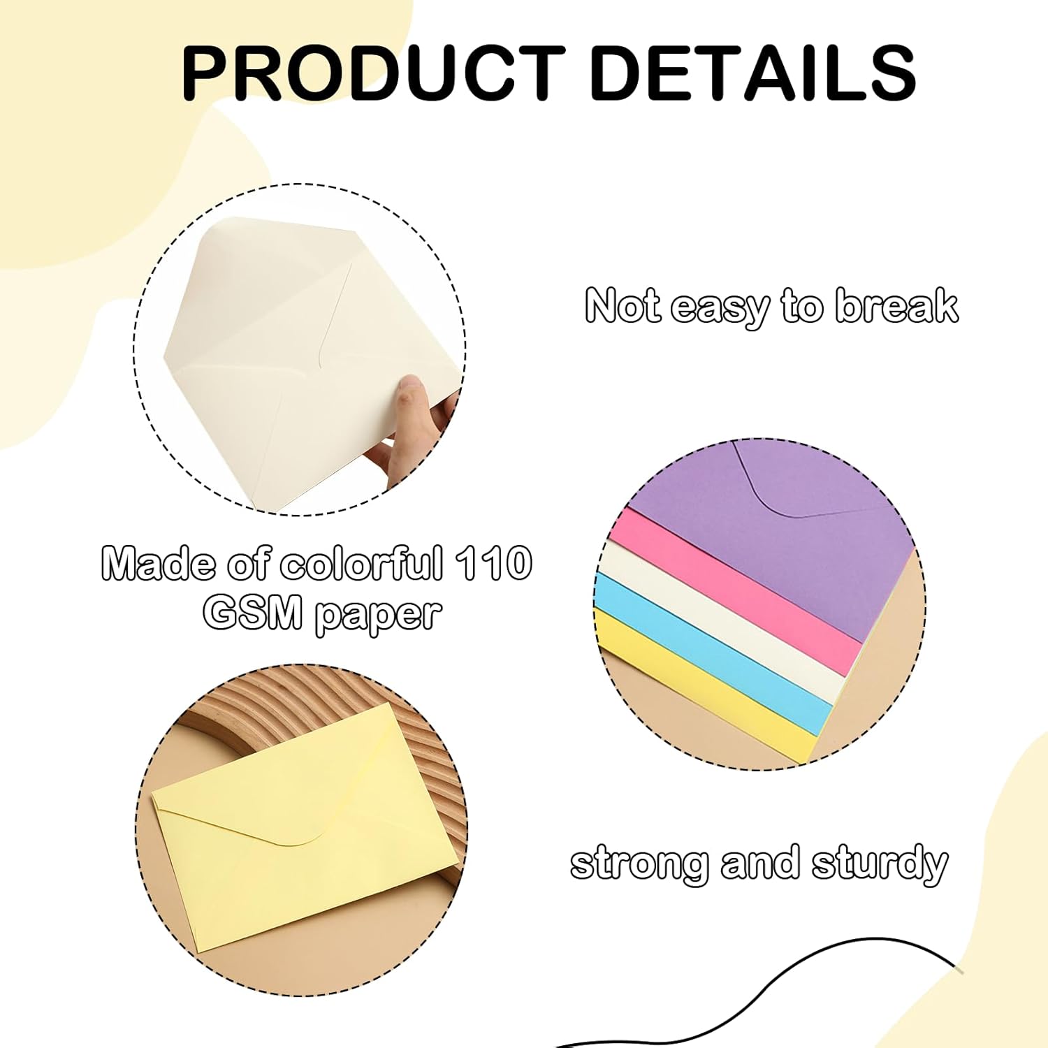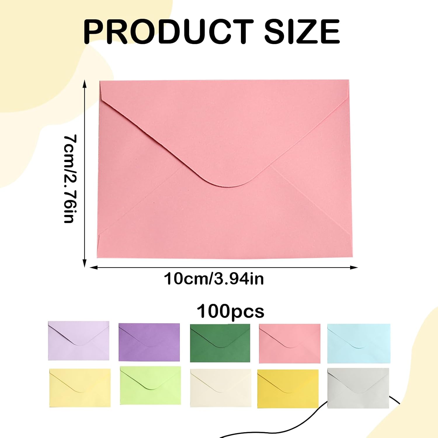 100 buste colorate in 10 colori: giallo limone, azzurro, verde chiaro, viola scuro, rosa, viola chiaro, grigio chiaro, verde chiaro, verde scuro, crema, giallo chiaro, 10 colori, 10 fogli per ogni colore Dimensioni: le buste colorate misurano 10 x 7 cm, piccole e squisite, colorazione uniforme, la superficie vuota può essere un design fai da te Design unico fai da te: ogni piccola lettera di buste è vuota su entrambi i lati e offre possibilità illimitate per la vostra creatività. Puoi dare libero sfogo alla tua immaginazione per disegnare modelli a mano, scrivere messaggi o incollare foto sulla busta per creare una busta unica e personalizzata che la rende un corriere unico che trasporta le tue emozioni e storie. Carta di alta qualità selezionata: le nostre piccole buste da lettera sono realizzate in carta di alta qualità, le mini buste hanno una sensazione delicata e liscia e colori brillanti e accattivanti. La sua superficie è liscia e lucida, che non solo aumenta la bellezza visiva, ma ha anche una durata estremamente elevata. I bordi sono lisci e senza sbavature, in modo che le lettere rimangano a lungo. Ampia applicazione: le nostre mini buste sono ideali per personalizzare biglietti regalo, lettere di ringraziamento, inviti, biglietti di auguri, biglietti di Natale e biglietti da visita e possono essere utilizzate anche come piccoli dispositivi come collane di gioielli, perline, ciondoli, foto, fermagli per capelli, penne, graffette, monete, ecc.