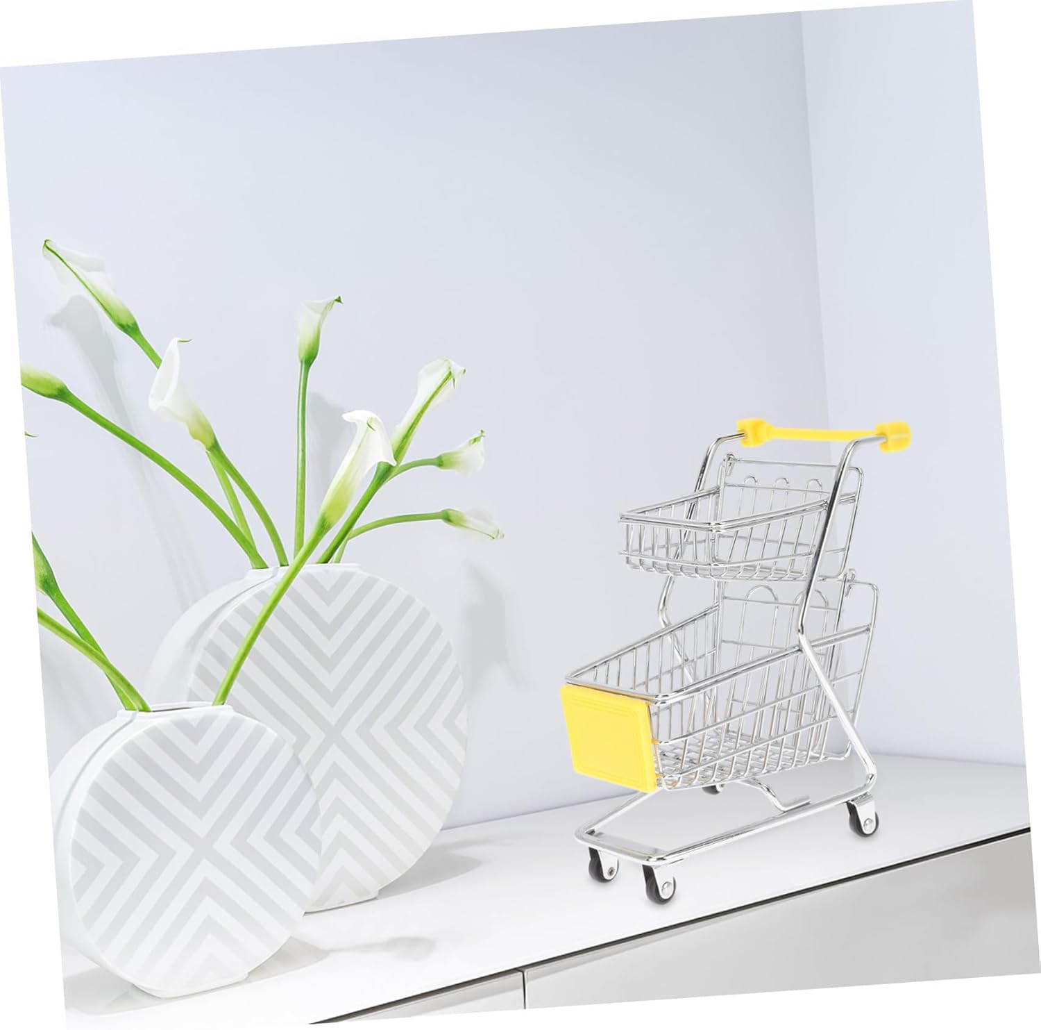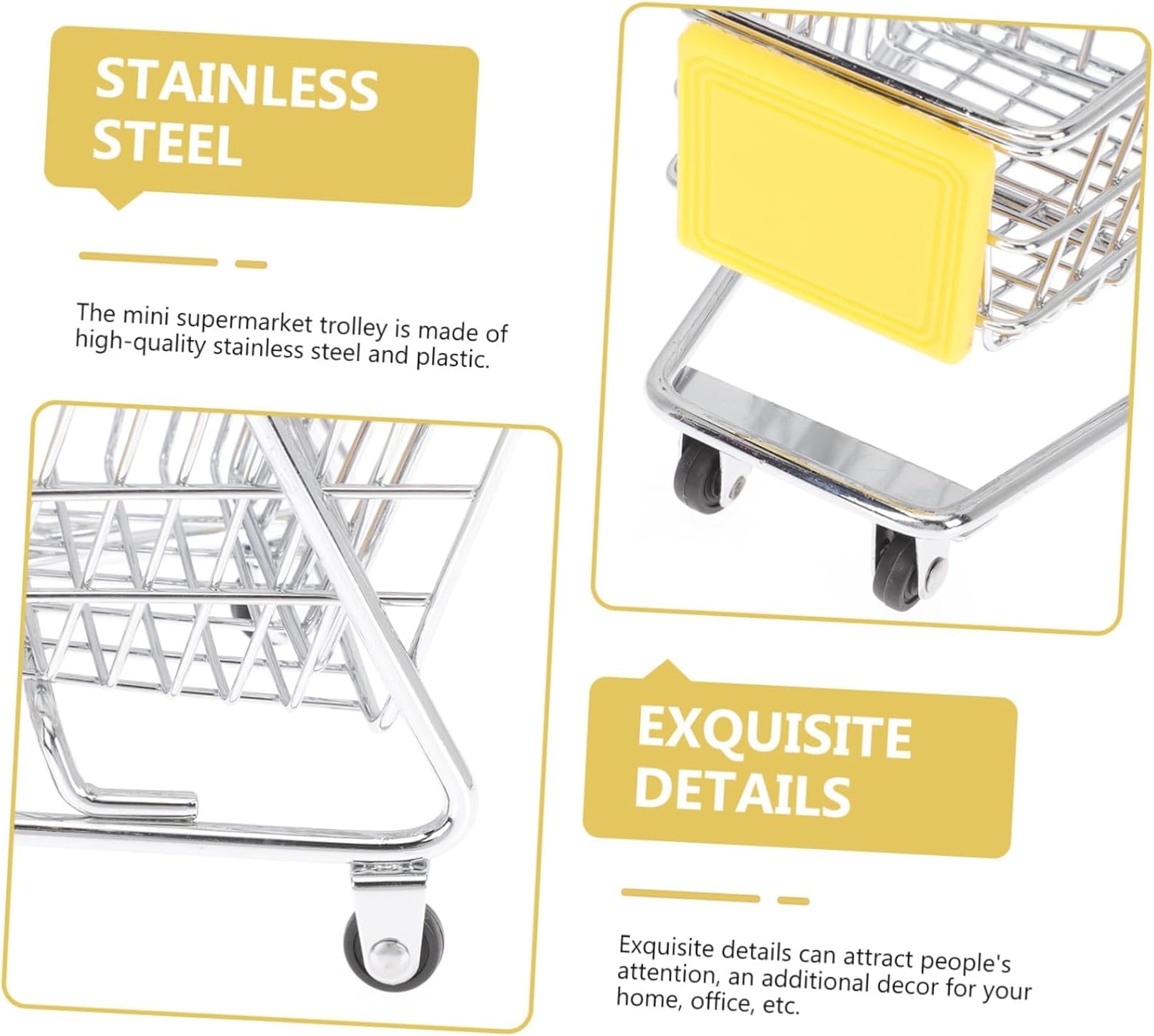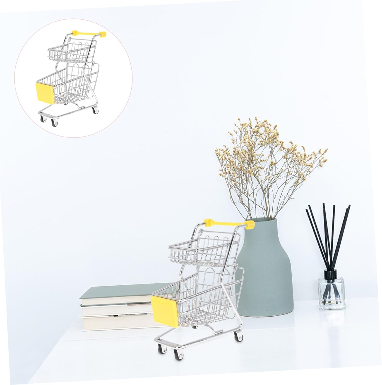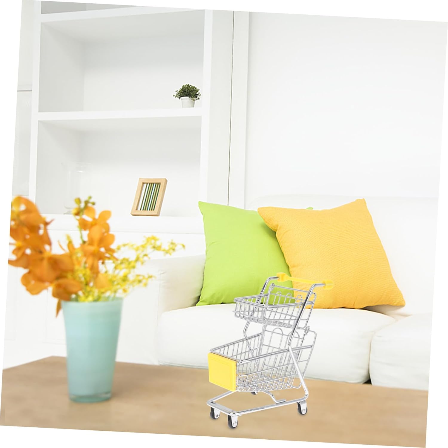 Ornamento da tavolo: puoi utilizzare questo mini carrello per aiutarti a organizzare le piccole cose sul tavolo o sulla scrivania, carrello del supermercato. Giocattoli di stoccaggio: questo mini carrello della spesa è delicato, non facile da sbiadire e deformare e può essere utilizzato a lungo. Mini carrello della spesa Mini carrello della spesa - L'esclusiva forma del carrello della spesa garantisce la popolarità di questa decorazione da scrivania, che è molto creativa e accattivante. Piccolo carrello della spesa giocattolo per bambini - Questo è un mini carrello della spesa che replica esattamente l'aspetto di un normale carrello della spesa del supermercato ed è molto bello. Carrello portaoggetti Cesto regalo grande: anche se piccolo, questo modello di mini carrello può essere utilizzato per riporre una varietà di articoli come matite, cosmetici, penne. essere utilizzato. arredamento della scrivania