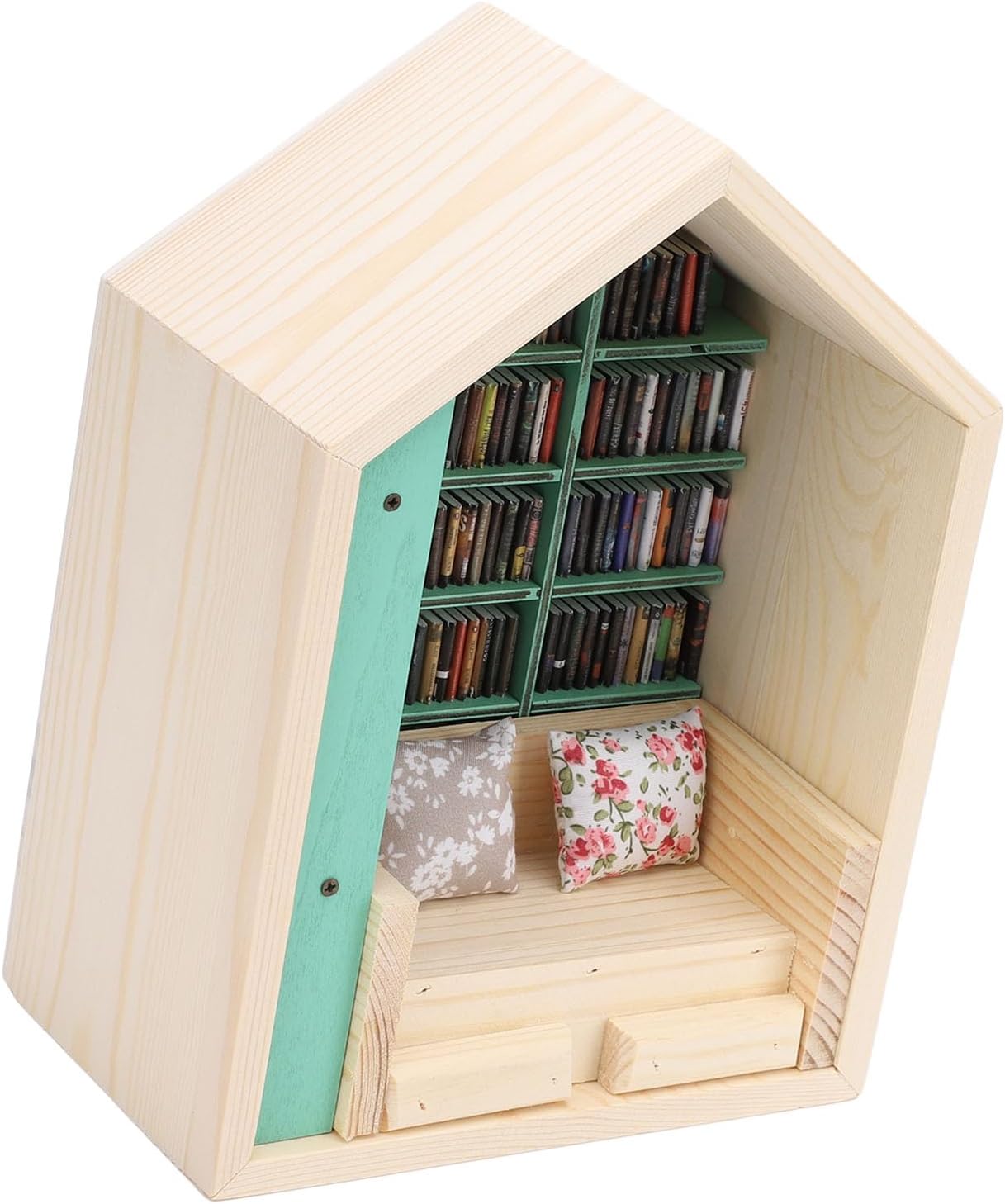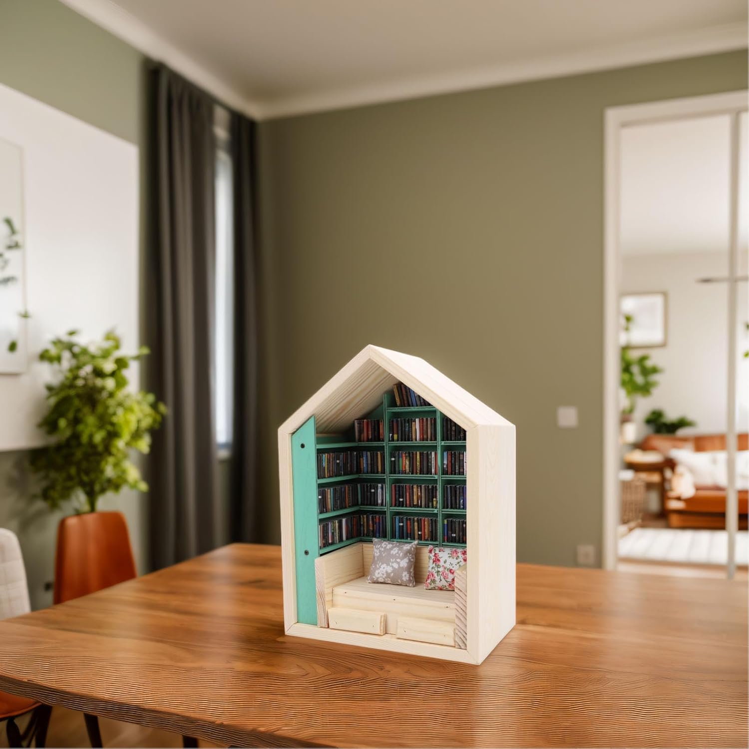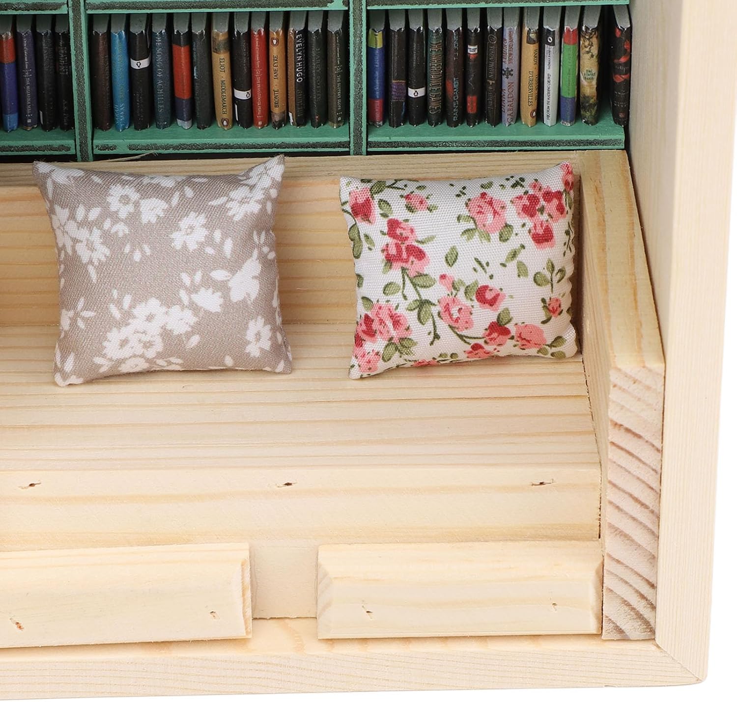 Materiali di alta qualità: realizzata in legno robusto, questa casetta è robusta e resistente alle deformazioni, garantendo una lunga durata e aggiungendo fascino festoso alla tua casa. Design raffinato: il set della libreria contiene libri e 2 cuscini, per un totale di circa 200 libri diversi. La casa dal design accattivante dispone di una libreria artigianale. Accento decorativo: questo set di librerie per piccole case è adatto per stanze, sale studio, scrivanie, soggiorni, librerie e caffè. Questo pezzo unico aggiungerà fascino e creatività a qualsiasi stanza. Fantastico: posiziona questa attraente mini casa nella tua stanza per darle un'atmosfera artistica. Il mini set per l'angolo del libro è adorabile e divertente per gli amanti dei libri. Sollievo dallo stress: scuoti i libri quando ti senti stressato o organizzali ordinatamente quando ti senti ansioso. Con la nostra mini casa vivrai ogni volta un'esperienza diversa.