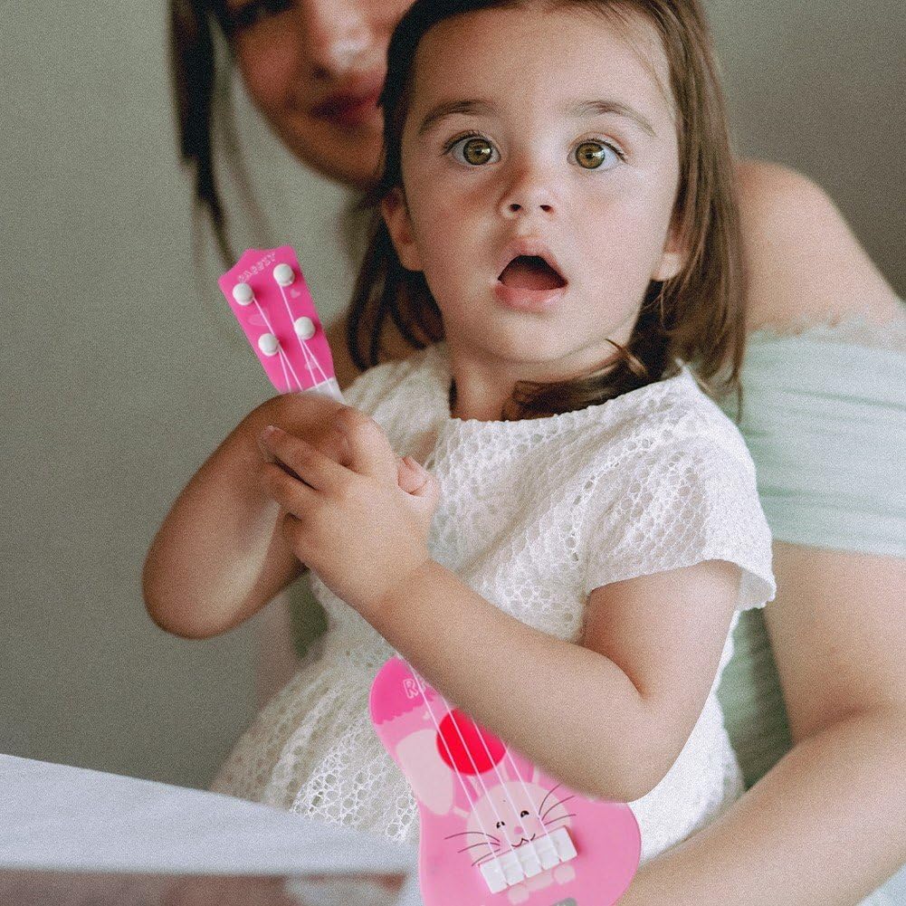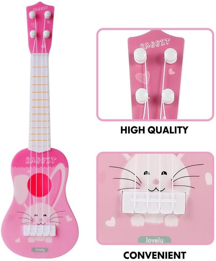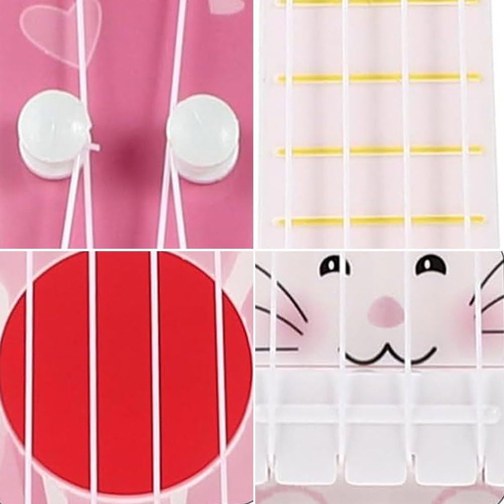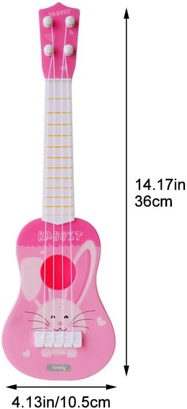 Alta qualità: nostra chitarra giocattolo è realizzata con materiali ABS di alta qualità, questa chitarra giocattolo per ukulele è resistente, durevole e sicura per l'uso parte del bambino. Idea regalo: questa chitarra giocattolo con ukulele è un regalo perfetto per bambini piccoli, ragazzi e ragazze che vogliono imparare a suonare musica. Corde regolabili: il mini ukulele ha un design realistico con 4 corde regolabili, così il bambino potrà imparare a suonare diverse note, melodie e accordi. Dimensioni compatte: le dimensioni 'ukulele per bambini sono 4,13*14,17 pollici/10,5*36 cm, questo giocattolo per chitarra e ukulele è facile tenere e suonare per i più piccoli, è di piccole dimensioni e facile trasportare. Design divertente ed educativo: giocattolo per chitarra e ukulele per bambini realizzato con motivi di animali, un design divertente che aiuta i bambini a sviluppare le loro abilità musicali e loro creatività.