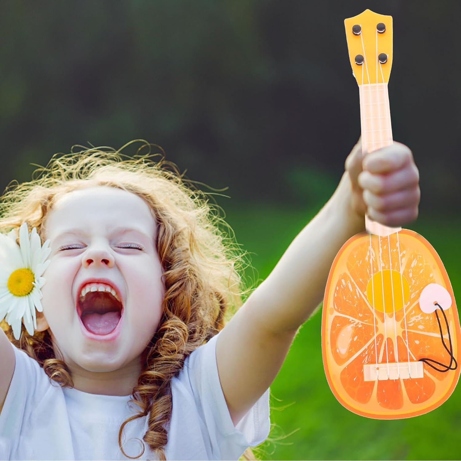 Mini chitarra giocattolo - adatta per principianti, facile da imparare e rapidamente essenziale per le feste alle Hawaii, crea un'atmosfera allegra, mini ukulele in miniatura - forma di chitarra con motivo a frutta, aggiunge un tocco di umorismo a qualsiasi decorazione della festa, piccolo giocattolo di simulazione di chitarra per ukulele - ideale per feste in spiaggia, barbecue e altri eventi, ampiamente usato nella vita di tutti i giorni per e chitarra di scena chitarra per bambini - compatto e leggero, perfetto per viaggi e attività all'aperto, offre più comfort durante il trasporto, per imitazione di chitarra Mini chitarra giocattolo - Questa chitarra di simulazione è realizzata in plastica, può essere utilizzata a lungo, è molto robusta ed è un giocattolo per chitarra