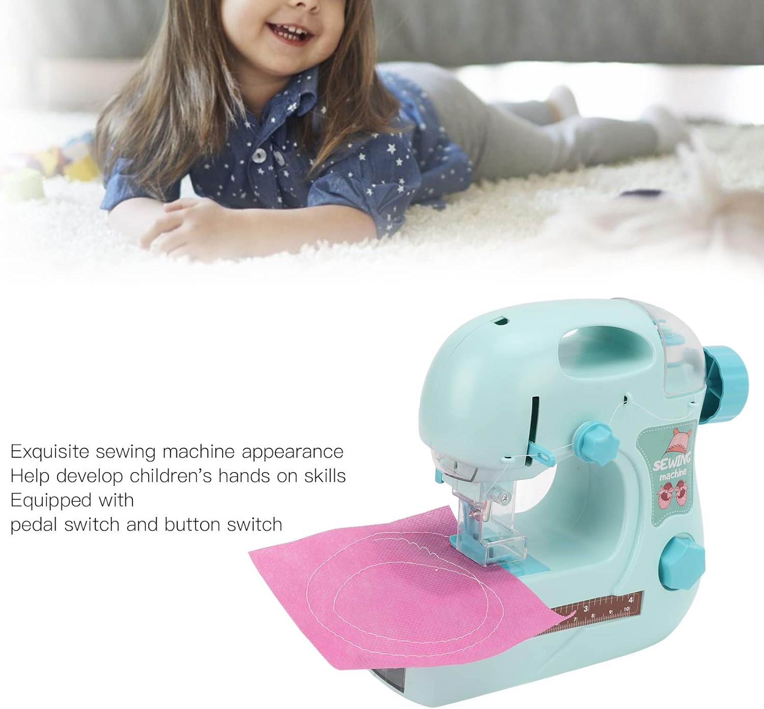 Materiale ABS: materiale per ambientale per ambientali ABS di alta qualità lo rende più resistente, resistente alla caduta e facile da operare, con buone prestazioni per una lunga durata. Articolo attraente: aspetto squisito della macchina da cucire, attirare gli occhi dei bambini, stimolare il loro interesse. Può aiutare a sviluppare le abilità per bambini, adatti alle famiglie per bambini di età superiore ai 3 anni. Giocattolo praticabile: dotato di interruttore a pedale e puttle, progettato per i principianti di nuove macchine da cucire. Esercitare le capacità cerebrali, coltivare l'interesse dei principianti, promuovere lo sviluppo intellettuale. Regalo per bambini ideali: ha una superficie liscia senza bavani, non danneggerà la pelle delicata del bambino, può essere il regalo di compleanno perfetto per i bambini per festeggiare giorni speciali. Facile da archiviare: compatto per dimensioni e luce in peso. Facile da trasportare e conservare. Può essere immagazzinato in camera da letto, soggiorno, dormitorio e altri luoghi da usare, per circostanze impreviste.