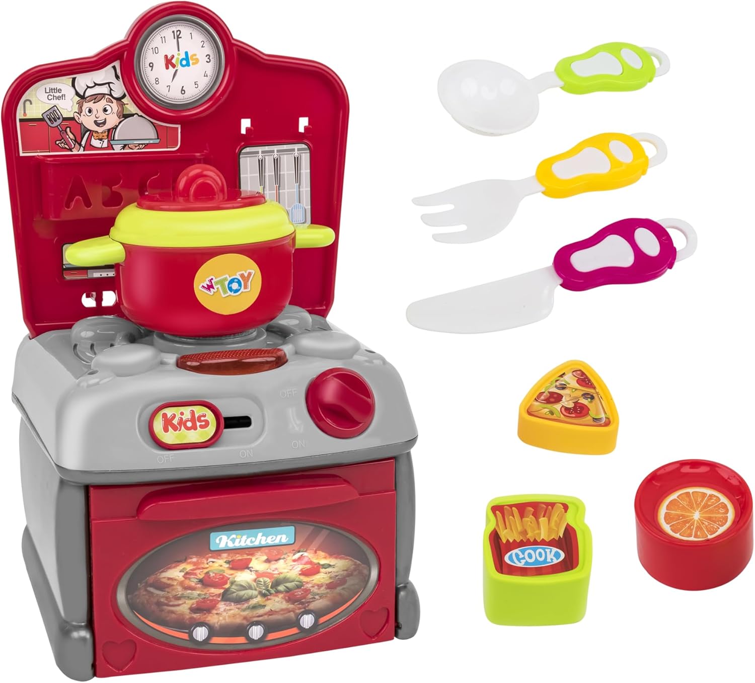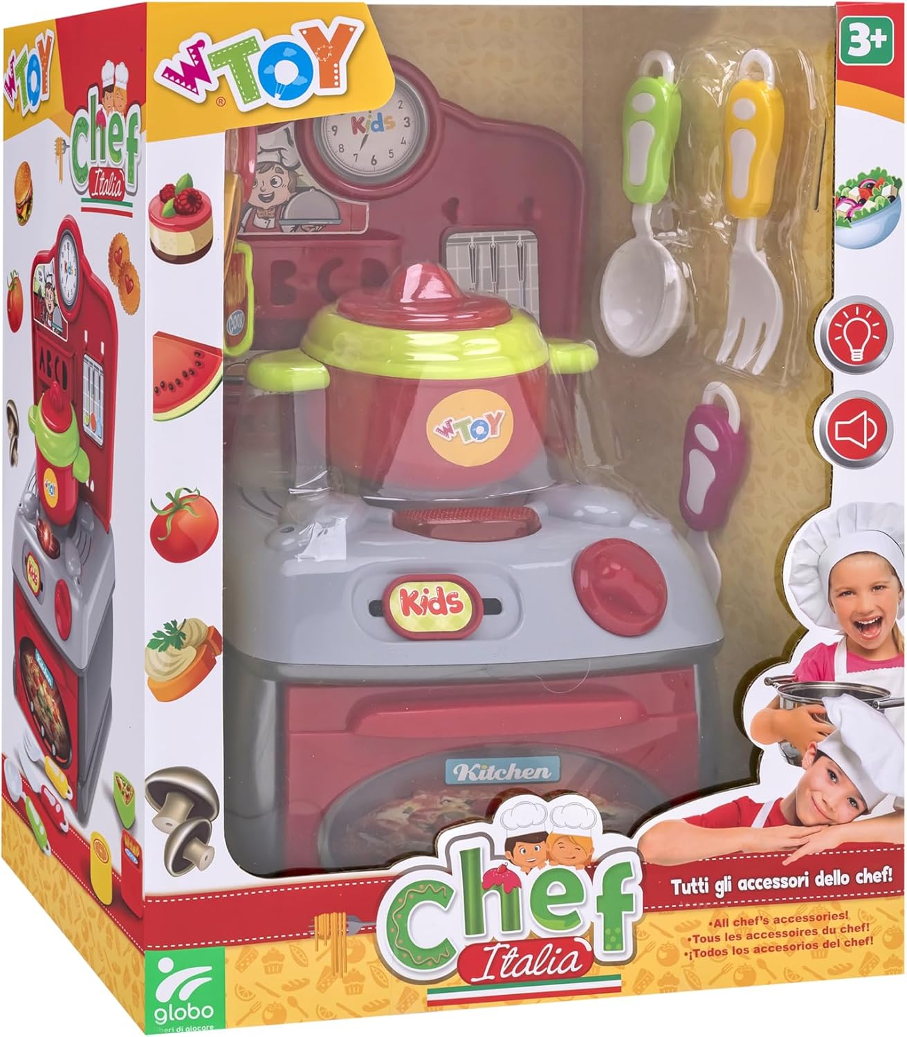 Mini cucina giocattolo dotata di suoni e luci realistici Inclusi accessori e stoviglie per completare l'esperienza Funzionante a batterie Sportello del forno apribile Gioco di imitazione ideale per sviluppare creatività e immaginazione