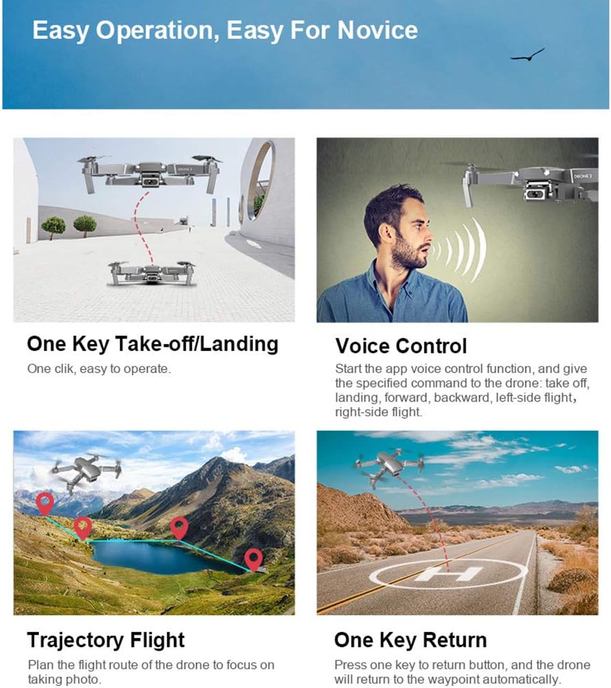 1. Prestazioni dell'immagine eccezionali, crescente domanda di tecnologia di ripresa e qualità dell'immagine, otteniamo una migliore riproduzione dei colori e acquisiamo informazioni più dettagliate. Indipendentemente dalla produzione diretta o dalla post-produzione professionale, l'effetto è ugualmente eccellente. 3. Telecomando ad alta frequenza, segnale ad alta frequenza da 2,4 GHz, forte capacità anti-interferenza distanza del telecomando di 150 metri, feedback dell'immagine ad alta definizione. 4. Potente sistema di resistenza al vento, la fusoliera aerodinamica riduce notevolmente la resistenza durante il volo a tutta velocità, creando un'esperienza di volo fluida e sicura. 5. Controllo vocale intelligente, attiva il sistema di controllo vocale APP e pronuncia i comandi linguistici designati sul dispositivo: decollo, discesa, volo avanti, volo inverso, volo sinistro, destro. Un tasto di decollo/giù può essere un tasto di decollo/giù, operazione semplice