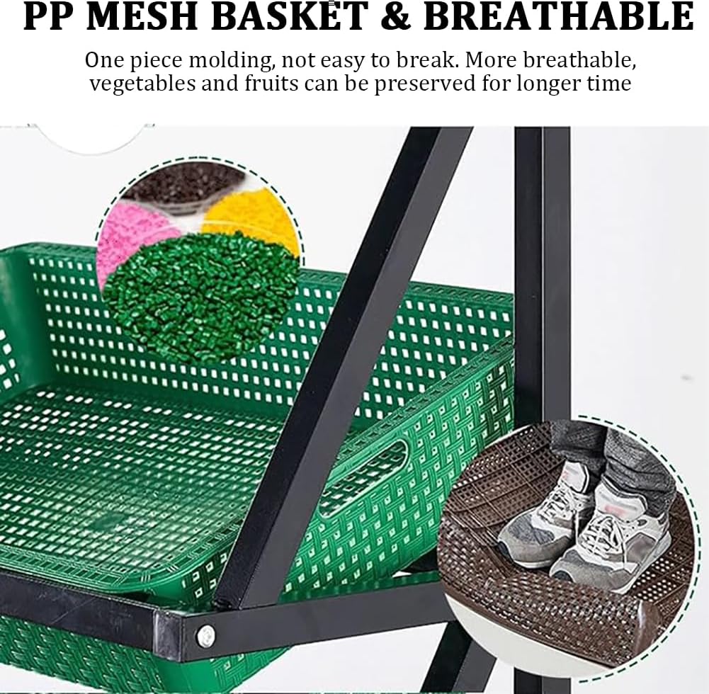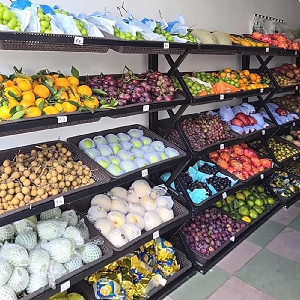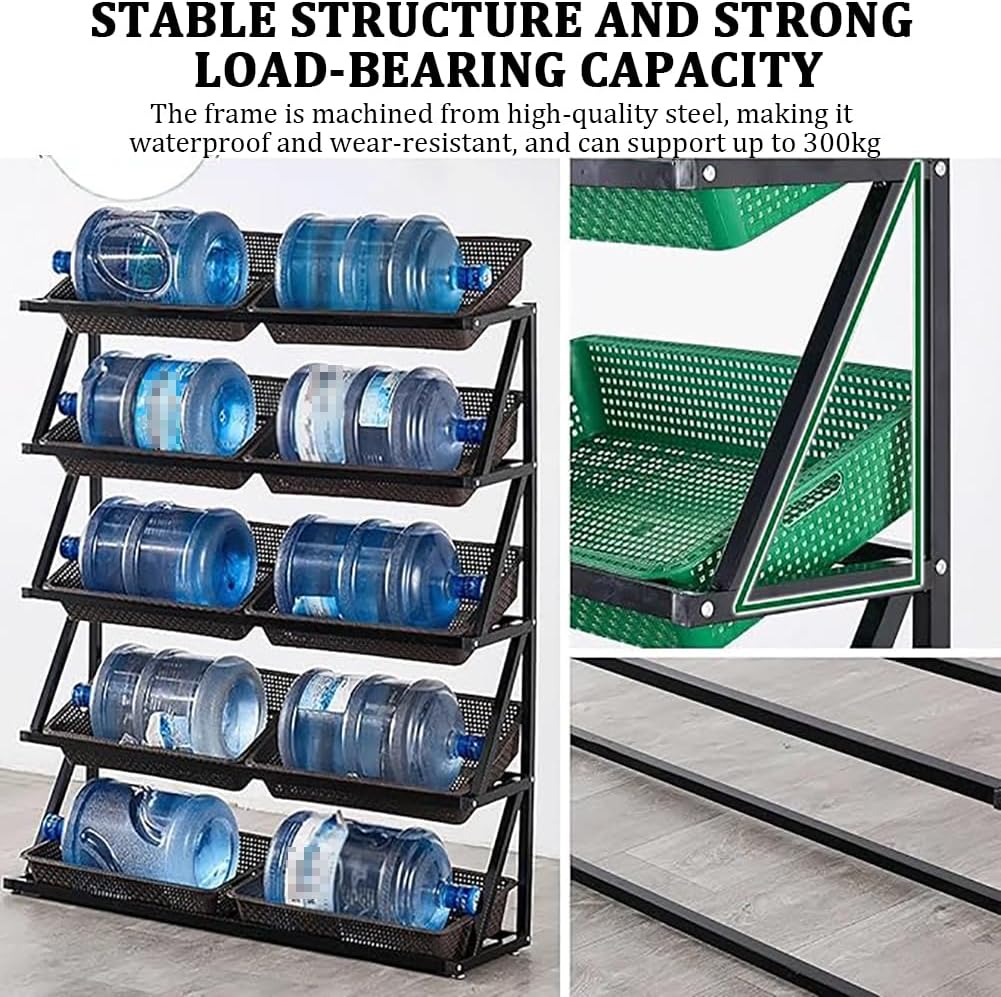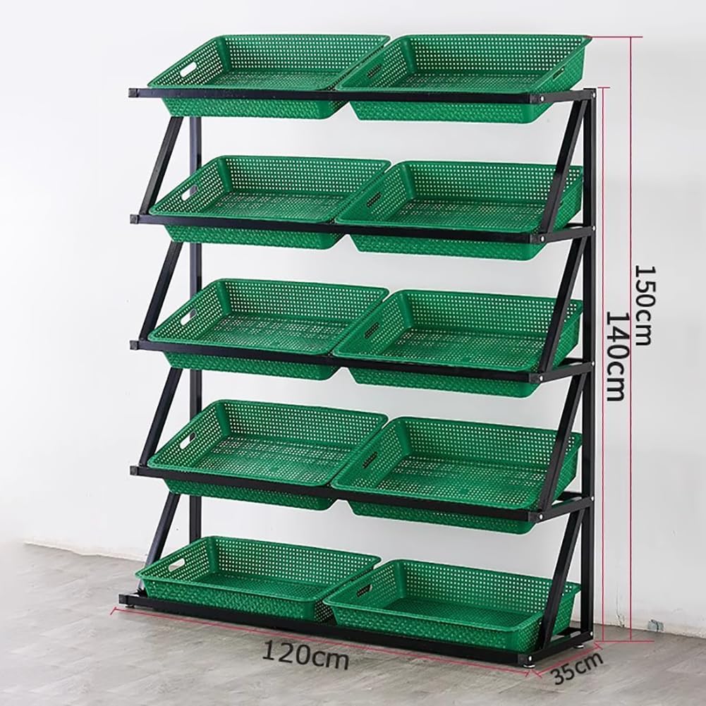 Ampio spazio di archiviazione: i portaverdure a livello singolo e doppio sono dotati di 5 e 10 cestelli grandi, che semplificano l'organizzazione di frutta, verdura, giocattoli, libri, snack e altro, creando uno spazio ordinato e organizzato che delizia i tuoi clienti. Costruzione in acciaio robusta e affidabile: gli scaffali e gli espositori del supermercato sono realizzati in acciaio resistente, che li rende resistenti alle deformazioni e alle crepe dovute all'uso quotidiano.La superficie verniciata è resistente ai graffi e all'usura.Ogni cestello può sostenere fino a 30 kg, garantendo stabilità ed evitando il ribaltamento. Design di archiviazione aperto: il design aperto dei cestini angolari consente ai clienti di vedere facilmente gli articoli e selezionarli e posizionarli facilmente.Il design del cestello cavo e la spaziatura elevata tra i ripiani offrono una maggiore visibilità per verdura, frutta e altro ancora. Attenzione ai dettagli: il nostro espositore per snack è dotato di tubi ispessiti per un'elevata capacità di carico, una finitura in vernice resistente e un robusto design meccanico triangolare per una struttura stabile.Il fondo rinforzato e antiscivolo offre una vestibilità sicura e resistente alla roccia. Scatola portaoggetti multifunzionale: questa scatola portaoggetti per cesto di frutta può essere utilizzata per conservare non solo frutta e verdura, ma anche snack, asciugamani e giocattoli.Perfetto per la cucina, il bagno, la lavanderia o ovunque tu abbia bisogno di organizzazione.