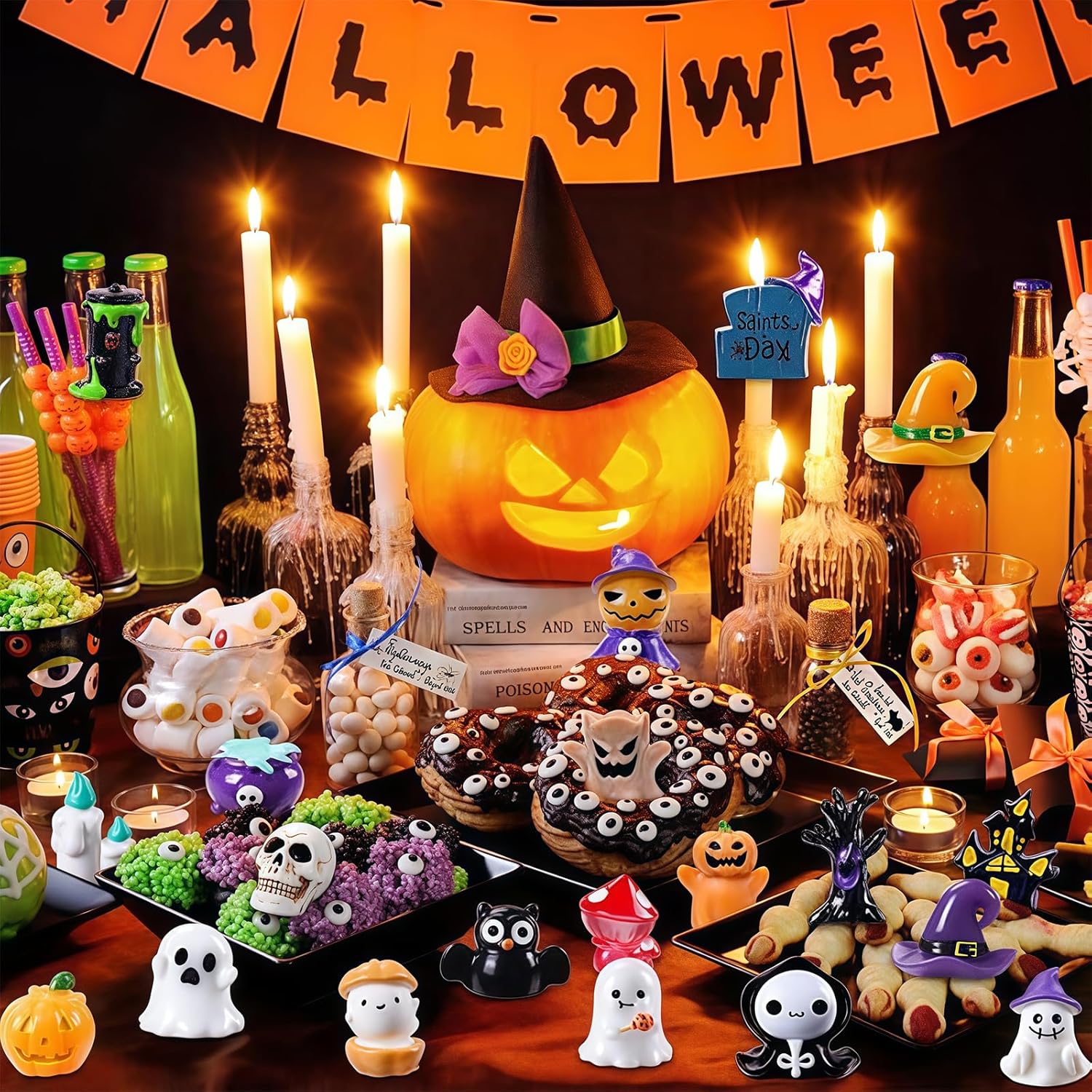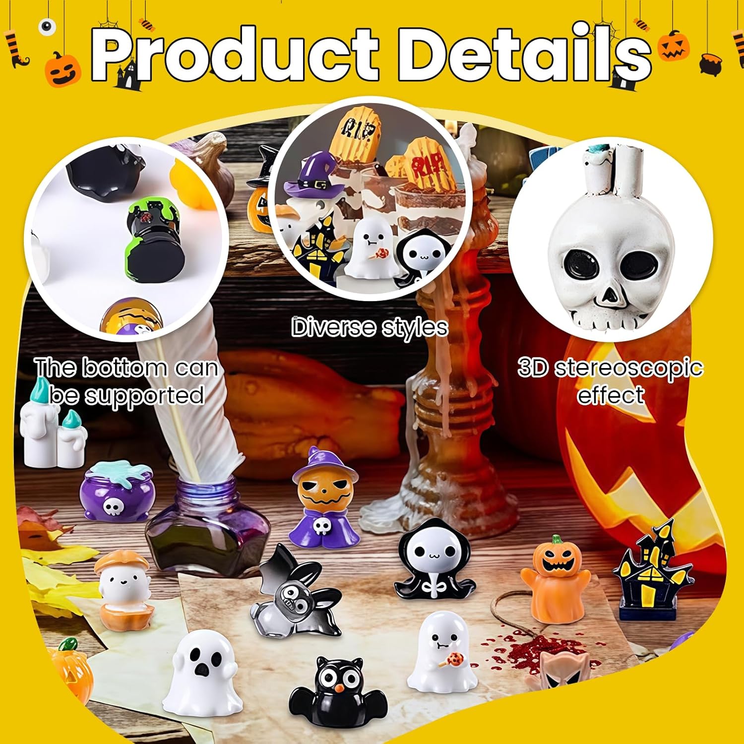 Pacchetto varietà spettrale: questo set include 32 mini figurine di Halloween in resina dal design unico, con fantasmi impilabili, teschi, zucche e altro ancora. Queste decorazioni di Halloween in miniatura offrono infinite possibilità per creare un'atmosfera spettrale, perfetta per Halloween, bomboniere o progetti fai-da-te. Disegni carini e inquietanti: ogni statuetta di fantasma in resina è realizzata con cura con dettagli intricati, aggiungendo un tocco di spettrale fantasma di Halloween alla tua casa o al tuo giardino. Queste mini figurine di fantasmi in resina sono ideali per decorare case delle bambole a tema Halloween, giardini in miniatura, scrivanie o cupcake. MATERIALE PREMIUM: Realizzate in resina resistente, queste mini statuette di Halloween in resina sono impermeabili, resistenti allo sbiadimento e costruite per durare. La finitura liscia garantisce una facile pulizia, rendendoli perfetti per uso interno ed esterno come parte della tua collezione di decorazioni di Halloween in miniatura. Uso decorativo versatile: queste mini figurine di fantasmi in resina possono essere posizionate ovunque tu voglia, sugli scaffali, in piante in vaso, terrari o anche come parte della tua tavola di Halloween. Le loro dimensioni compatte li rendono ideali per aggiungere un tocco spettrale a qualsiasi spazio o occasione. Regalo perfetto per Halloween: questo set di 32 mini figurine di Halloween in resina è un regalo premuroso e creativo per gli amanti di Halloween, i collezionisti di miniature o chiunque ami gli spettrali decorazioni di Halloween con fantasmi. Ottimo per borse da festa, premi di classe o come sorpresa per amici e parenti.
