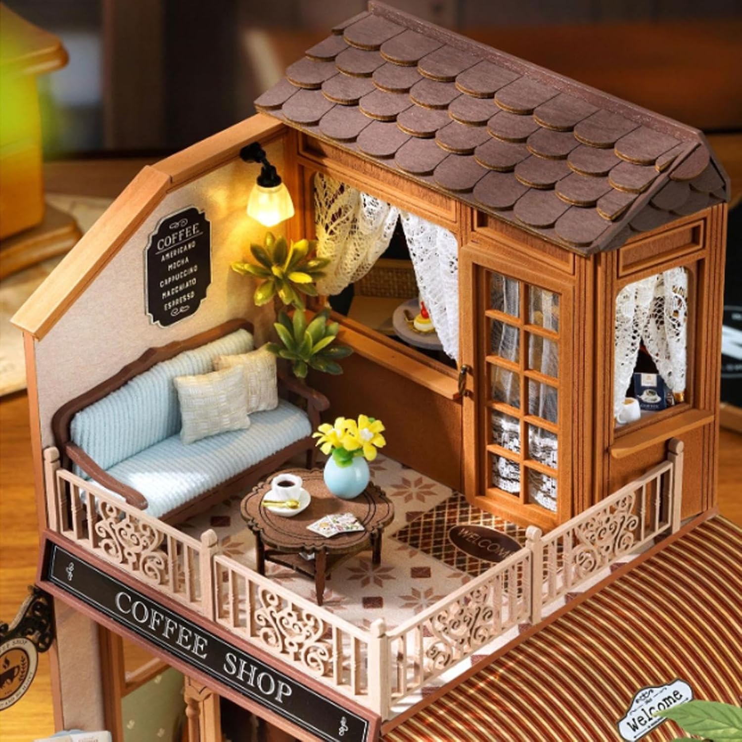 Kit modello equipaggiato: il kit in miniatura di Tiny House Booking Decor è dotato di una serie di componenti di materiale naturale per garantire un'attività coinvolgente che promuove lo sviluppo delle abilità e promuove interazioni familiari significative durante i fine settimana o le vacanze rilassanti Mostra la tua collezione: kit casa in miniatura Il kit per casa delle bambole in miniatura include una custodia protettiva trasparente che previene l'accumulo di polvere, dettagli di colore per una mostra collettiva di lunga durata e migliora l'arredamento della casa con la sua presentazione elegante in qualsiasi spazio abitativo Caratteristiche del design premuroso: Mini Doll House Questo kit Mini House Building promuove la coltivazione della pazienza attraverso compiti di adattamento, fornisce una guida chiara per l'accessibilità in tutte le età e il miglioramento del ragionamento spaziale in un ambiente pratico edificio Esperienza artigianale modernizzata: kit fai da te in miniatura kit di casa per adulti eliminano la necessità di accessori aggiuntivi in quanto contengono strumenti adesivi e parti pretagliate che consentono agli appassionati di costruirsi nella costruzione di disegni intricati attraverso un processo creativo accattivante perfetto per l'avversione dopo il lavoro Atmosfera accogliente: kit in miniatura progettato con precisione, questo piccolo kit da casa trasmette un'atmosfera stretta e accogliente, soddisfa i desideri degli amanti dell'artigianato e funge da regalo perfetto per celebrazioni speciali o progetti personali