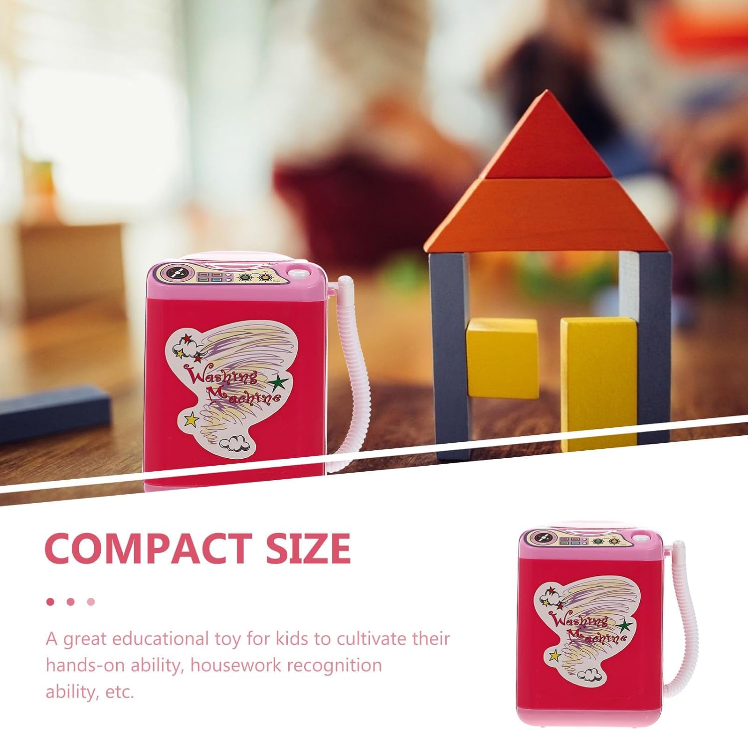 Materiale plastico: realizzata in plastica robusta, questa finta lavatrice è progettata per resistere a un uso frequente, garantendo divertimento ai bambini durante il loro tempo libero. Dimensioni compatte e portatili: misurando circa 4,33 x 2,99 x 2,99 pollici, questa piccola lavatrice è leggera e facile da trasportare, il che la rende ideale per interni che per Utilizzo versatile per gli strumenti del trucco: non solo un giocattolo, questa mini lavatrice può essere utilizzata anche per pulire i pennelli per il trucco e altri oggetti, offrendo una soluzione divertente e pratica per gli amanti della bellezza Design divertente e interattivo: questa mini lavatrice giocattolo è progettata per offrire ai bambini un divertimento senza fine, consentendo loro di divertirsi giocando di finzione e imparando le abilità di base. Perfetto per giochi di ruolo e attività fantasiose. Perfetto per i bambini: questo giocattolo rosa a forma di lavatrice è perfetto per i bambini, incoraggia la creatività e le capacità di gioco di ruolo, tenendoli intrattenuti per ore.