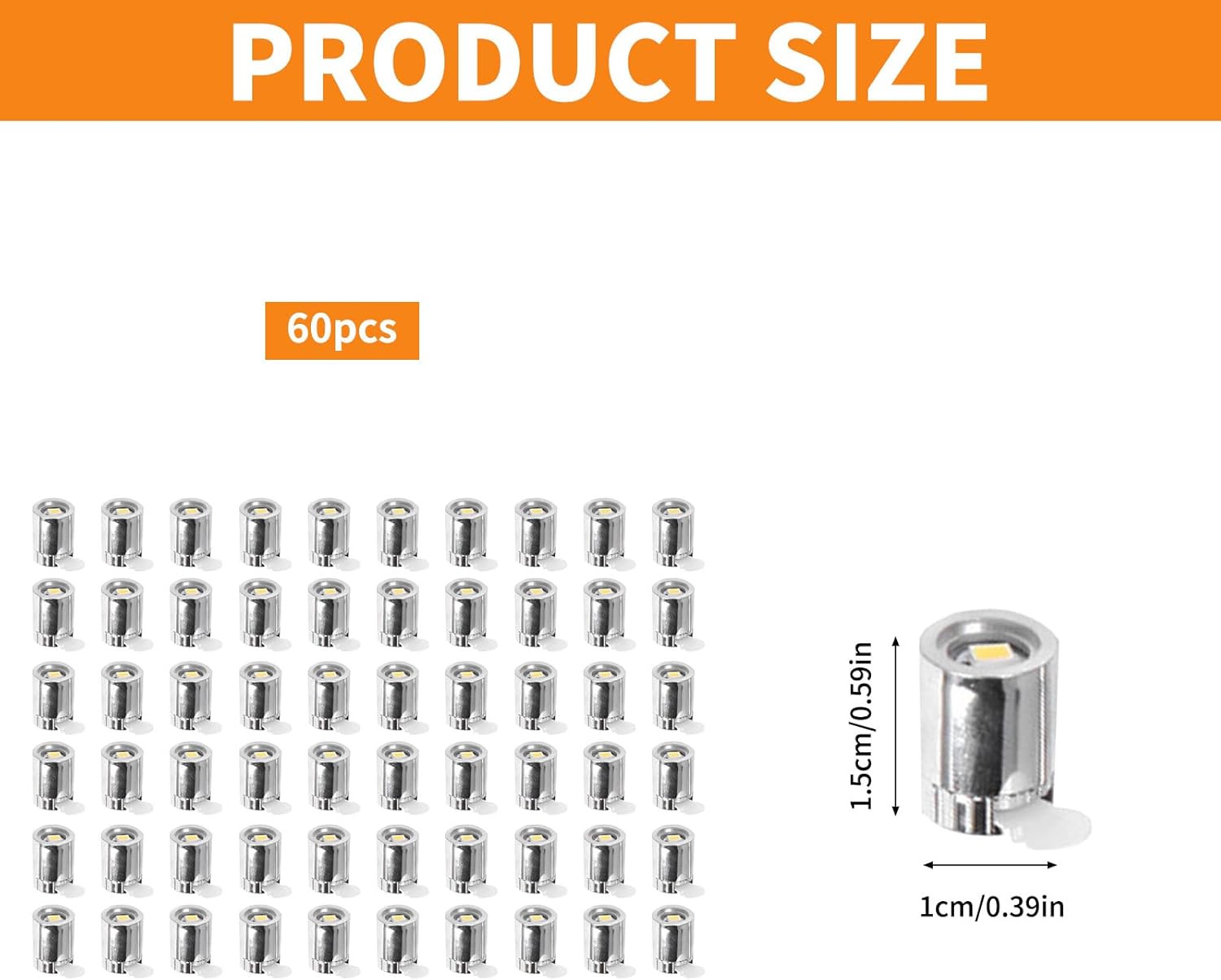 Mini luci LED: riceverai 60 mini luci elettriche. Misurano circa 1,5 cm x 1 cm. Sono disponibili due stili: caldo e colorato. Mini luci LED per mattoncini e blocchi giocattolo per case delle bambole. Sono così piccole e carine, perfette per decorare case delle bambole e altri lavoretti Micro Luci LED: Le nostre luci LED sono di buona qualità; il guscio esterno è in plastica e la luce è di alta qualità. Prima di aprirle, rimuovere la parte in plastica che protegge la batteria dallo scaricamento. Le nostre mini luci LED sono adatte per mini progetti creativi, costruzione di scenografie, costruzione di case giocattolo e progetti fai da te, ecc Design del Prodotto: Le nostre mini luci LED sono piccole e raffinate, con un aspetto grazioso, e il guscio argentato semplice e versatile può decorare oggetti. Non hanno pulsanti o cursori. Basta stringere il tappo e allentarlo per aprirlo o chiuderlo facilmente durante l'uso Caratteristiche Principali del Prodotto: Le mini luci elettriche sono piccole e luminose, resistenti e hanno una lunga durata. Sono facili da trasportare e possono essere utilizzate ripetutamente. Le mini luci sono alimentate da tre batterie AG3 (non incluse). Altri tipi di batterie compatibili: LR41, 384, 392 Ampie Applicazioni: Le nostre mini luci a LED sono adatte a molte occasioni. Possono essere utilizzate per decorare lanterne di carta, palloncini, ecc. Sono adatte anche per decorare la vostra stanza, feste, mini lavoretti, mini costruzioni sceniche, mattoncini, blocchi giocattolo e altri lavoretti