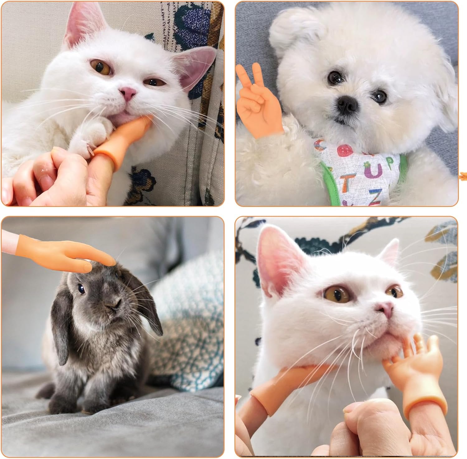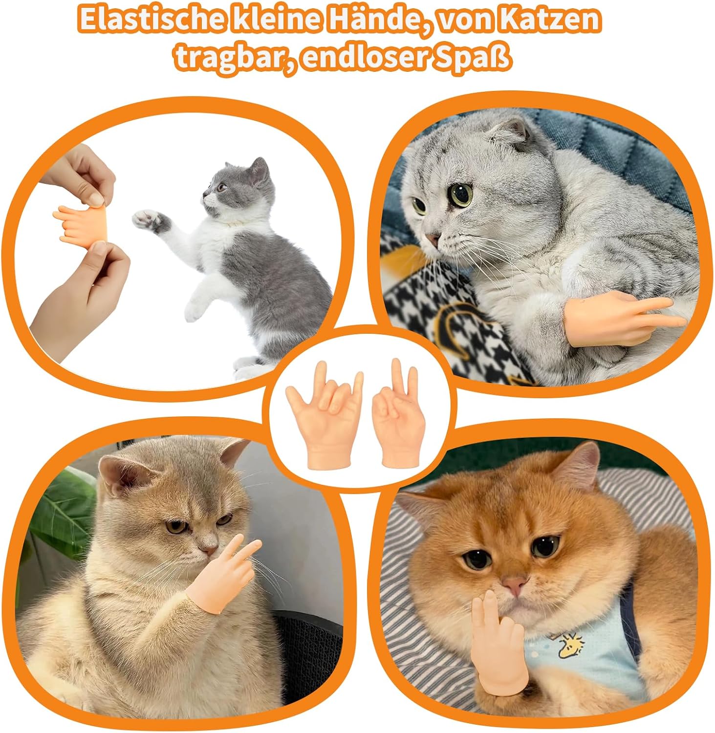 [Materiale in vinile morbido] Questo set di mini marionette da dito è realizzato in morbida gomma con bordi arrotondati e senza punte taglienti, quindi non farà male a te o al tuo gatto. È perfetto per giocare e abbastanza robusto da resistere alla masticazione e ai graffi del tuo gatto. [Varie forme] Il set di mini mani comprende 2 mani a forma di V, 2 mani sinistre, 2 mani destre, 2 pugni, 2 gesti OK, 2 medi, 2 indici, 1 mano a forbice e 1 mano con gesto "521", per un totale di 16 pezzi, rendendolo perfetto per tutti i tipi di dimostrazioni delle dita per tutti. [Design divertente e creativo] Queste mini mani presentano una selezione unica e stravagante di gesti delle mani che aggiungono un tocco giocoso e divertente. I diversi design attirano facilmente l'attenzione del tuo gatto, migliorano l'interazione tra te e il tuo animale domestico e rendono il gioco più divertente. [Facile da usare] Queste manine sono progettate per adattarsi alle dita (indice, medio, anulare e mignolo). Le mani a forbice e con gesto "521" hanno un design elastico in modo da adattarsi comodamente alle zampe del tuo gatto, rendendo l'esperienza di gioco ancora più divertente. [Versatile] Indossa questa mini mano sulle mani per interagire giocosamente con il tuo gatto, perfetta per giochi e sessioni di allenamento. Possono essere utilizzati anche per spettacoli con le dita, giochi di ruolo, scenette comiche, spettacoli con effetti speciali, scherzi e altro ancora.