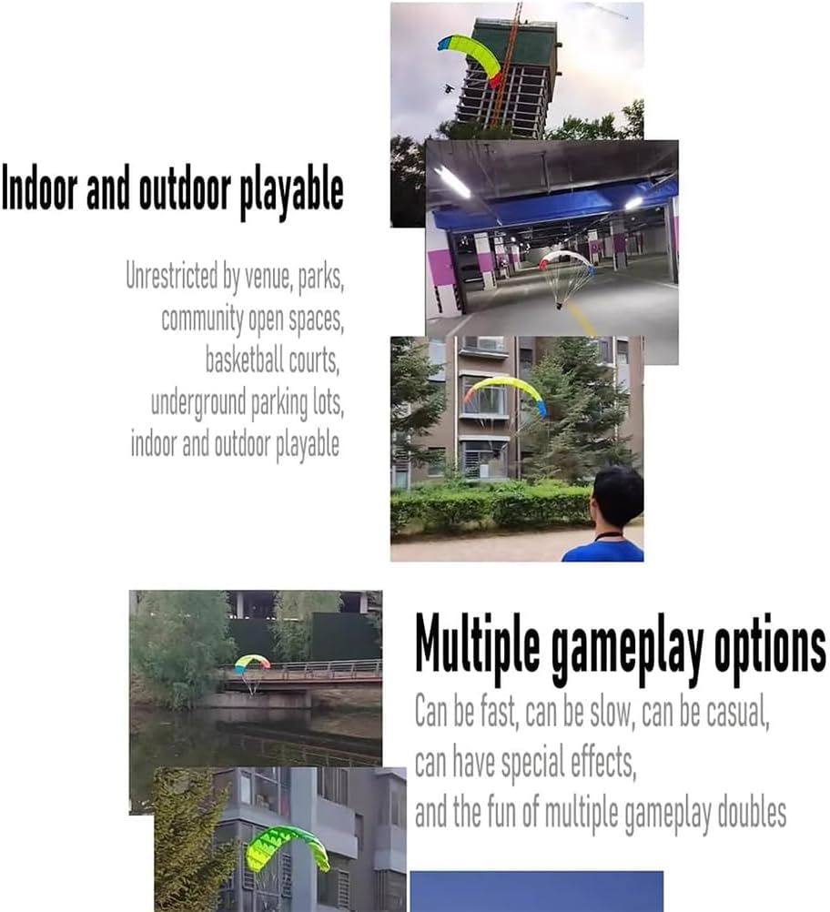 Lunga durata: con un tempo di volo esteso di 30 minuti e un sistema di alimentazione ottimizzato, questo parapendio assicura un divertimento aereo di lunga durata Tecnologia di stabilizzazione avanzata: Il sistema di stabilizzazione incorporato mantiene un volo regolare e controllato anche in condizioni di vento leggero, perfetto sia per i principianti che per i più esperti Ultra-leggero e resistente: Realizzato in materiale di nylon di prima qualità, questo parapendio è allo stesso tempo leggero per una manovrabilità senza sforzo e sufficientemente robusto per resistere all'uso ripetuto Telecomando multicanale 2.4G: Supporta il funzionamento senza interferenze con più utenti, consentendo emozionanti sessioni di volo di gruppo in parchi, piste o campi aperti Design pieghevole e portatile: La struttura alare pieghevole rende facile il trasporto e lo stoccaggio, ideale per i viaggi e le avventure all'aperto.