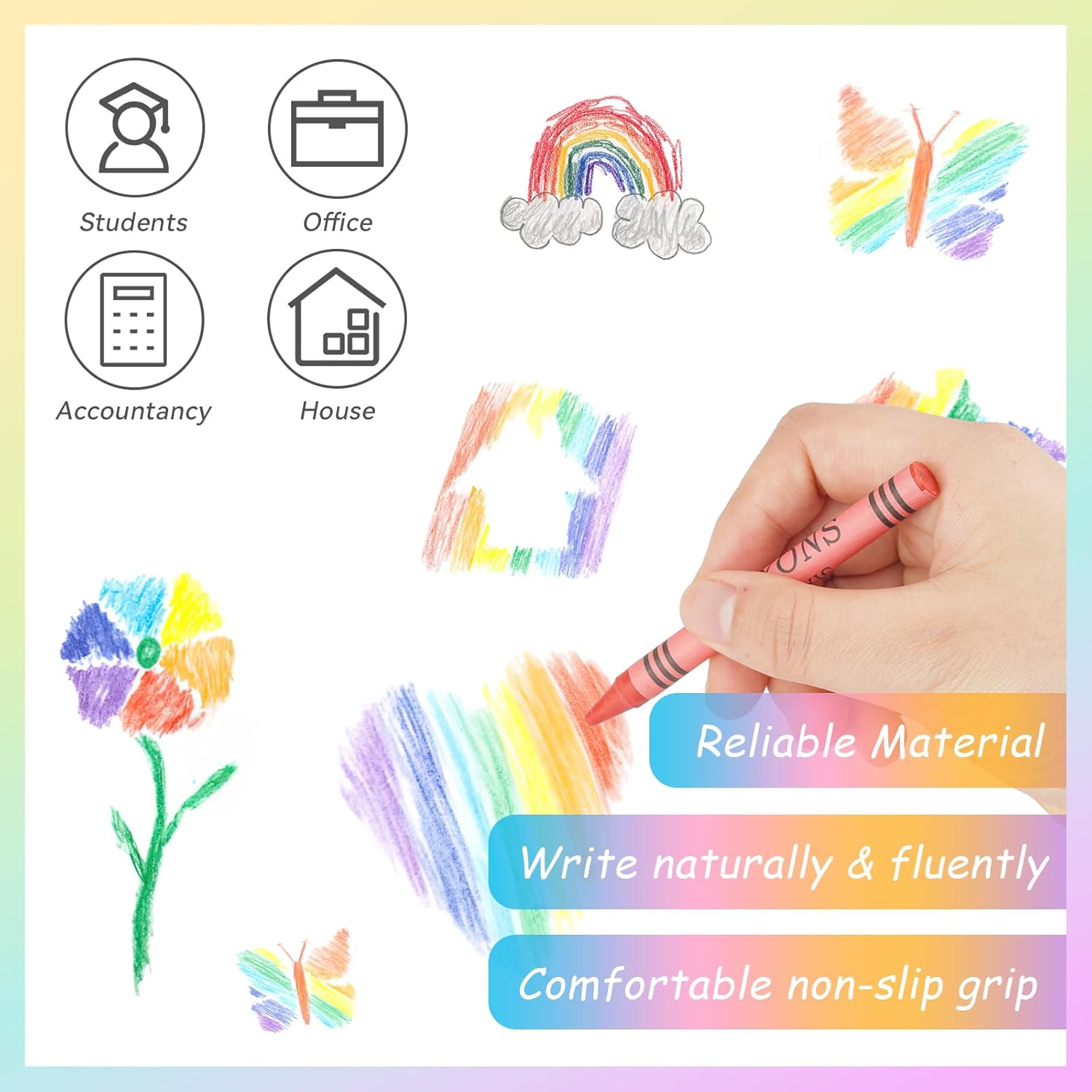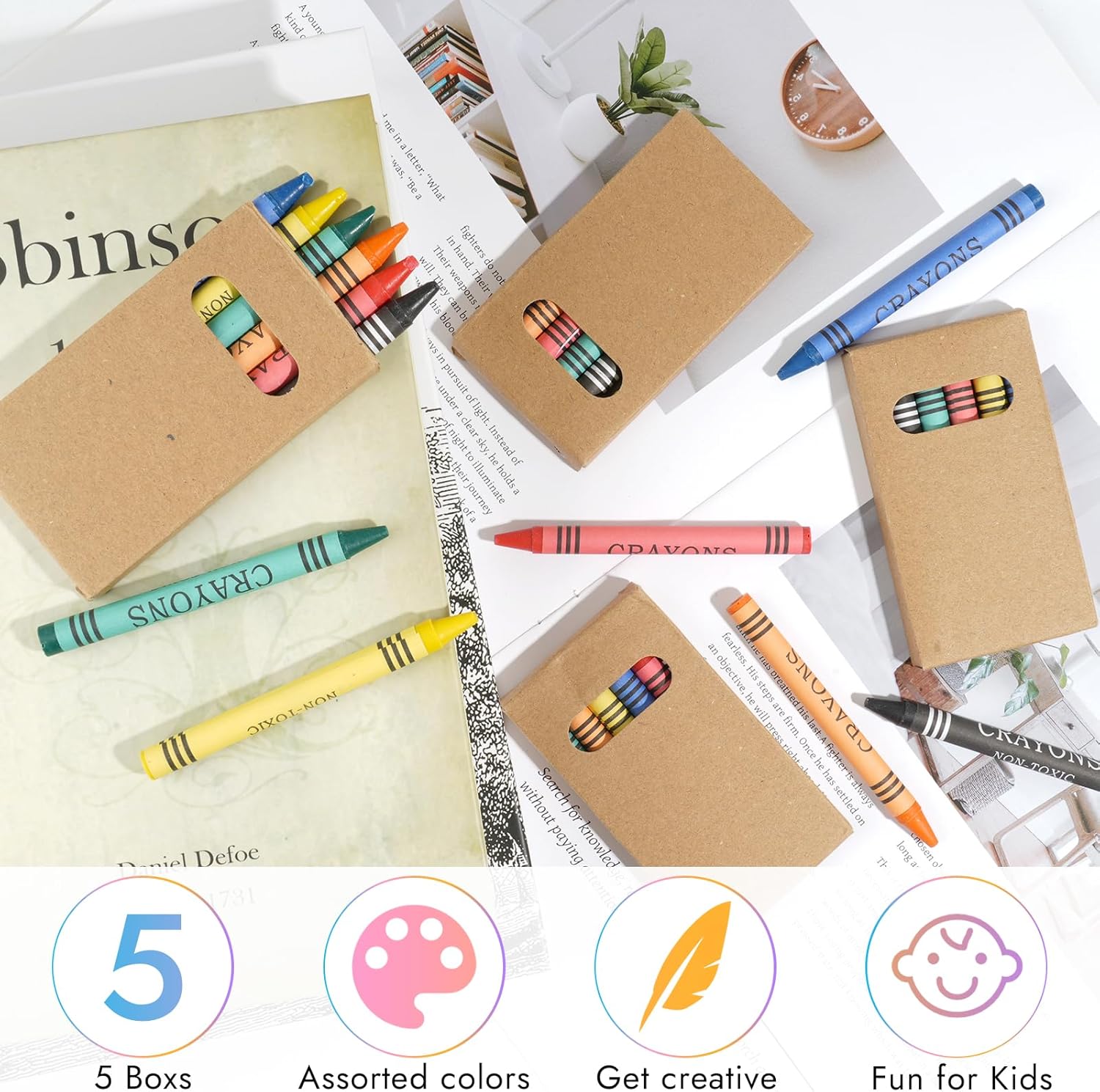Set di 5 pastelli a cera da 6 colori: riceverete 5 set con 6 mini pastelli, 1 set ha 6 colori a scelta, per un totale di 30 pezzi. Ogni matita misura circa 8,5 cm di lunghezza e 0,7 cm di larghezza, appositamente progettata per le mani dei bambini piccoli. Una quantità abbondante può soddisfare le vostre esigenze quotidiane di uso e sostituzione. 6 colori da utilizzare: questo pastello a cera dispone di 6 diversi colori: rosso, blu, giallo, verde, nero, arancione e offre una varietà di scelte. Adatto per principianti, stimola la creatività e l'immaginazione dei bambini. Nota: se ritieni che il colore del dipinto sia troppo luminoso, puoi dipingerlo più volte per rendere il colore più scuro. Sicuri e portatili: i pastelli a cera per bambini sono realizzati in paraffina affidabile, robusto e affidabile, piacevole al tatto, non tossico e insapore, scrive senza intoppi, è facile da colorare e sicuro da usare. Inoltre, viene fornito in una scatola che facilita l'ingestione. Facile da usare: le nostre penne vengono fornite appuntite, in modo da poterle utilizzare immediatamente. È comodo da tenere in mano ed è facile da controllare. Riduce il carico sulla mano dopo lunghi schizzi e disegni. Nota: la punta della penna è pericolosa, si prega di utilizzare sotto la supervisione dei genitori. Consigliato per bambini dai tre anni. Fantastico regalo per bambini: i mini pastelli a cera sono molto adatti per i bambini. Usali per promuovere l'interesse dei bambini per la pittura. Regala matite colorate come regali in classe, compleanni o regali di festa di cui i bambini saranno felici! Suggerimento: si consiglia di utilizzarlo su carta da disegno professionale o carta bianca, in modo che il colore della mini matita colorata risulti migliore.