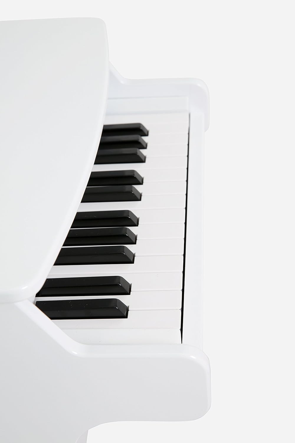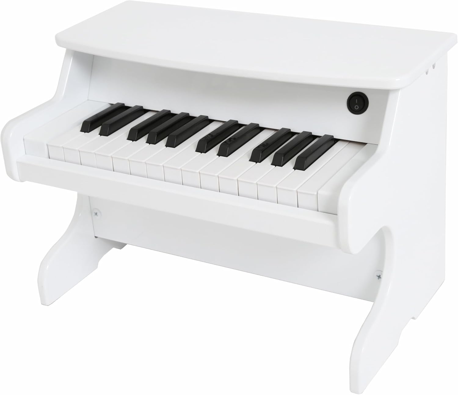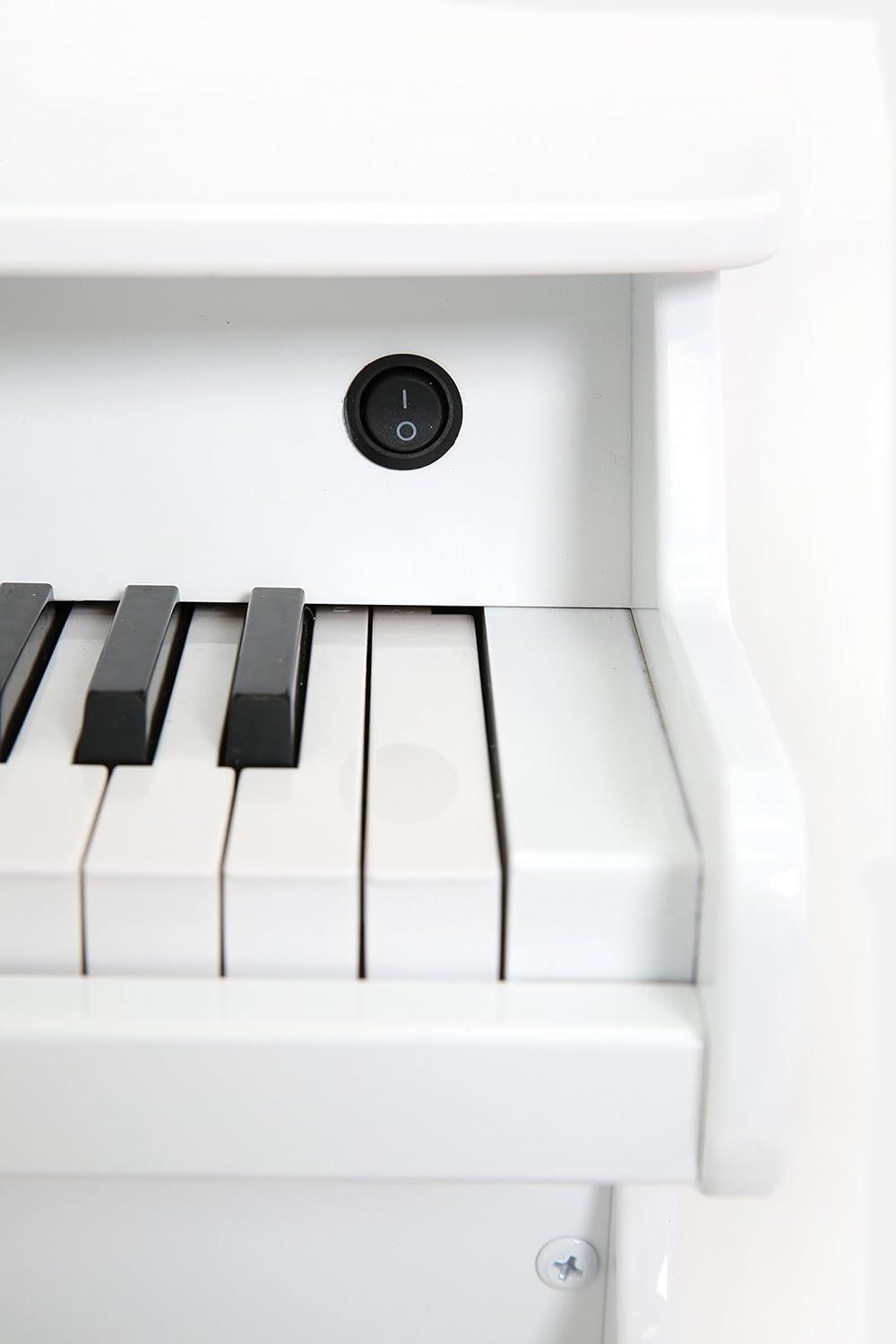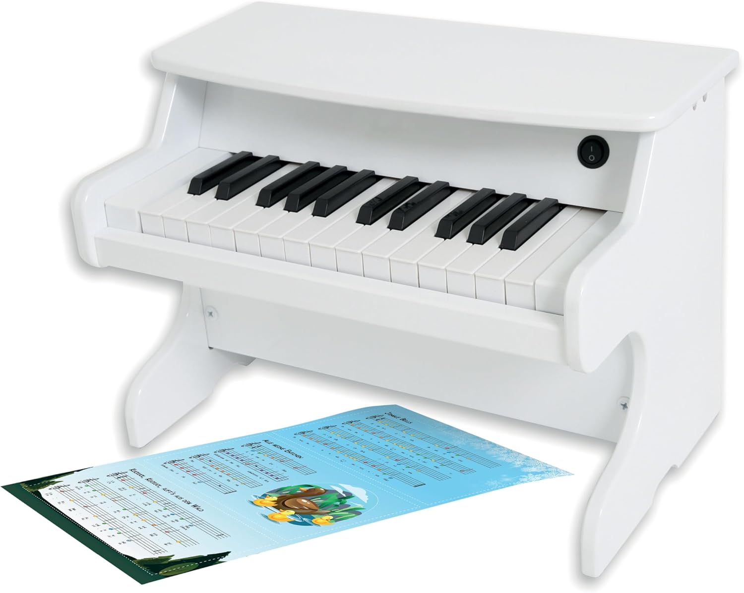 Design Compatto: Mini pianoforte a 25 tasti, ideale per principianti e piccoli amanti della musica. Facile da Suonare: Include 3 brani preinstallati facili da riprodurre per promuovere il divertimento nella musica. Note Colorate: Le tastiere sono codificate con colori per facilitare l'apprendimento e la suonabilità, specialmente per i principianti. Alimentato a Batteria: Include 4 batterie AA da 1,5 V per un utilizzo flessibile senza necessità di una fonte di alimentazione diretta. Design Elegante: Il mini pianoforte ha un elegante finitura in laminato bianco che offre un aspetto accattivante. Audio di Alta Qualità: Goditi il vero suono del pianoforte, con una struttura robusta in fibra di media densità (MDF) per una qualità durevole.