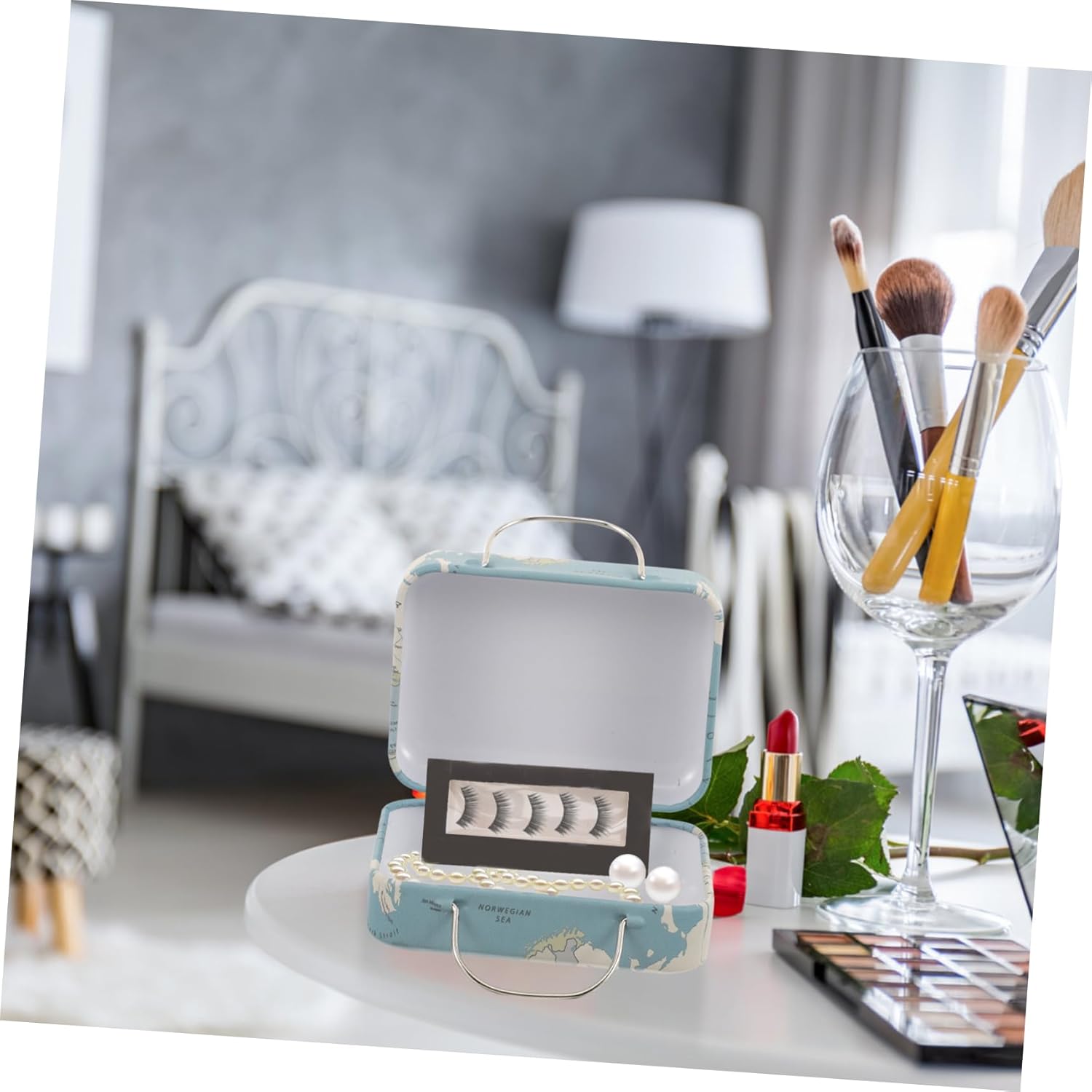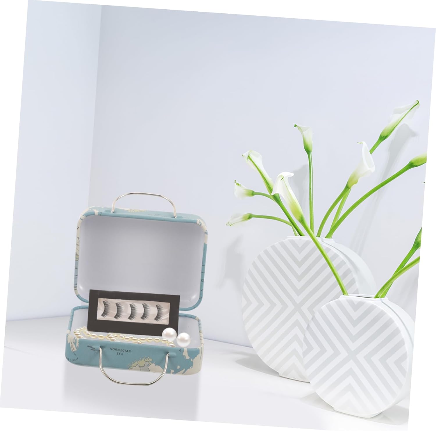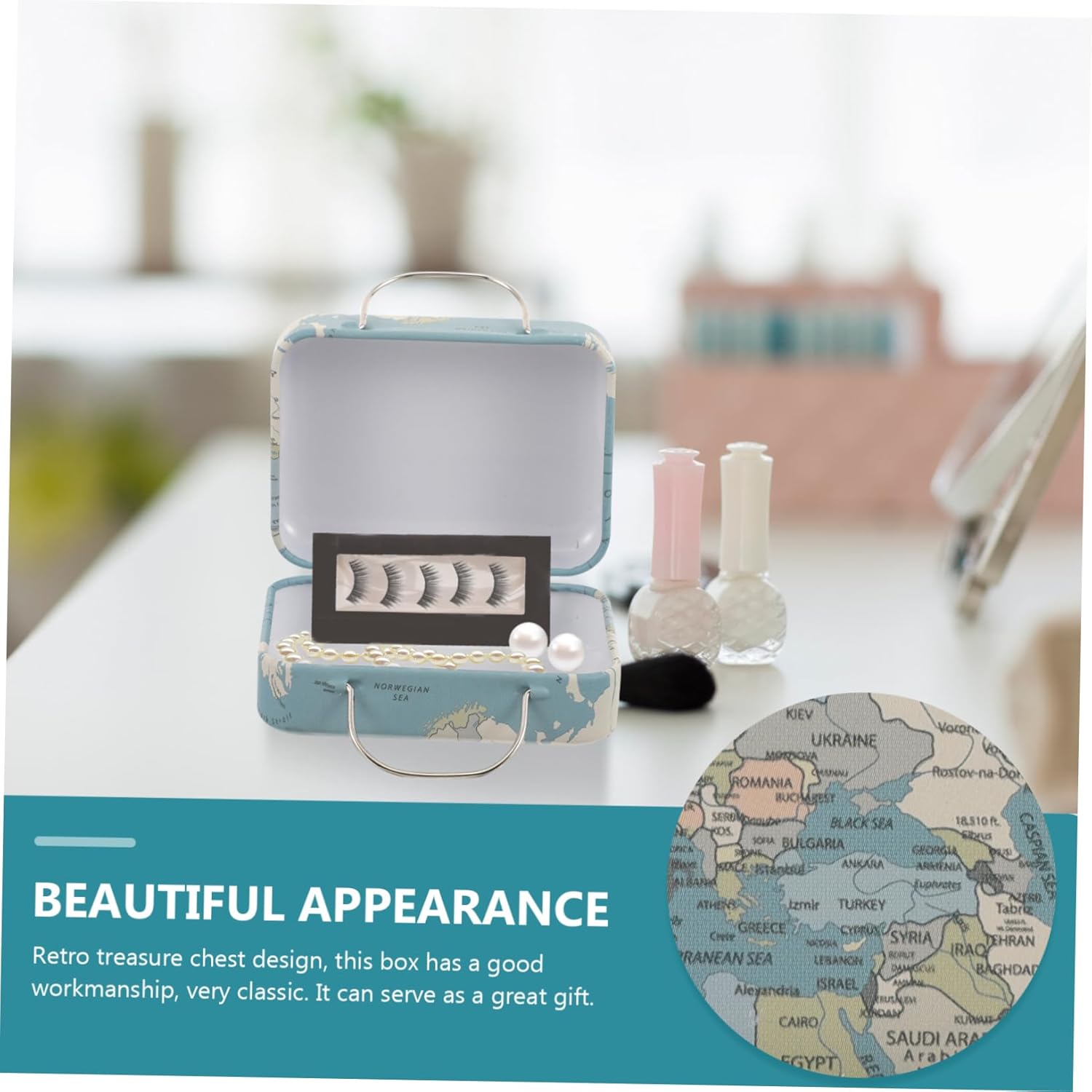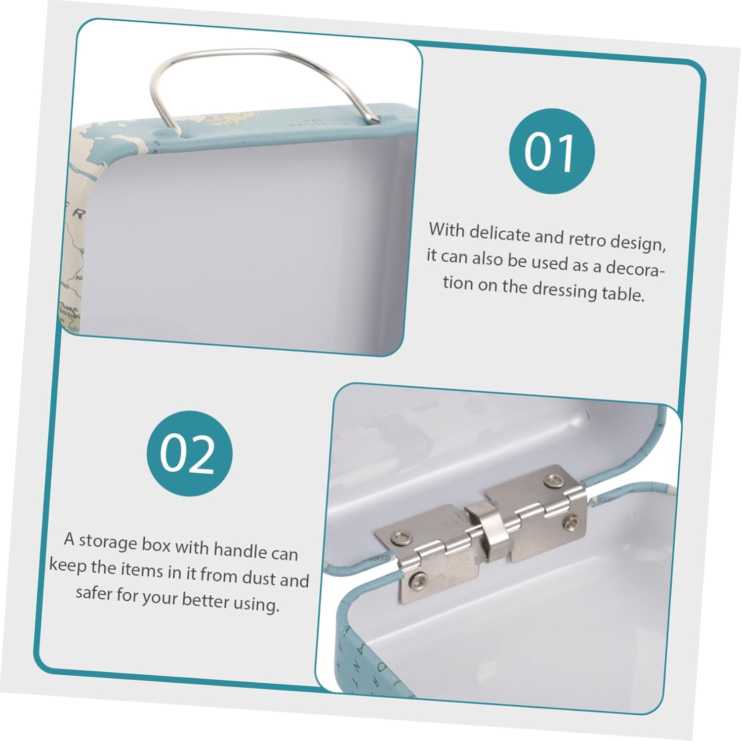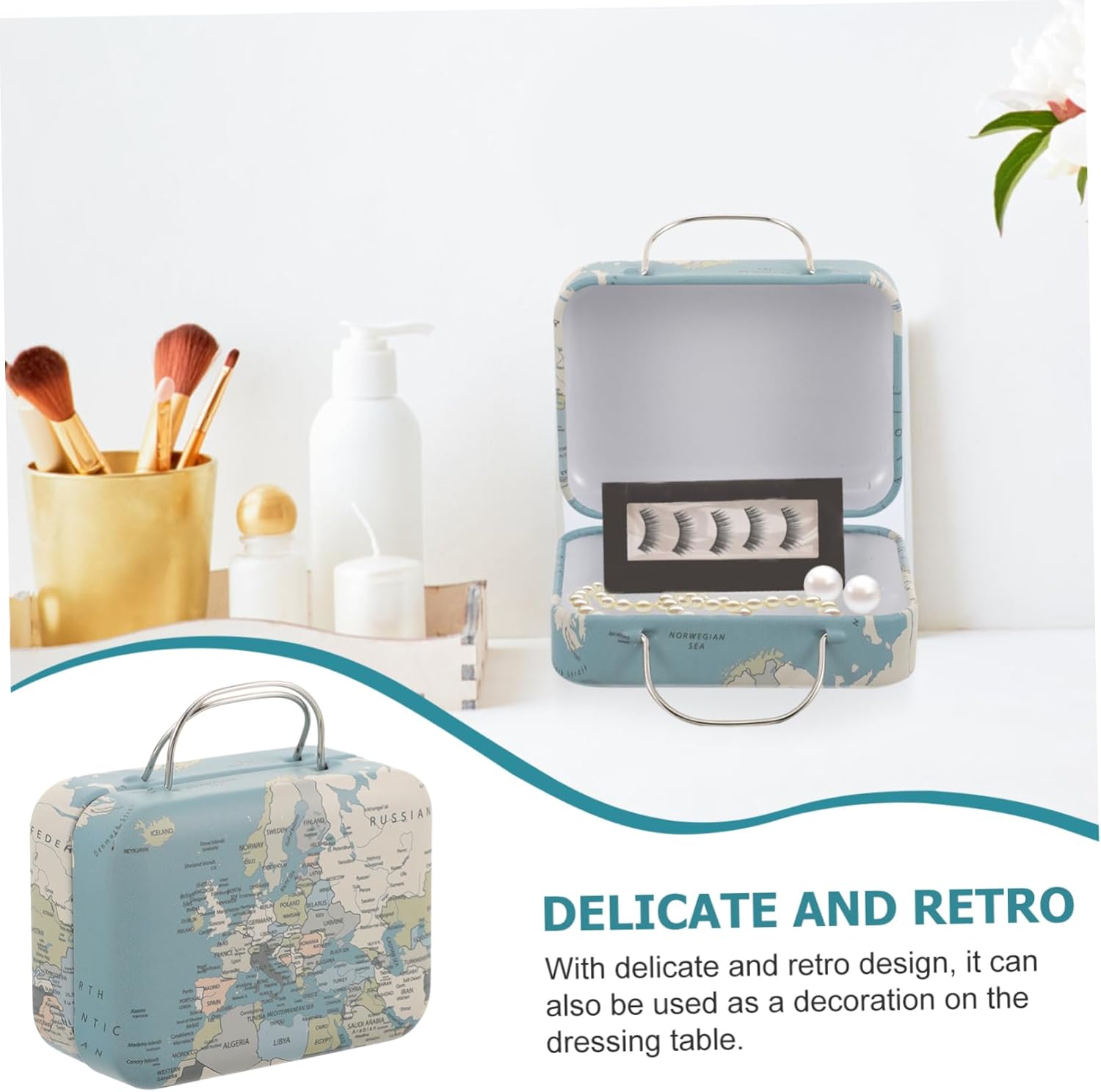Mini custodia per ciglia - può essere utilizzata per riporre piccoli libri, francobolli, monete, cartoline, foto, souvenir o altre collezioni, piccola valigia Piccola custodia da viaggio - realizzata principalmente in ferro, questo portagioielli non è facile da deformare, è leggero e può essere utilizzato a lungo, come contenitore per extension ciglia. Custodia per ciglia - con design a maniglia, comoda e facile da spostare e sollevare, consente di risparmiare lavoro e fatica, scatola porta ciglia mini valigia - con delicato design retrò, può essere utilizzata anche come decorazione sulla toeletta o come scatola per riporre ciglia finte Valigia retrò: questa scatola portaoggetti ha un design retrò e può essere posizionata sulla scrivania come decorazione, piccola valigia