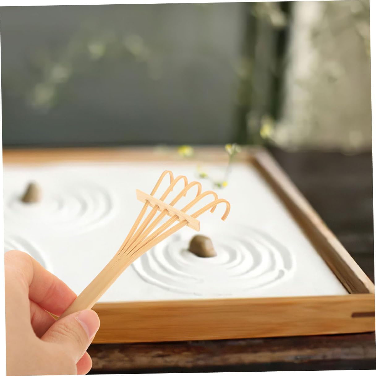 Rastrelli da giardino artigianali - Adatti a varie occasioni come casa, ufficio e studi di yoga, Rastrelli da tavolo per sabbia Rastrelli in miniatura per sabbiere - Questi piccoli rastrelli da giardino sono eleganti, durevoli, belli e pratici da usare, Attrezzi da giardino per sabbia Mini rastrelli per sabbia - Un regalo divertente per il tuo amico. I mini rastrelli per sabbiera possono essere utilizzati come decorazione da tavolo o come mini decorazione paesaggistica. Strumenti per sabbiera da giardino Mini rastrello da giardino: possono essere molto creativi, puoi regalarli ad amici e parenti a cui piace la sabbiera, piccolo rastrello da giardino Strumento per rastrello da giardino per sabbia: piccoli rastrelli decorativi possono essere utilizzati come stanza, camera da letto, studio, hall di hotel o decorazione della scrivania dell'ufficio, piccolo rastrello