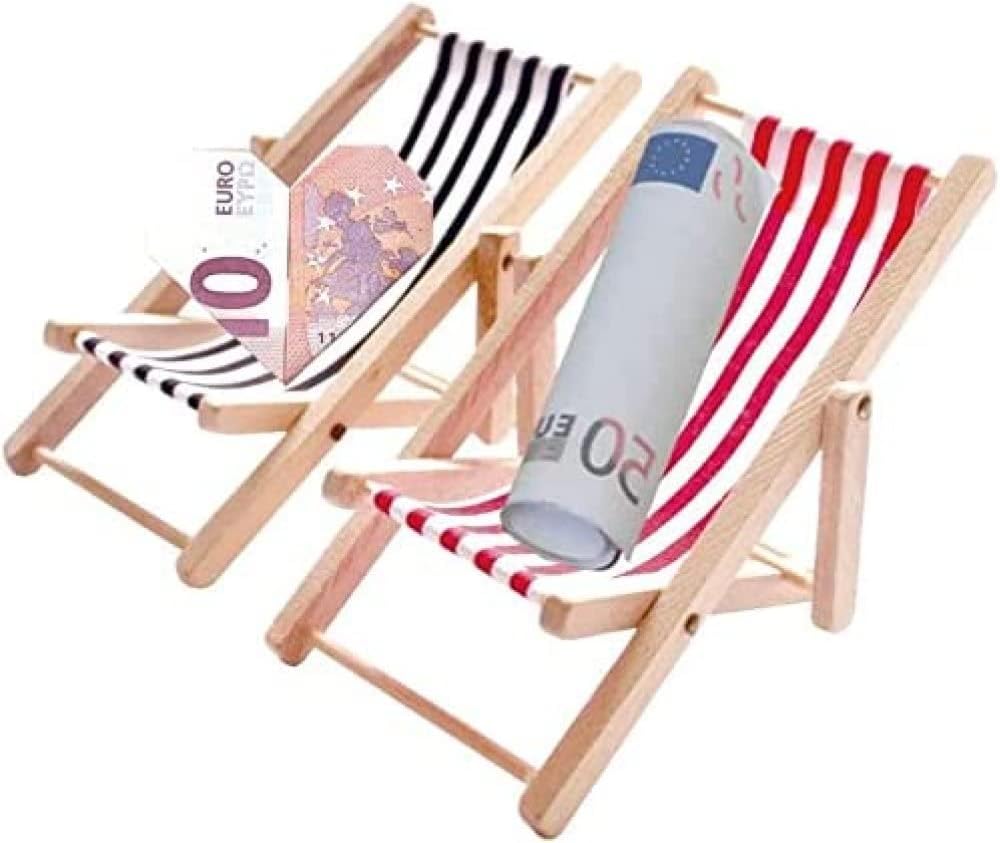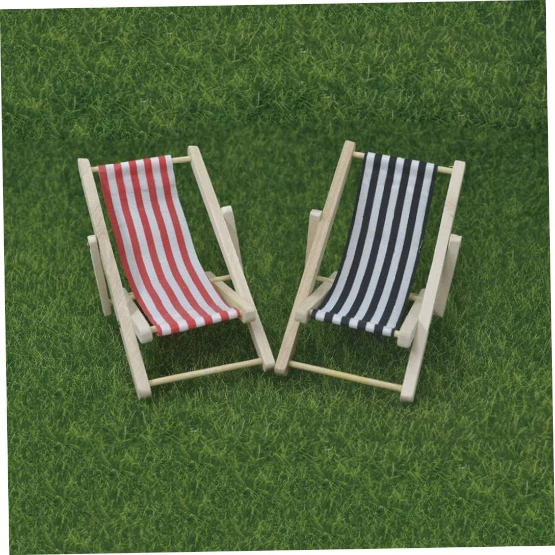 Sedia in miniatura in scala 1/12 con sedile in tela a strisce rosse e blu, adatta per chiosco da spiaggia, negozio, mare o giardino 2 pezzi essenziali per la progettazione del paesaggio estivo in micro paesaggistica..Adatto per mobili da giardino mini deco, mobili in miniatura, decorazioni vegetali, ottimo per amici e familiari Le mini sedie da spiaggia sono costituite da struttura in legno, stoffa e piccole viti..Dimensioni: 11 x 5 cm (L x L)..Perfetto per qualsiasi mini giardino. Il design semplice e leggero e pieghevole lo rende facile da riporre e risparmiare spazio..Ideale come biglietteria/matrimonio in quanto originale. Devi crearne uno e prima di farlo da solo, hai un'ottima alternativa per risparmiare tempo e denaro.