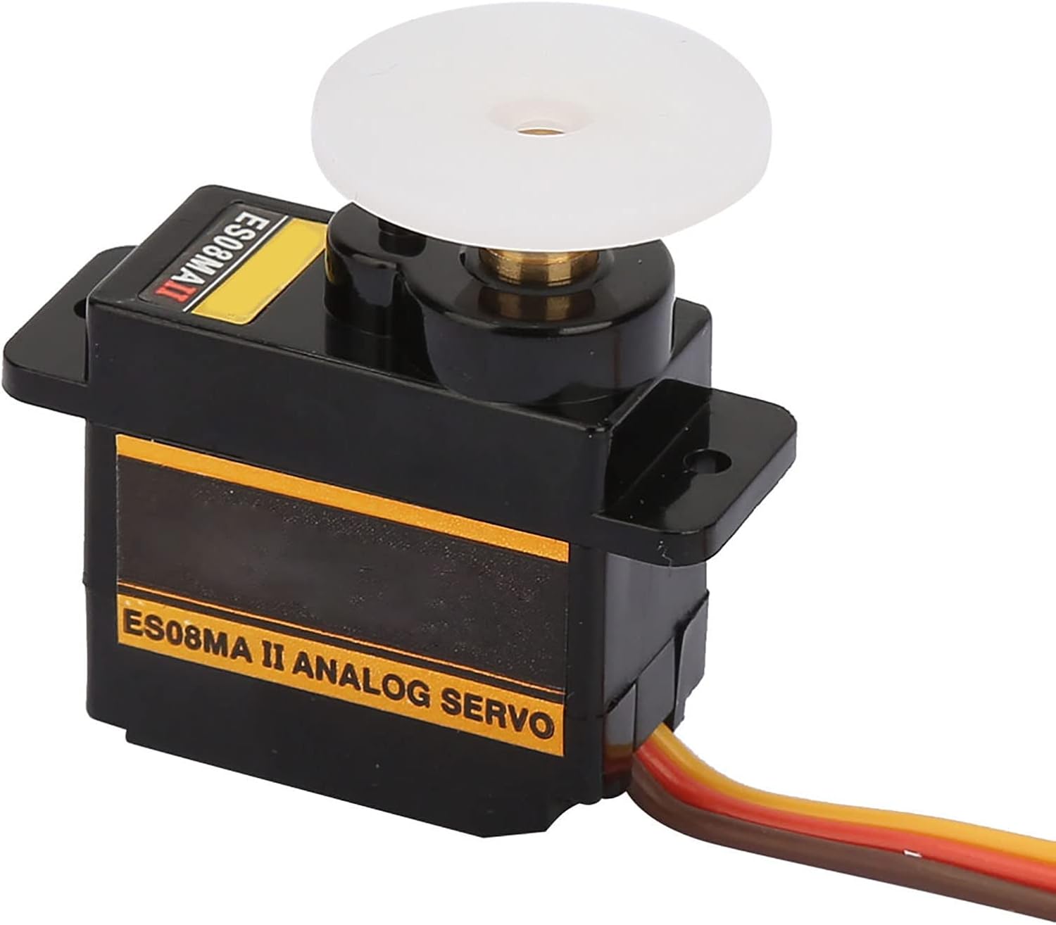 Esecuzione squisita: questo servomotore è realizzato con materiali di ed è . Mini ingranaggio in metallo, bassa rumorosità, prestazioni stabili, prestazioni eccellenti e alta efficienza. Velocità e: La velocità di lavoro di questo micro servo è: 0,12 sec/60o a 4,8 V; 0,10 sec/60o a 6 V. 1,5/1,8 kg.cm (4,8 V/6 V). Applicare a: Il servo con ingranaggi in metallo EMAX ES08MA II 12g/1,8 kg/10 sec è adatto per ali fisse, 450 elicotteri, robot, super fluido. Connessione: utilizzando una lavorazione squisita, il servo del cambio ha buone prestazioni e alta efficienza. Lo standard della spina è Futaba/JR. dei pacchetti: 4*EMAX ES08MA II 12g/1,8kg/10 secondi servo con ingranaggi in metallo, 16*servo bilanciere, 20*vite