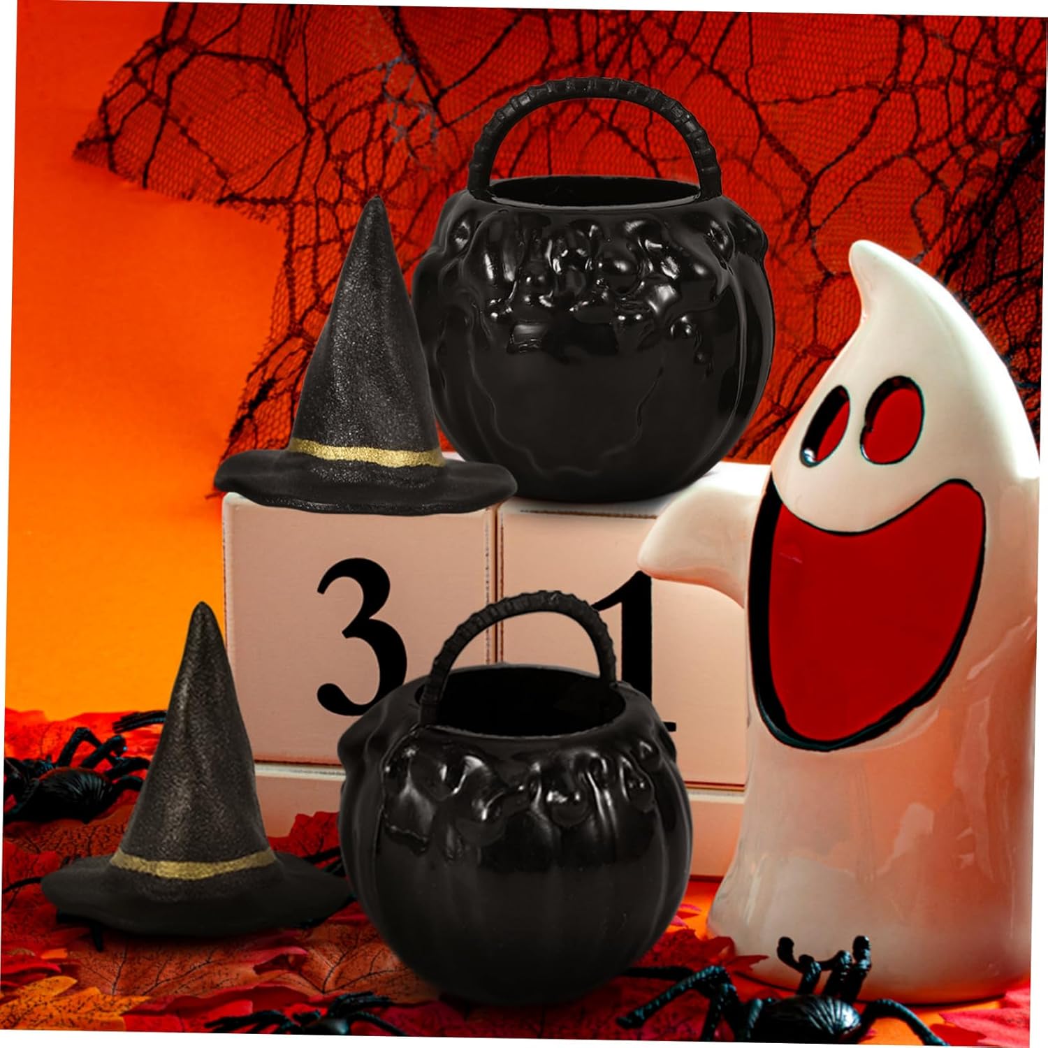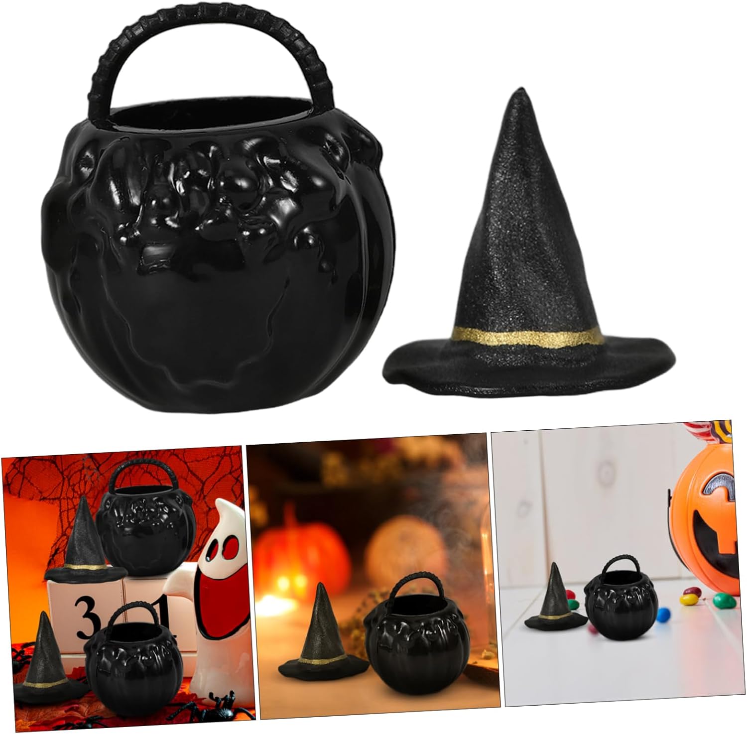 Decorazioni di Halloween - design dalla forma affascinante, queste decorazioni renderanno la tua festa di Halloween più allegra e adorabile, Kettle Black Cauldron - mini ornamenti per cappelli da strega, sufficienti per le tue esigenze di decorazione della festa, decorazione micro paesaggio Gnomo di Halloween - artigianato in miniatura un'aggiunta unica e creativa alla tua decorazione di Halloween, centrotavola per mini case e decorazioni di ghirlande di Halloween Calderone Halloween - Design compatto e leggero per un facile trasporto, sufficiente per soddisfare le tue esigenze di quantità, Scheletro di Halloween I mini vasi del calderone e il cappello da strega possono essere usati come una tazza divertente e inaspettata per amici o familiari membri che amano Halloween