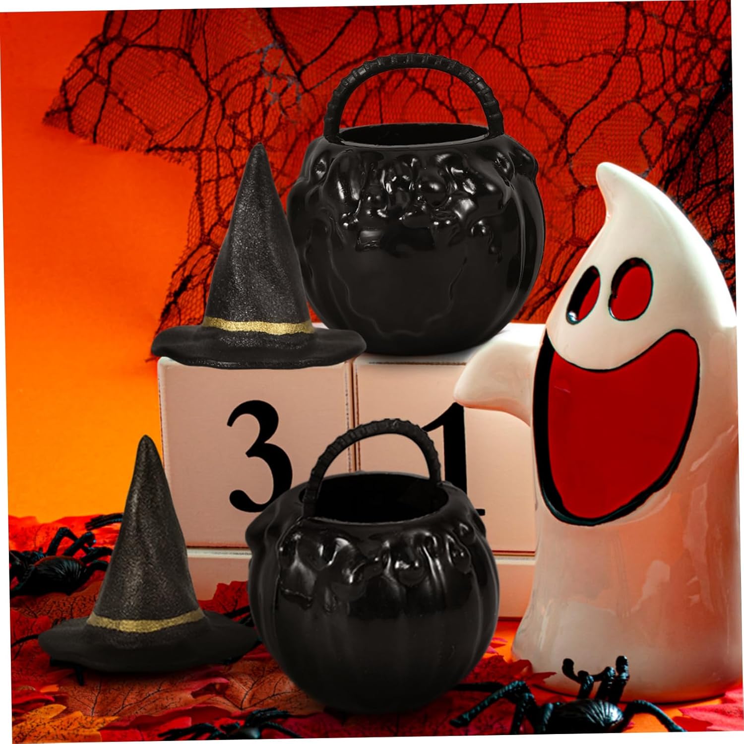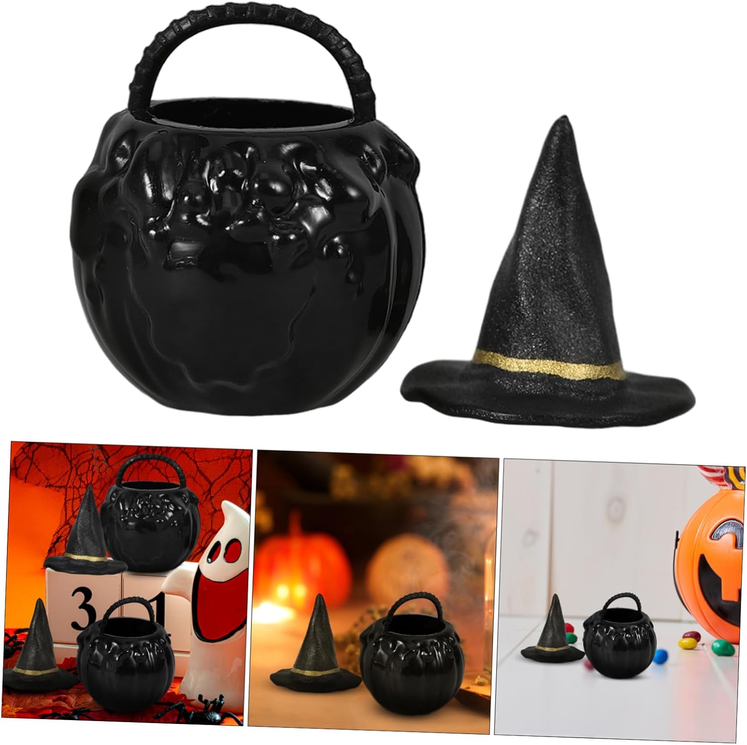 Calderone Nero - Set in miniatura e cappello da strega con dettagli realistici, un fantastico progetto fai-da-te per famiglie, mini calderone per feste di Halloween. Mini calderone: le creazioni in miniatura sono una spezia unica e creativa per la tua decorazione di Halloween, centrotavola per mini cappello da strega per bambole. Mini - - Il set di cappelli in miniatura e da strega è realizzato in plastica, non facile da sbiadire, materiali affidabili che possono essere utilizzati a lungo, accessori da strega per casa delle bambole. Decorazioni - Queste decorazioni per mini e cappelli da strega sono realizzate in materiali plastici con pregevole fattura e sono vasi di calderoni di Halloween come ornamenti. Mini cappelli da strega - Oggetti di scena in miniatura di Halloween, inclusi abbastanza, adatti per decorare la tua scrivania, ciondoli per feste di Halloween.