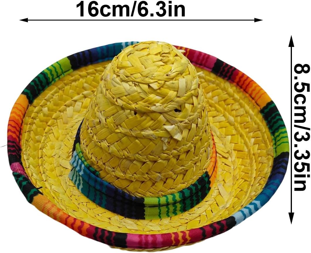 Protezione Solare Classica: Aggiunge talento stilistico a qualsiasi ensemble, migliora look festivi con un design classico a tesa larga e garantisce un'eccellente protezione solare per indossi all'aperto in totale eleganza e praticità Creatività per Costumi: Aggiunge un fascino unico alle celebrazioni potenziando la creatività dei costumi, ottimo per eventi a tema messicano e scelta eccellente per tutti i tipi di feste tematiche con il suo appeal accattivante Adattabilità Creativa: Migliora le tue decorazioni tematiche durante festività e party con questo mini sombrero, realizzato per fondere usabilità e fascino visivo attraverso un design adattabile e creativo che si a numerosi impieghi festivi e decorativi Costruzione Resistente: La paglia ecologica morbida offre un comfort ottimale e una notevole resistenza, con elevata traspirabilità che garantisce leggerezza e benessere durante l'uso quotidiano prolungato senza sforzo Fascia regolabile e sicura: La struttura pratica della fascia assicura che il mini sombrero rimanga in posizione durante tutte le attività, con performance affidabile e vestibilità personalizzabile