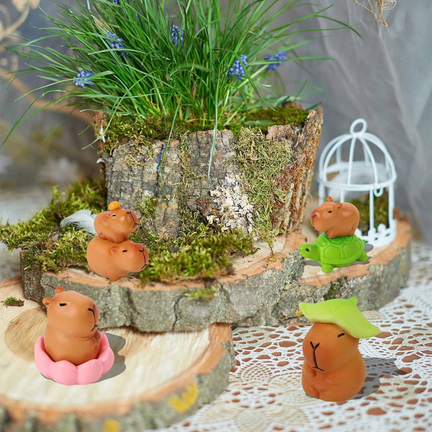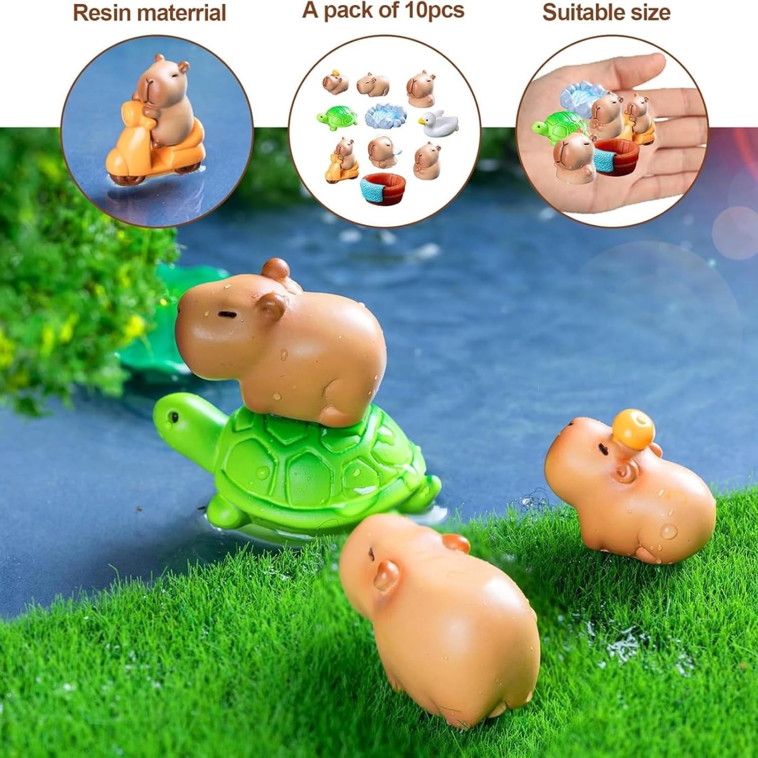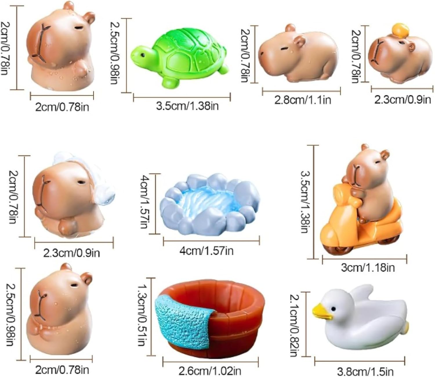 Forma carina: il design della forma del mini capibara è ispirato ai graziosi capibara presenti in natura. Ogni mini modello di capibara in resina è scolpito con cura per garantire che ogni dettaglio sia realistico. Dal corpo rotondo alla delicata espressione del viso, mostra un'affinità naturale che fa innamorare a prima vista. Artisanat exquis : cette poupée capybara adopte un matériau en résine de haute qualité, qui non seulement garantit la durabilité du jouet de poupée capybara, mais a également une surface lisse et délicate, qui ne causera pas d'inconfort à la peau, donnant aux gens une sensation de chaleur et de confort. Decorazione creativa: la decorazione della torta Capibara non è solo una semplice decorazione, ma anche un'opera d'arte creativa, che può essere facilmente integrata in vari ambienti interni, aggiungendo scenari diversi alla tua casa o al tuo ufficio e può anche essere abbinata e combinata in base a diverse scene per creare un effetto spaziale unico. Piccolo e portatile: il design decorativo del capibara è piccolo e leggero, facile da trasportare, non occupa troppo spazio, molto adatto a persone che hanno uno spazio abitativo limitato ma desiderano una decorazione più personalizzata. Può essere posizionato in qualsiasi combinazione per creare cambiamenti più interessanti. Ampia gamma di utilizzi: la decorazione Capibara è una decorazione da scrivania molto popolare, che può essere posizionata accanto al computer e accompagnarti in ogni giornata lavorativa impegnativa come un partner. Allo stesso tempo, la decorazione in resina del mini capibara è anche un giocattolo ideale per i bambini, che può aggiungere più colore e divertimento alla tua vita.