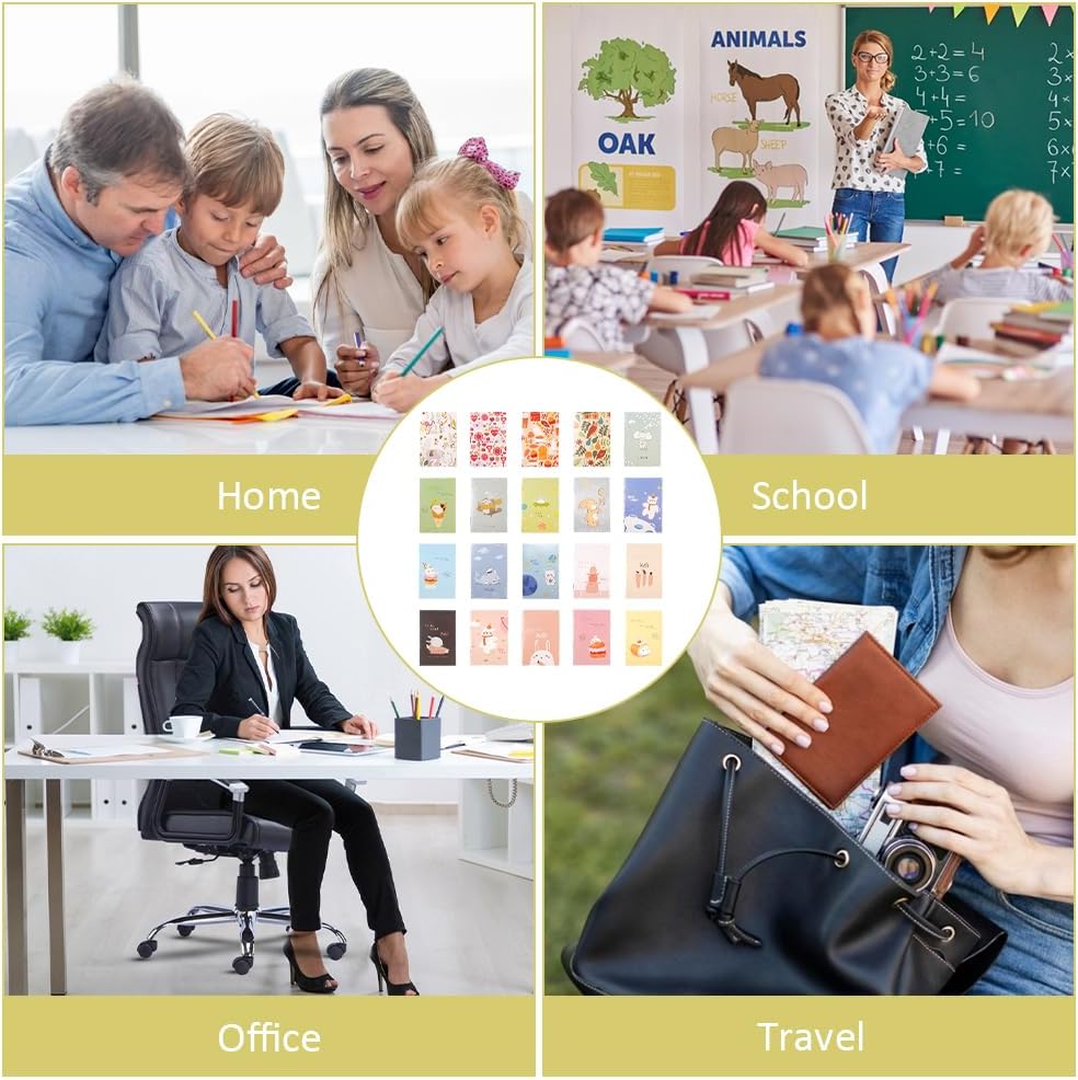 Materiale di alta qualità: il mini taccuino è realizzato con carta di alta qualità per una scrittura fluida. Il mini notebook presenta linee orizzontali per una facile registrazione. Stili multipli: ogni piccolo taccuino ha una copertina diversa con più colori e più elementi. Come orso, coniglio, gufo, elefante, ecc. Facile da trasportare: la dimensione del piccolo taccuino è 10,5×7 cm/4,13x2,76 pollici. Di medie dimensioni e leggero, si adatta facilmente a una tasca, a uno zaino o a una borsa. Ampiamente usato: il piccolo taccuino può essere utilizzato per annotare la vita quotidiana, i programmi scolastici, i piani di lavoro, le esperienze di viaggio, ecc. È un buon aiuto per la vita quotidiana e il lavoro. La confezione include: mini taccuino da 20 pezzi. Pagine: 16 pagine/32 fogli. Sono perfetti per la casa, i viaggi, la scuola e l'ufficio e sono un regalo ideale per la famiglia e gli amici.